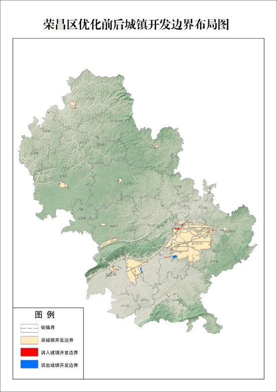 调整原因:为适应经济社会发展需要,促进荣昌区发展,推动城镇开发边界精准落地,在坚决维护“三区三线”划定成果严肃性和权威性的前提下,按照“总体稳定、局部优化”的原则,组织编制了城镇开发边界局部优化方案。
