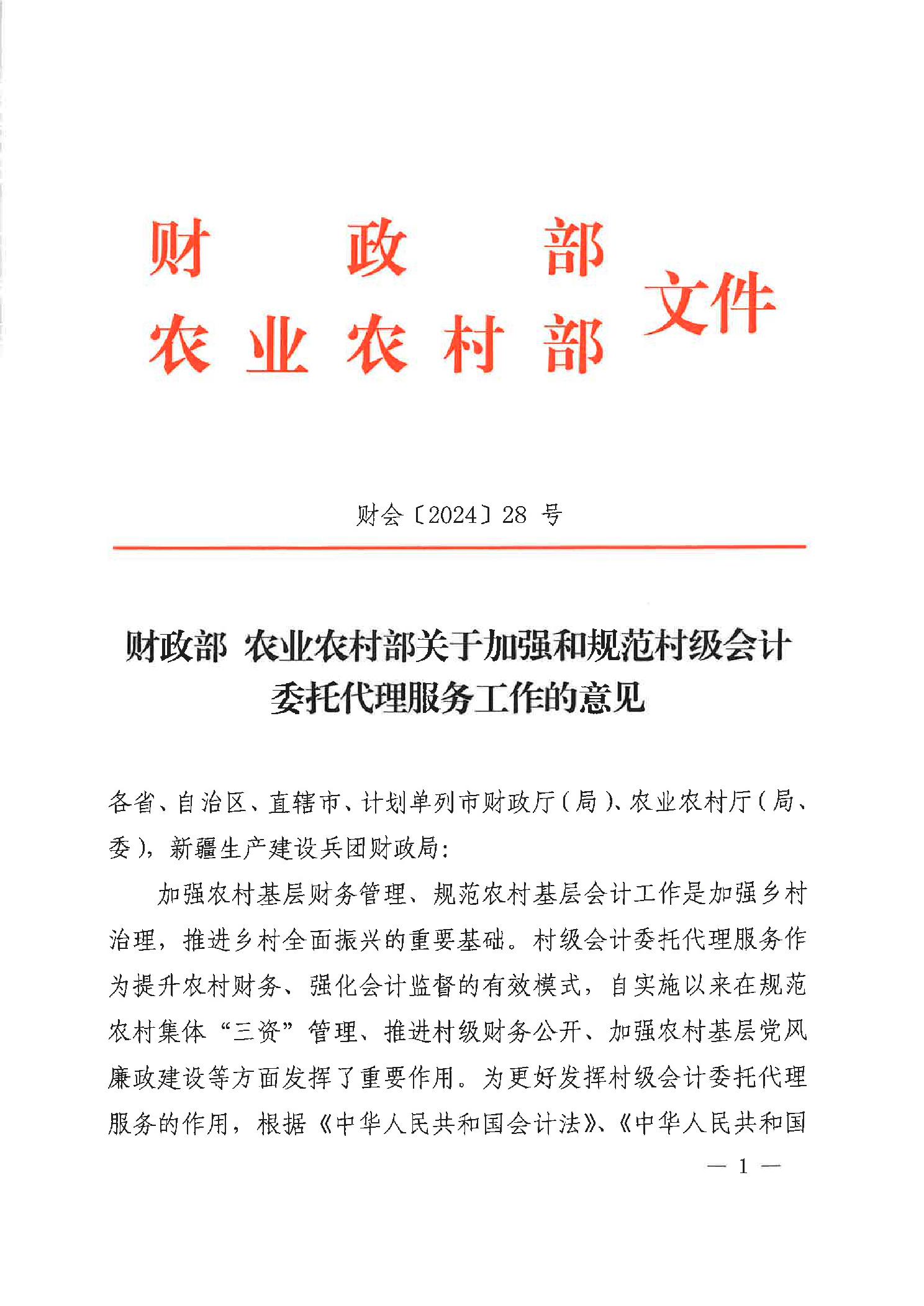 财会〔2025〕28号 财政部农业农村部关于加强和规范村级会计委托代理服务工作的意见