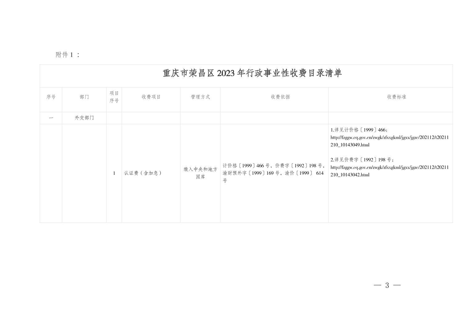 荣财公告〔2024〕1号     重庆市荣昌区财政局 重庆市荣昌区发展和改革委员会关于公布2023年度行政事业性收费目录清单的公告