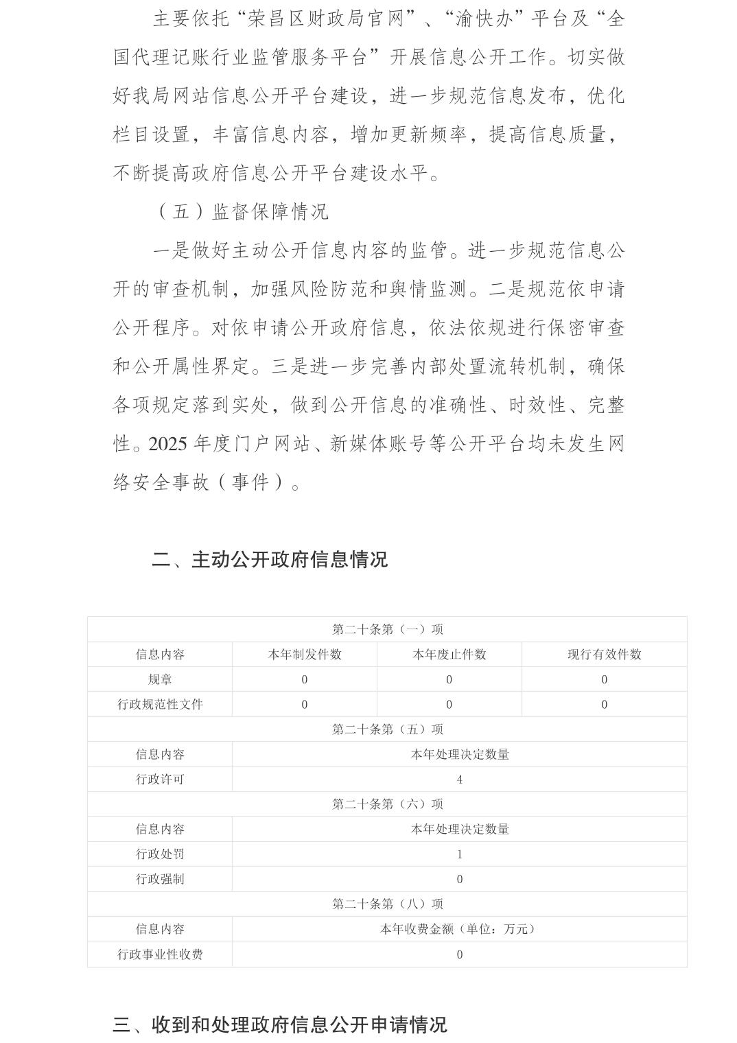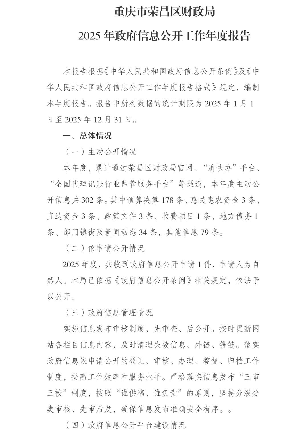 重庆市荣昌区财政局2025年政府信息公开工作年度报告