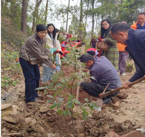 春风拂绿,植护同行。为深入践行习近平生态文明思想,树牢“绿水青山就是金山银山”生态理念,在第46个植树节来临之际,区发展改革委组织党员干部到昌州街道杜家坝社区杨家山开展义务植树活动,以实际行动为美丽家园增添新绿。