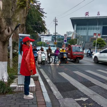 志愿者身着统一服装、手持引导红旗,早晚高峰坚守重点路口,主动担当文明交通“守护者”与“宣传员”,耐心引导行人走人行横道、遵守信号灯,劝导非机动车不逆行、不闯红灯,提醒驾驶员文明礼让,对不文明行为柔性劝导,讲解文明出行意义,引导市民摒弃陋习。