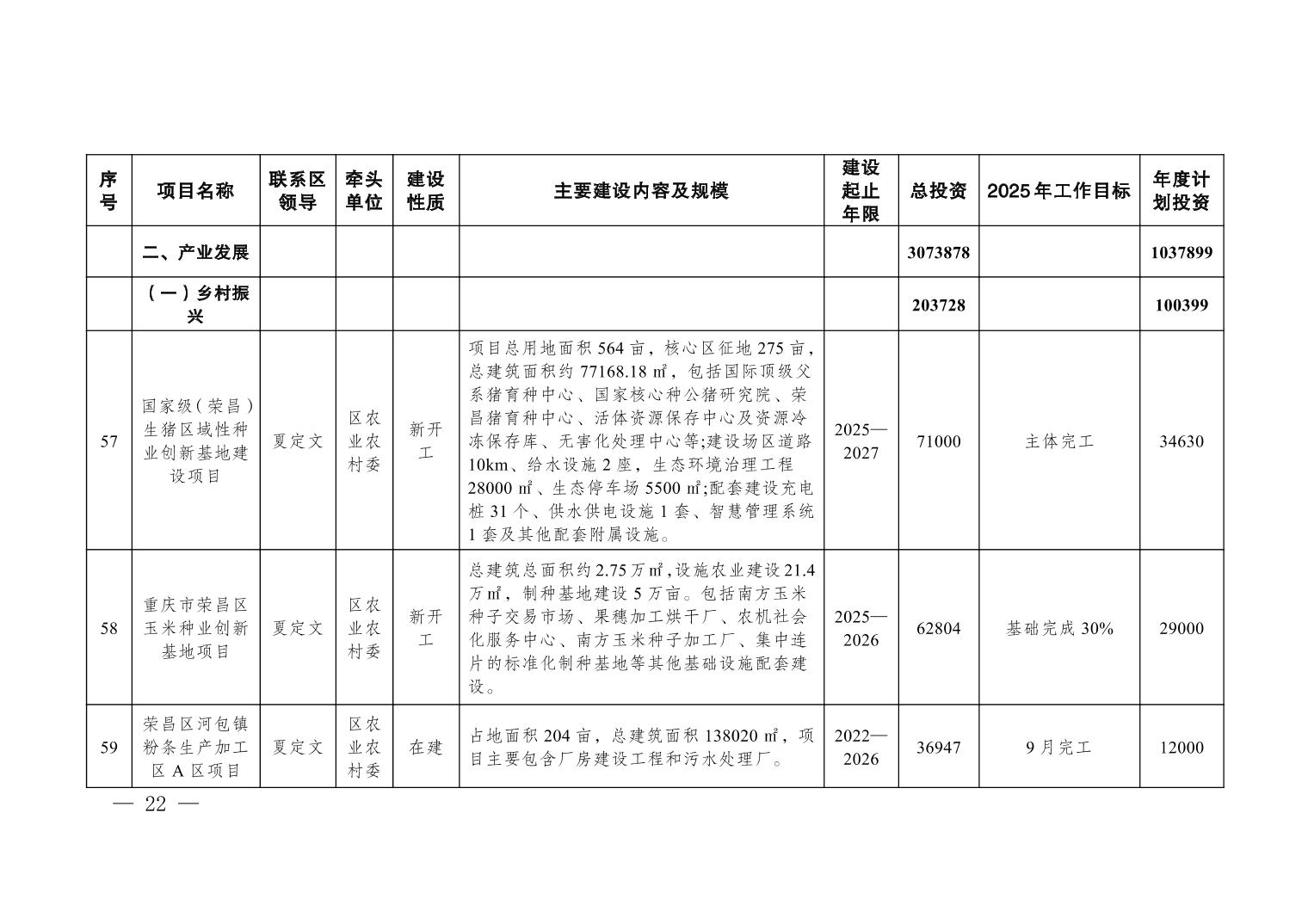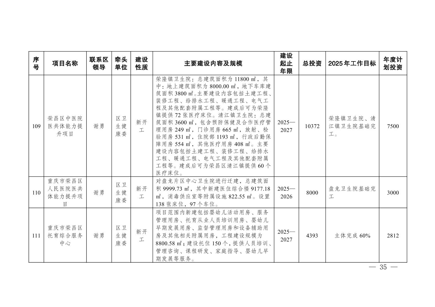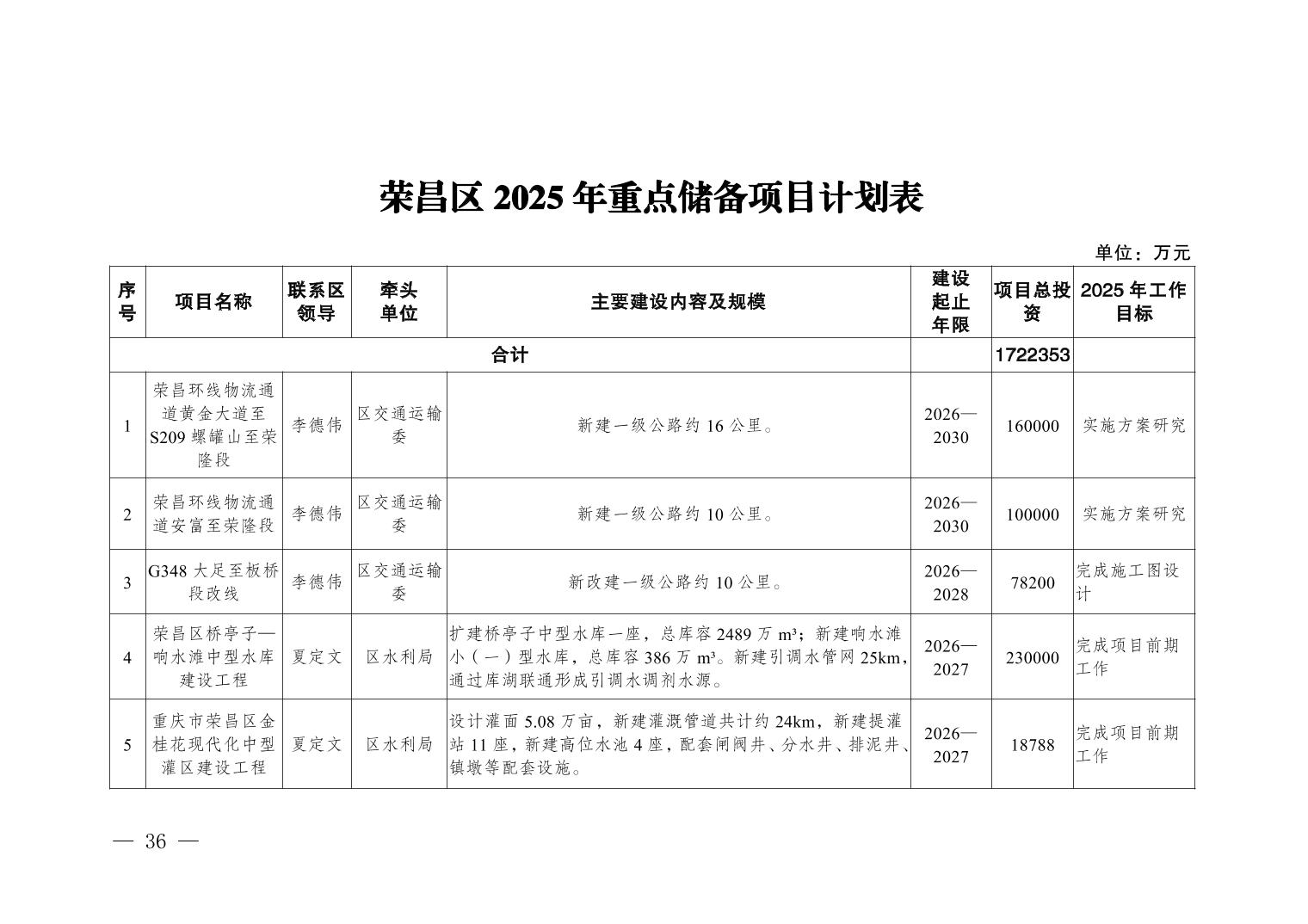 《荣昌区2025年重点建设项目计划表》《荣昌区2025年重点储备项目计划表》