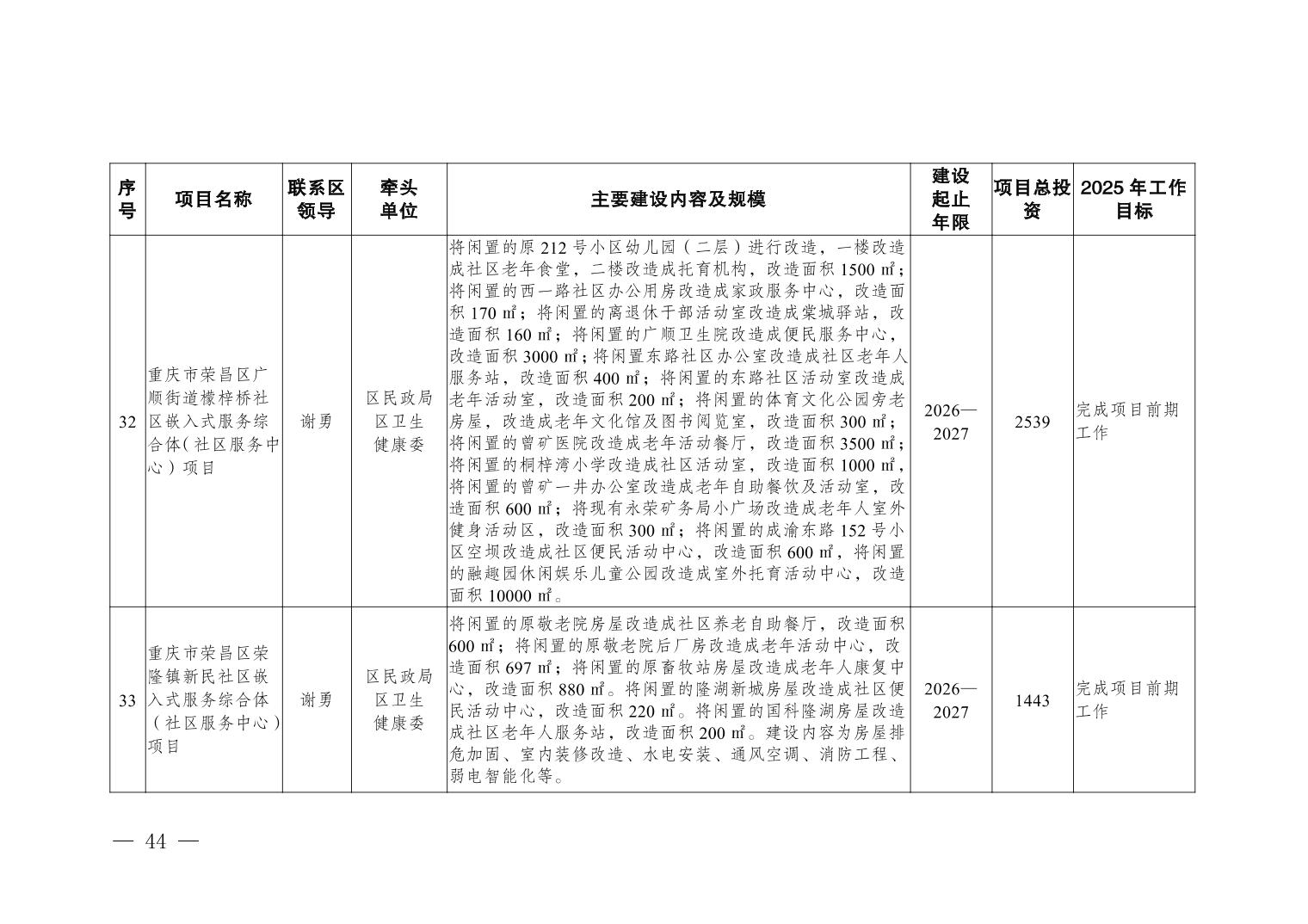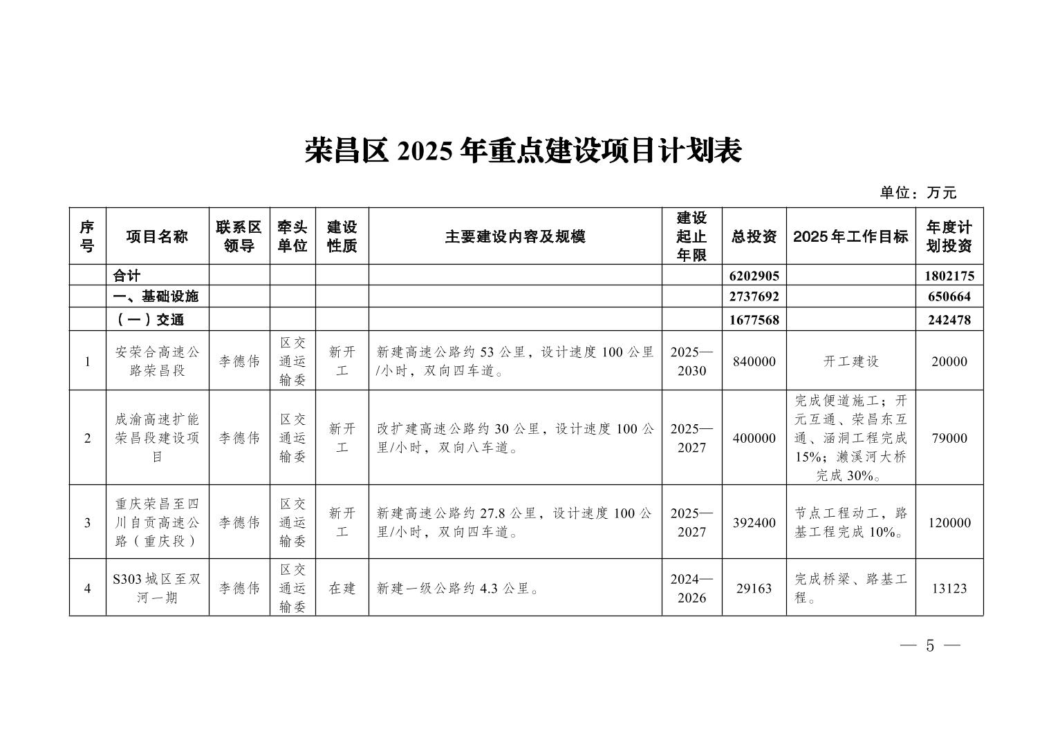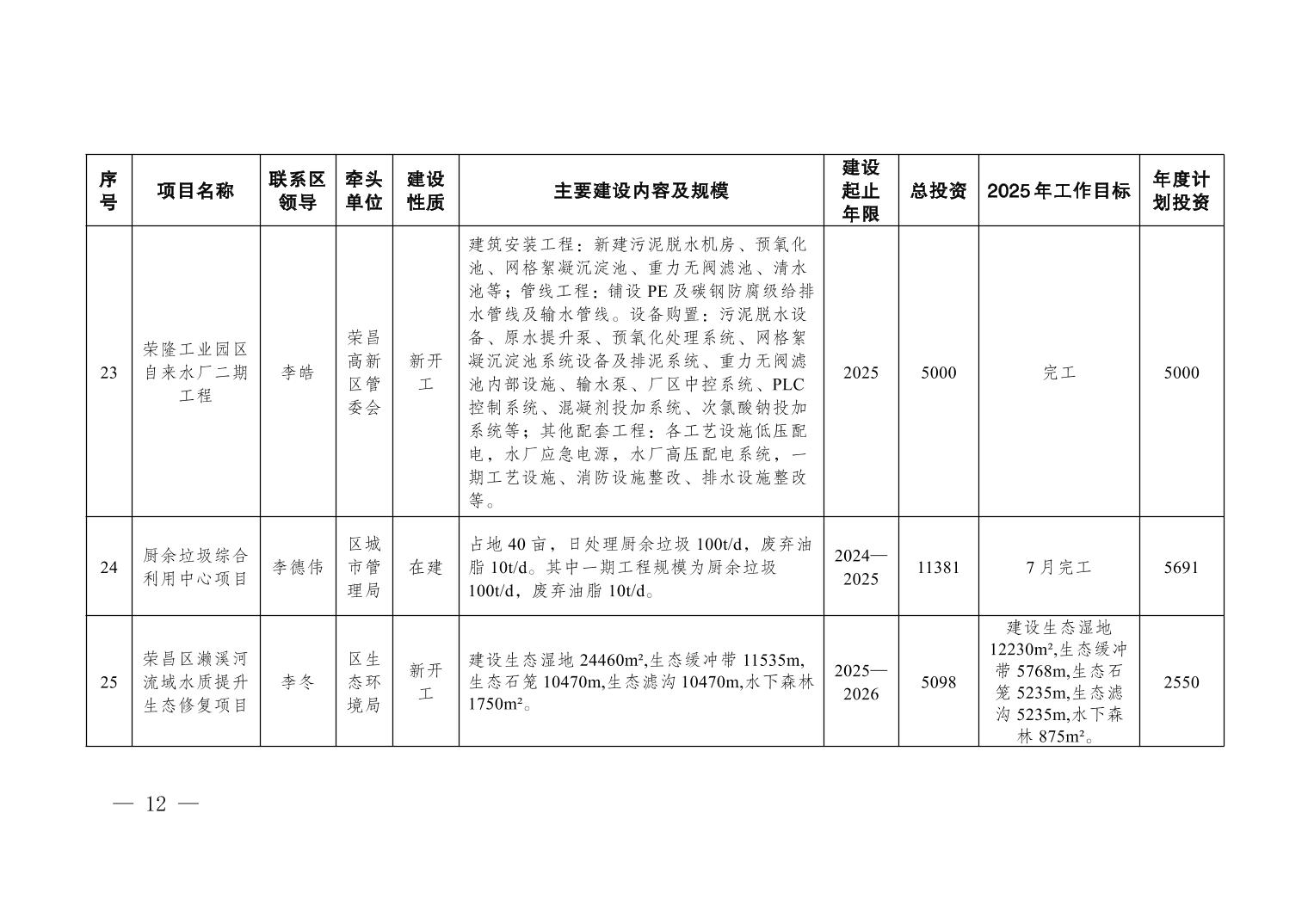 《荣昌区2025年重点建设项目计划表》《荣昌区2025年重点储备项目计划表》
