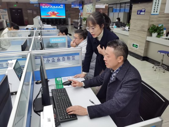 高鹏飞主任以办事群众身份分别到人社综合窗口、市场监管局窗口“走流程”,体验为群众办理暂停参保业务、“企业开办一件事”全流程,并与市场监管局窗口负责人就如何推进企业注册和社保参保信息共享进行了探讨。