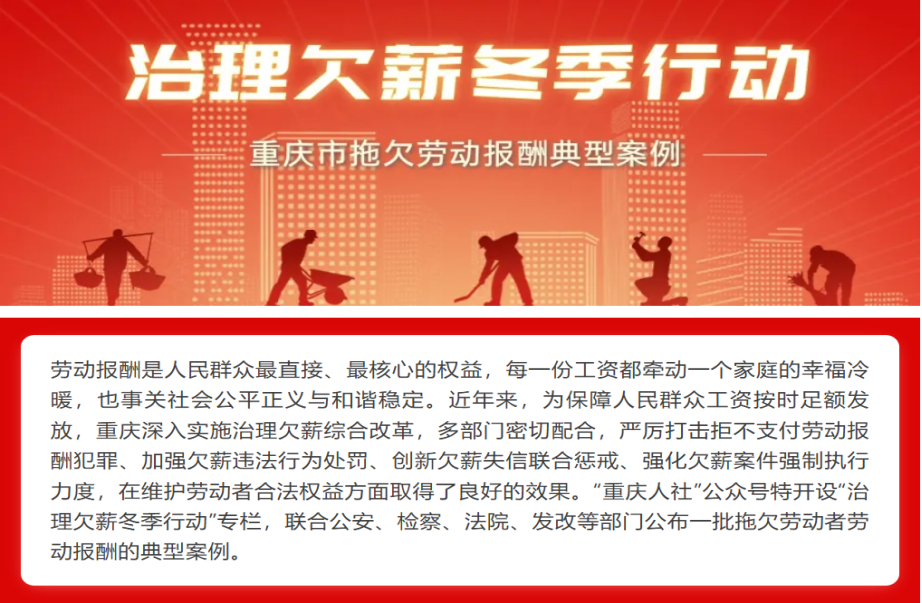 荣昌区人力社保局随即对重庆某机电工程有限公司进行立案查处,通过调查该项目用工关系、工资结算流程、调查询问相关人员等方式核实确认了欠薪金额29.2万元,涉及11名劳动者工资。