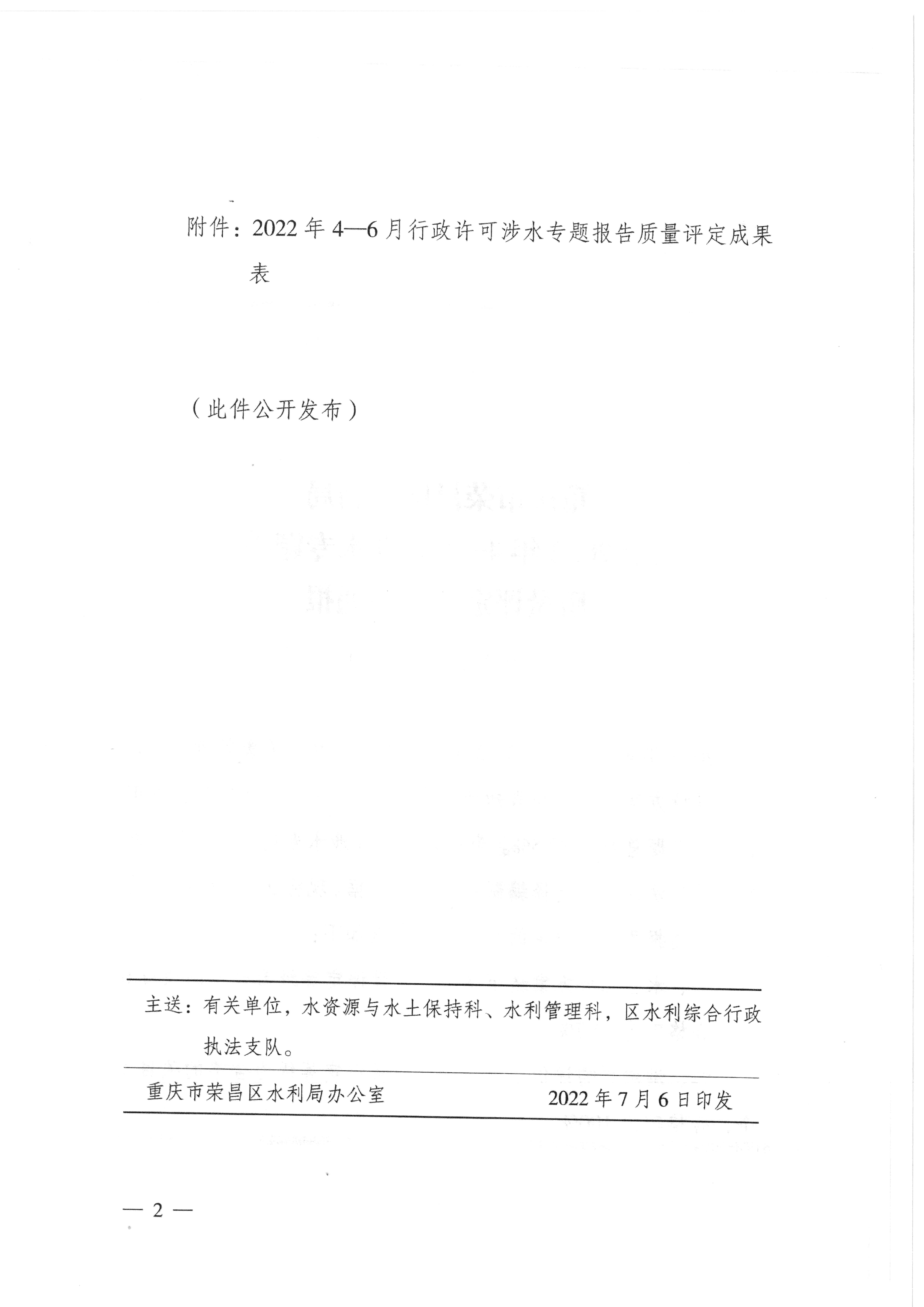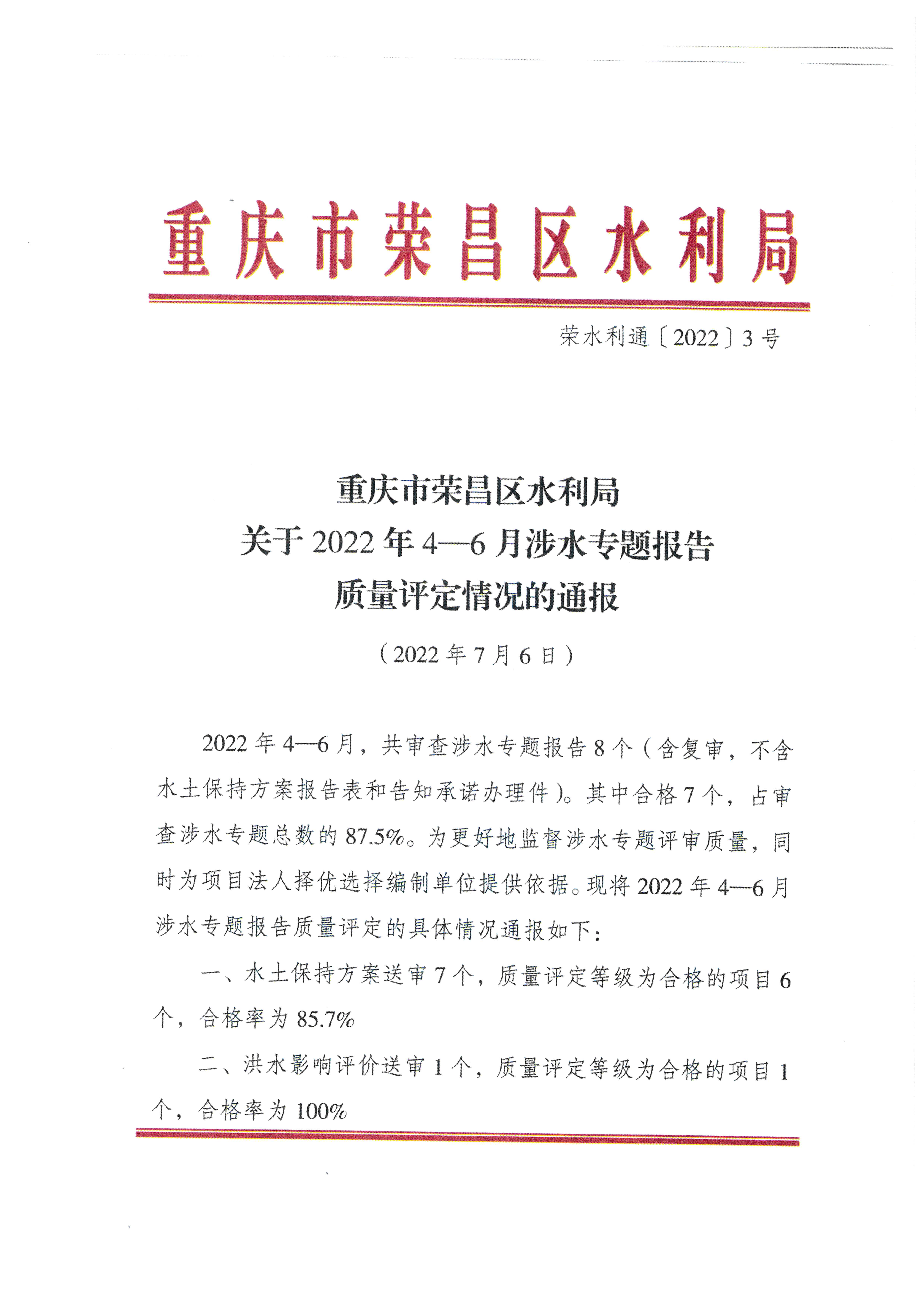 重庆市荣昌区水利局关于2022年4-6月涉水专题报告质量评定情况的通报(荣水利通〔2022〕3号)