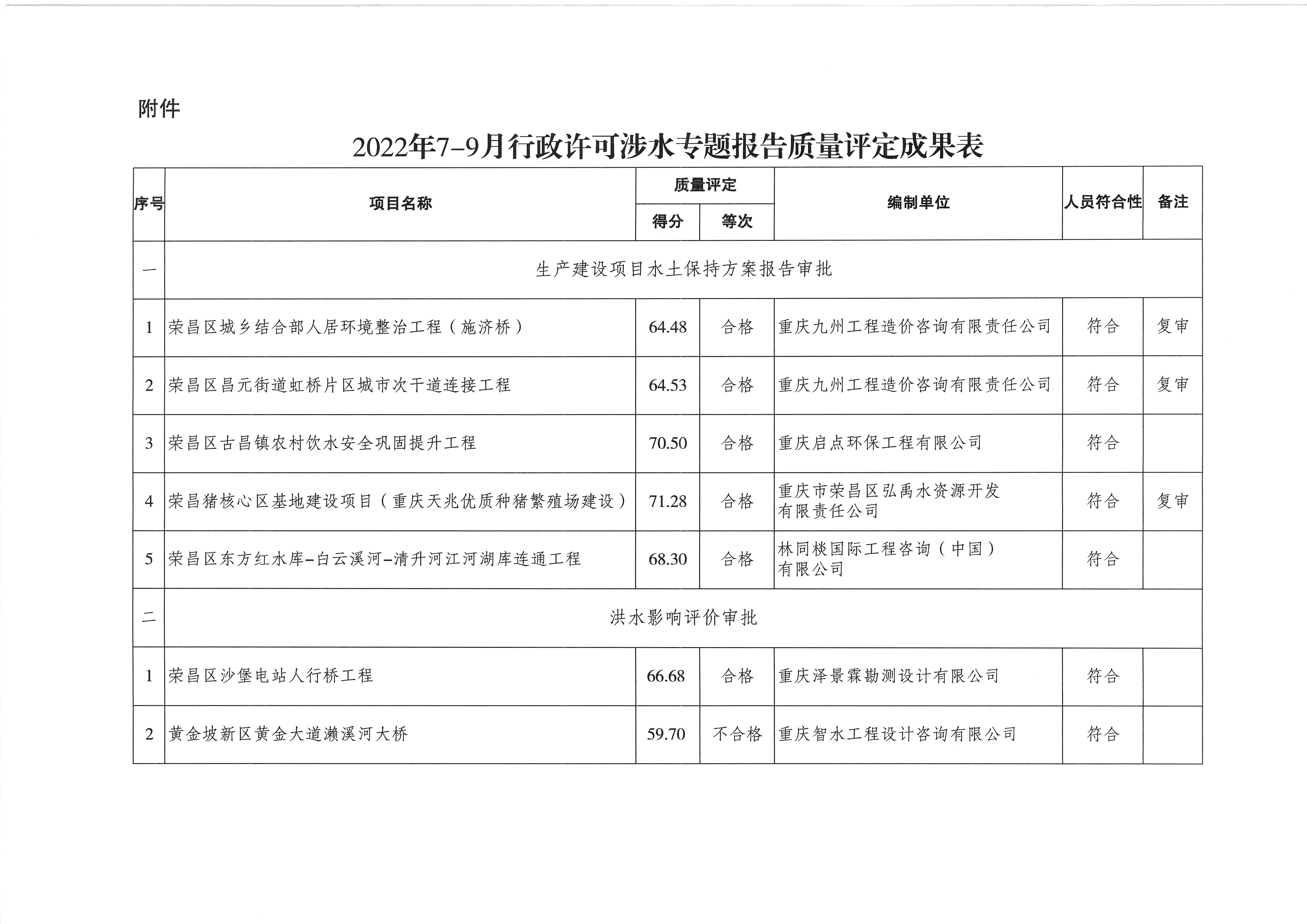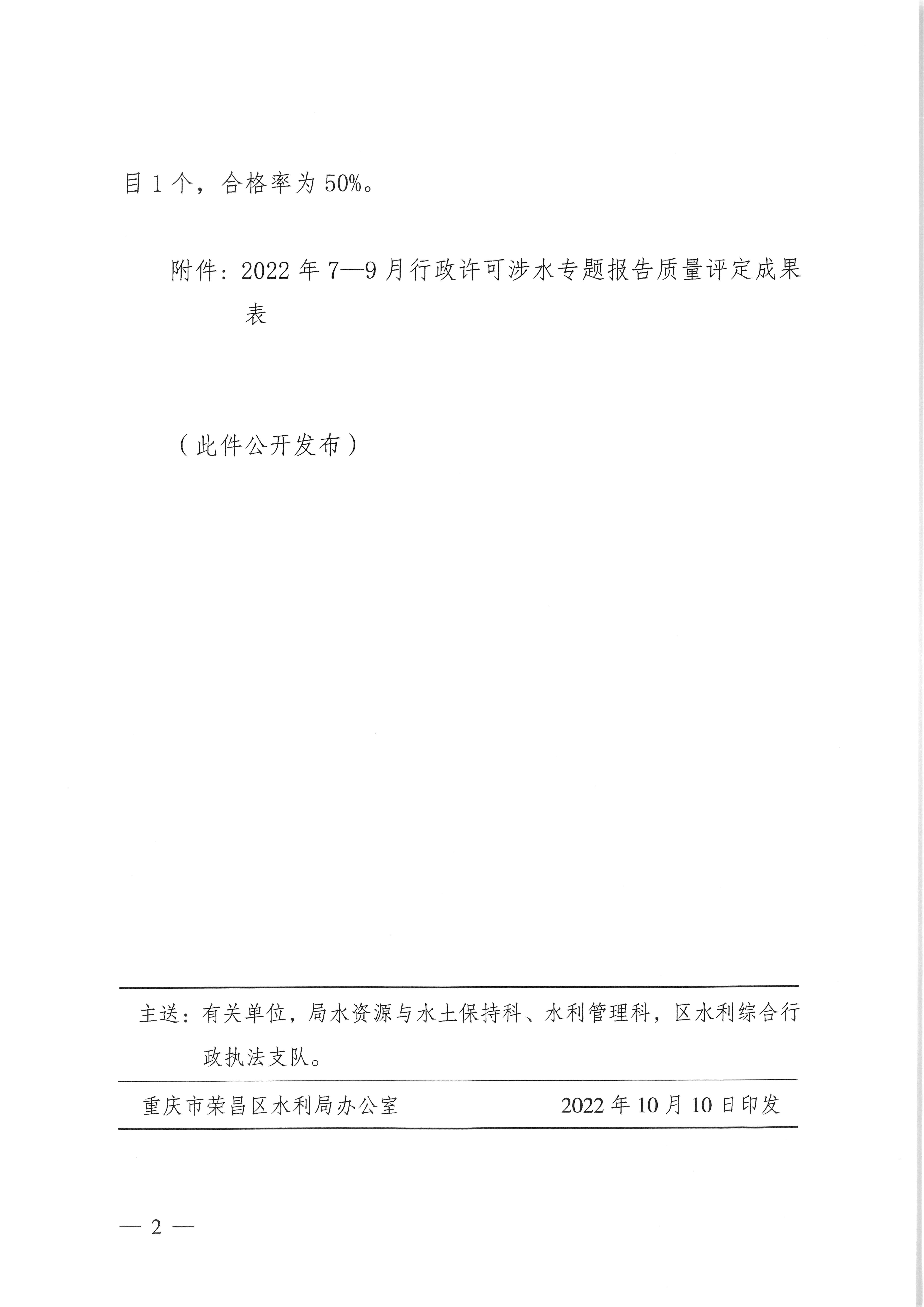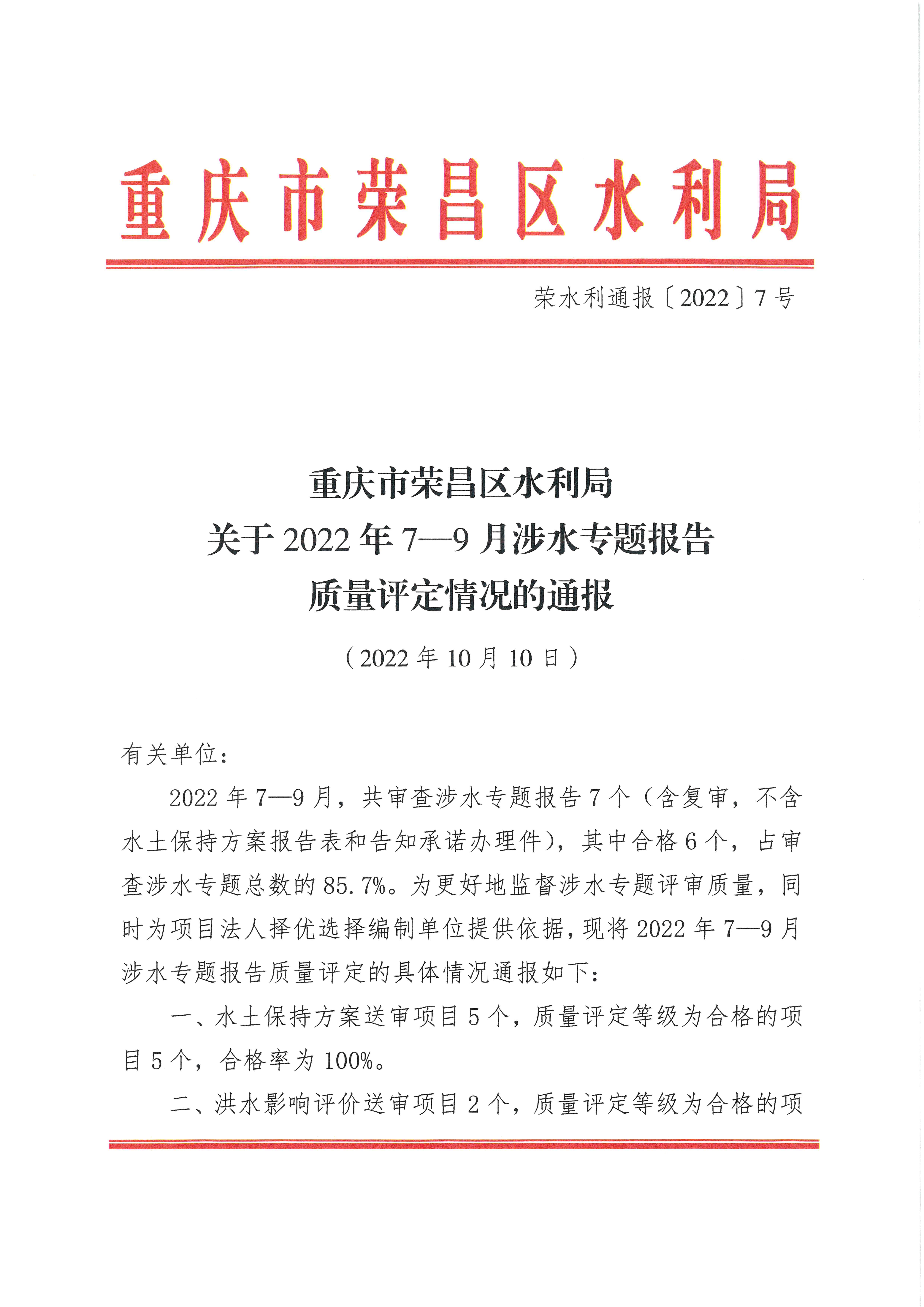 重庆市荣昌区水利局关于2022年7-9月涉水专题报告质量评定情况的通报(荣水利通〔2022〕7号)