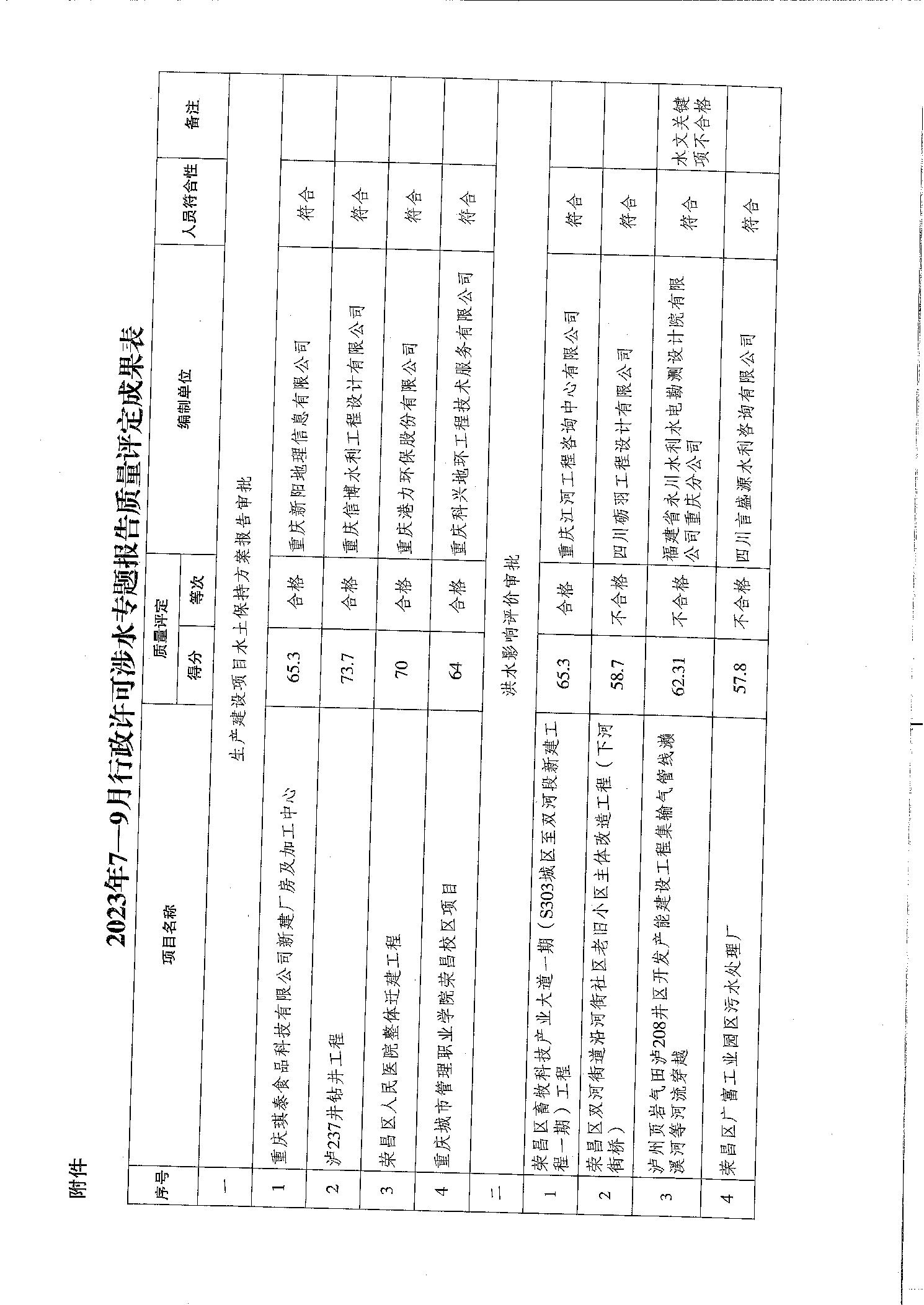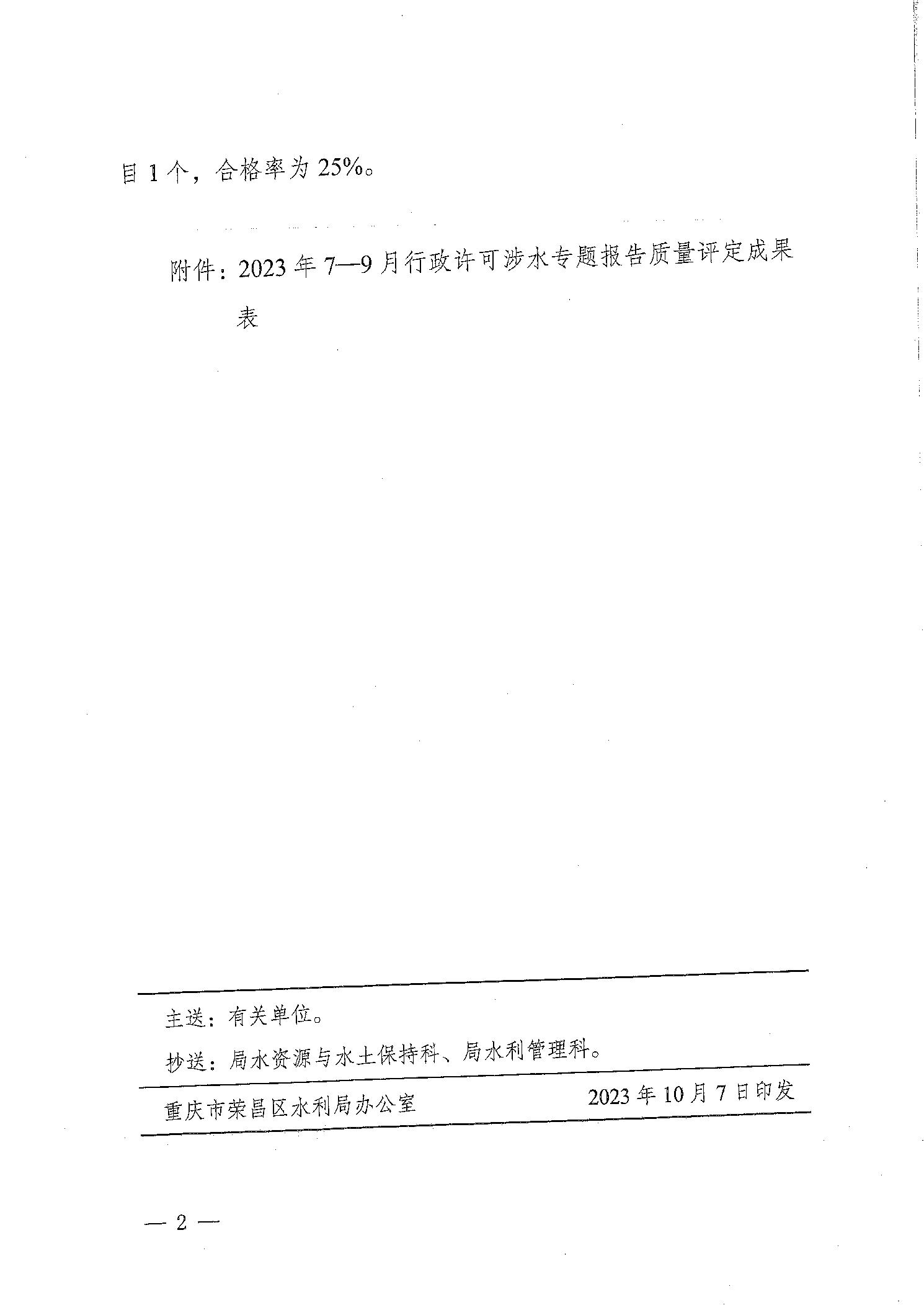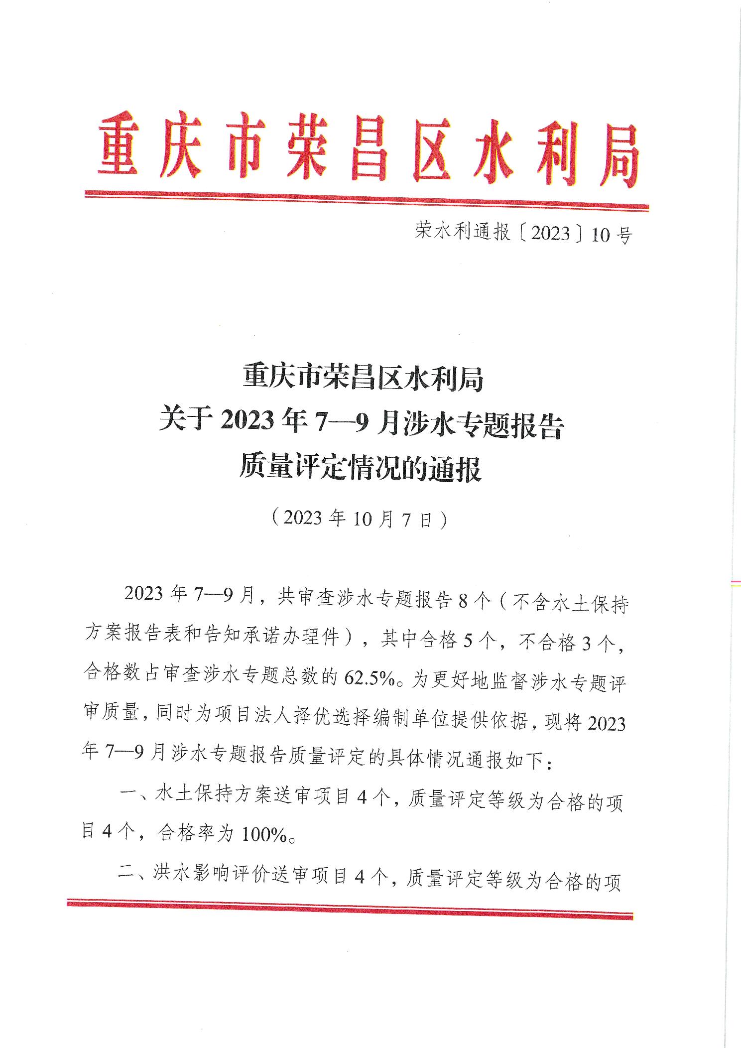 重庆市荣昌区水利局关于2023年7-9月涉水专题报告质量评定情况的通报(荣水利通报〔2023〕10号)