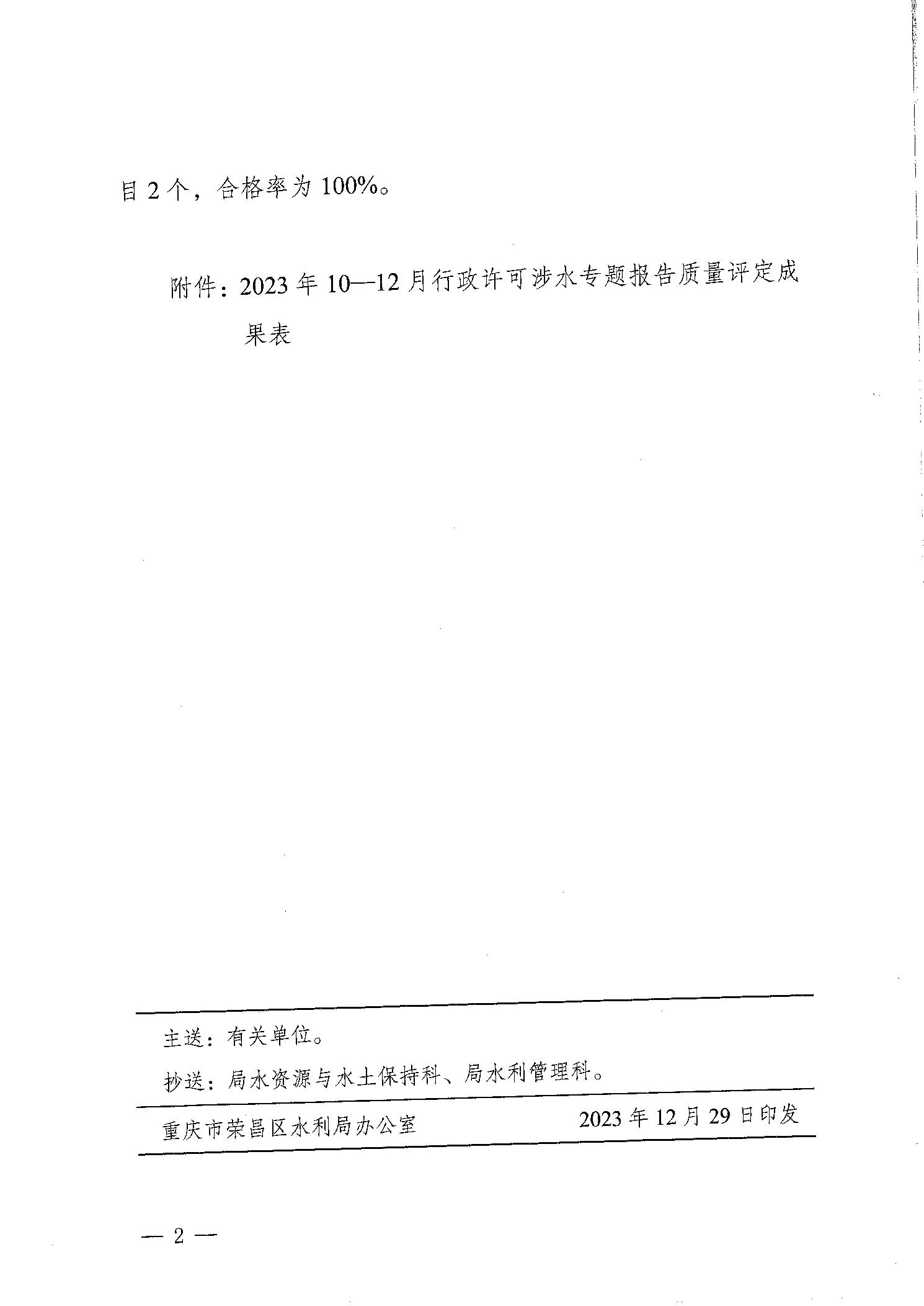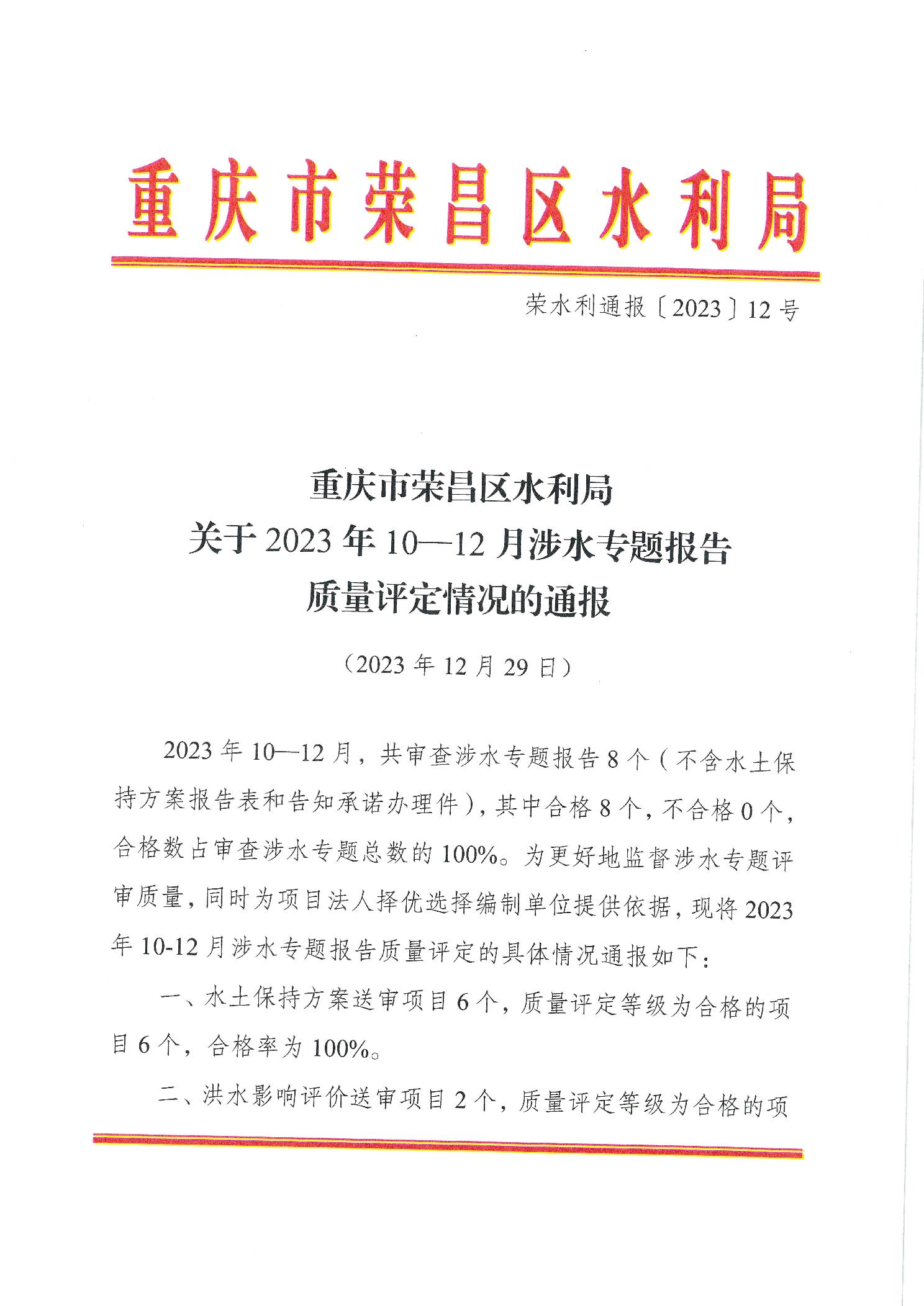 重庆市荣昌区水利局关于2023年10-12月涉水专题报告质量评定情况的通报(荣水利通报〔2023〕12号)