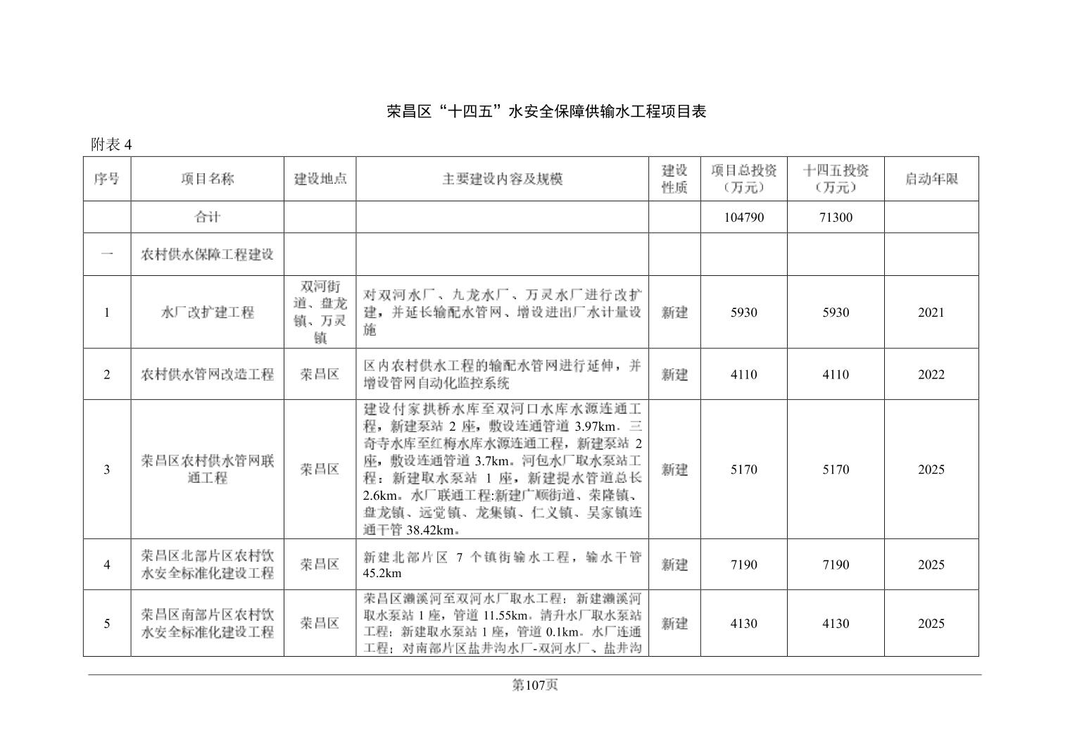 重庆市荣昌区水安全保障“十四五”规划(2021-2025年)修编