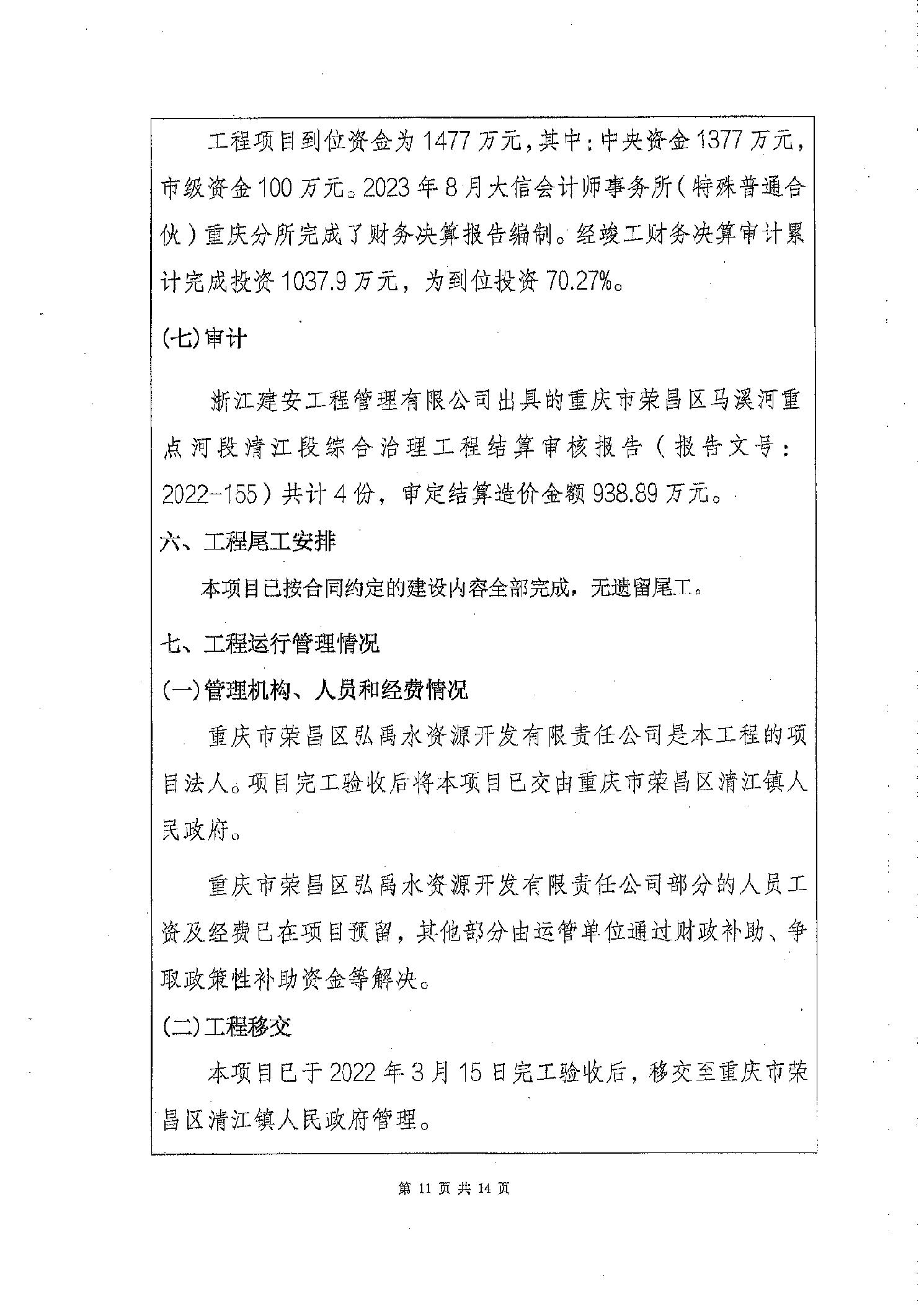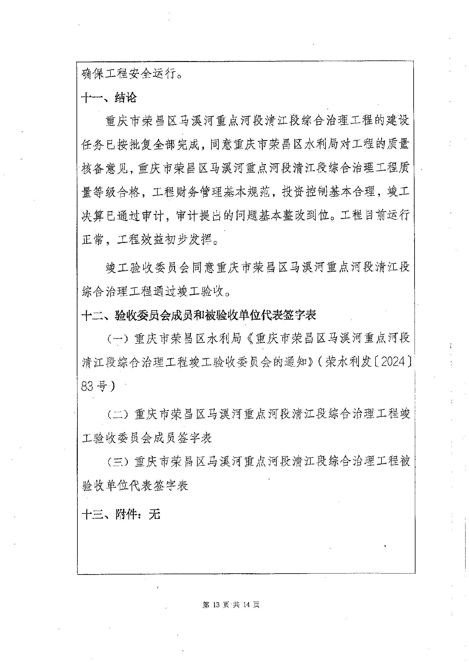 重庆市荣昌区马溪河重点河段清江段综合治理工程竣工验收鉴定书