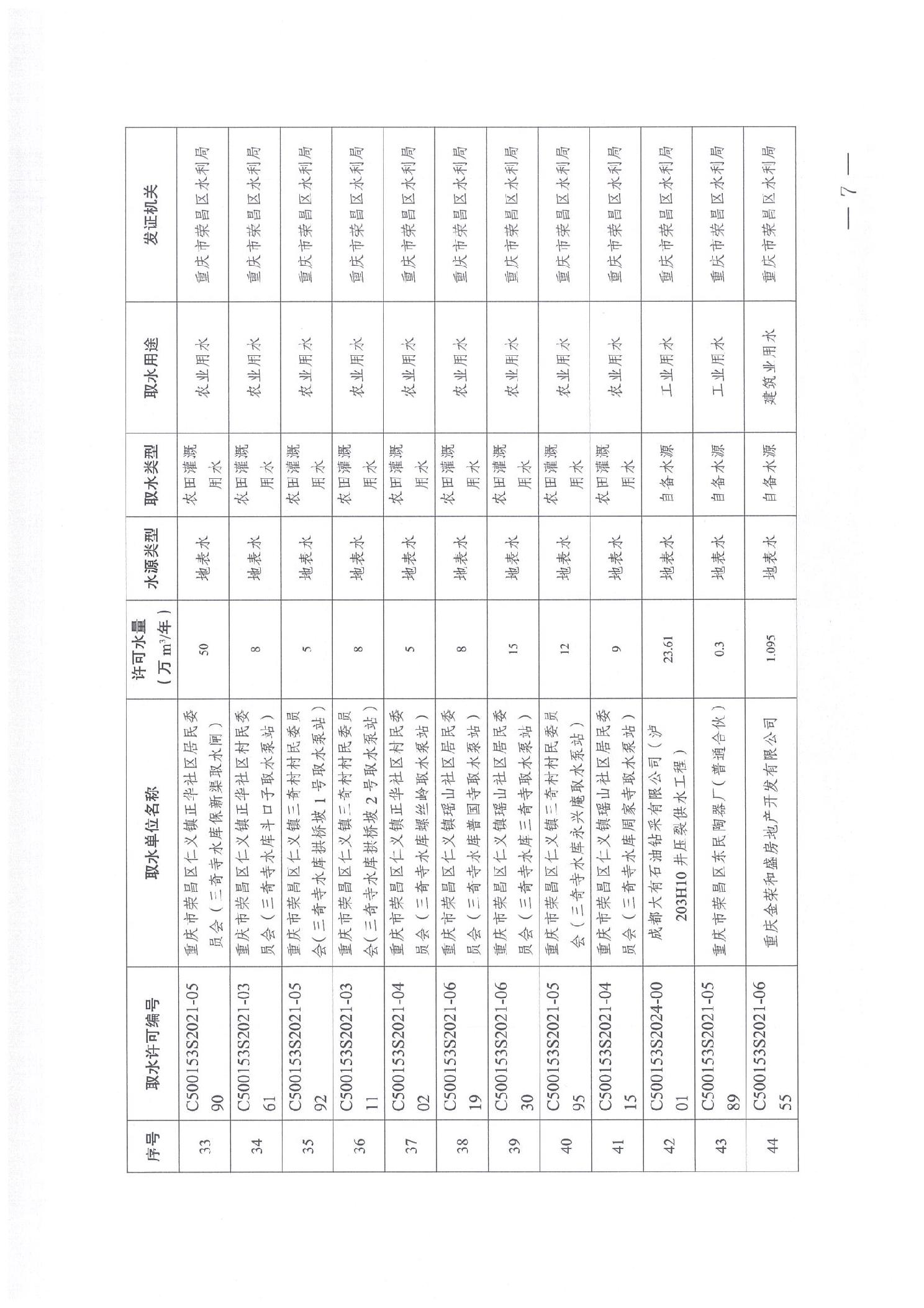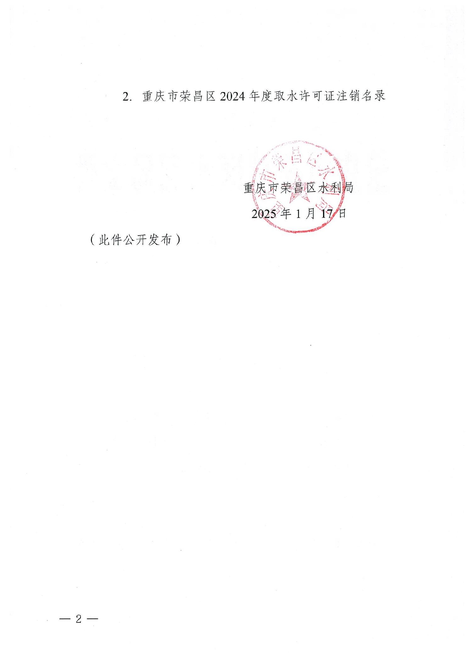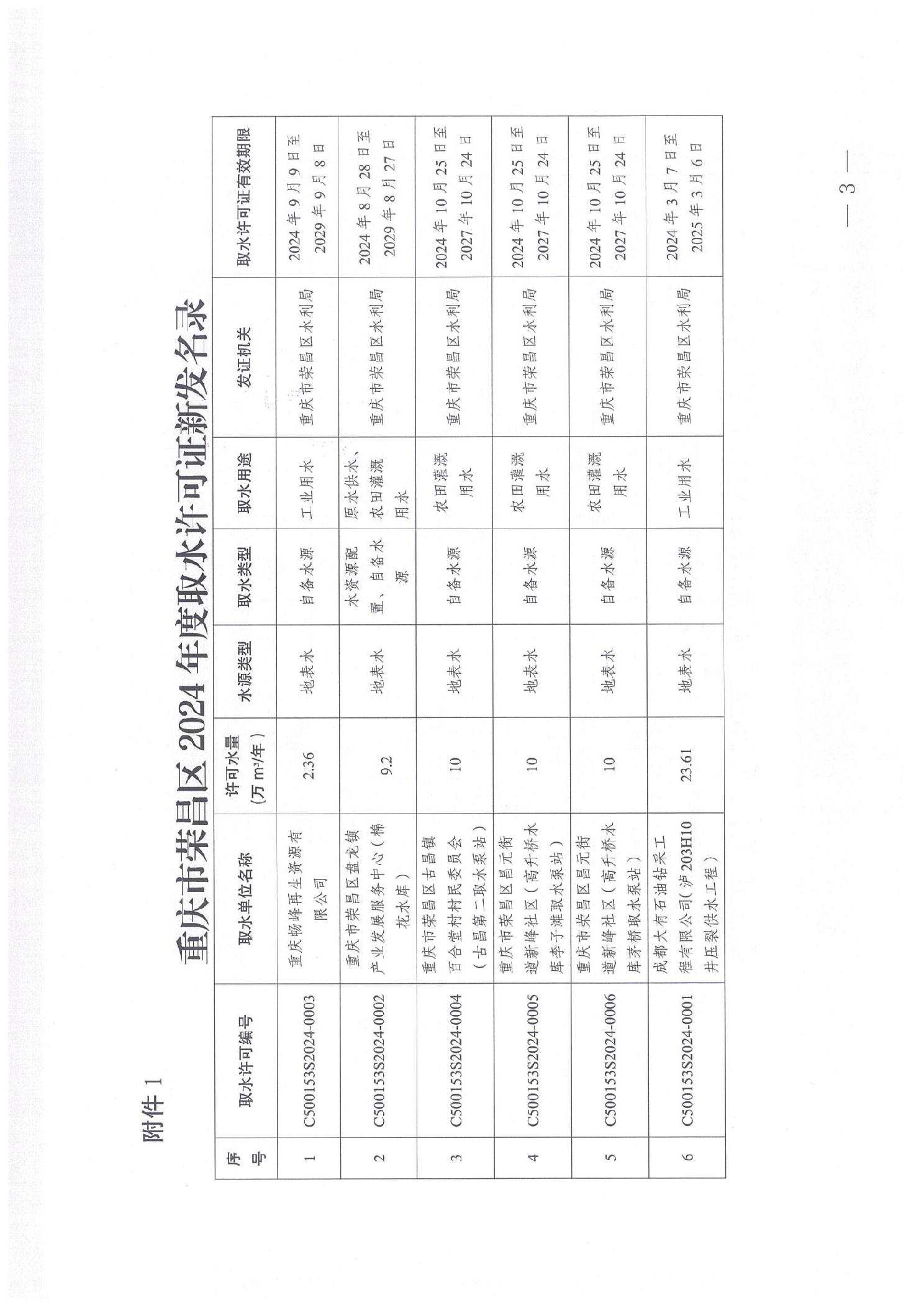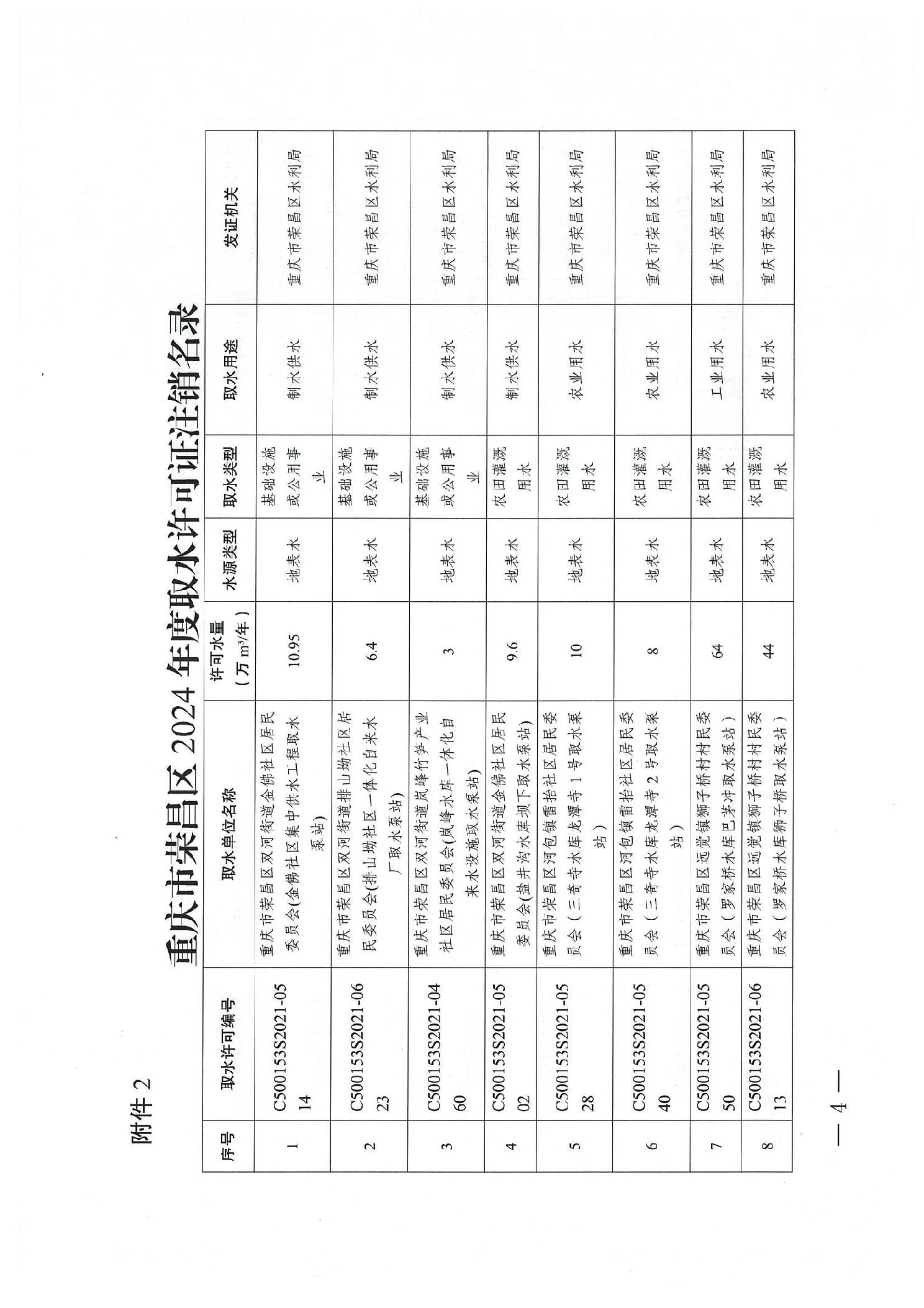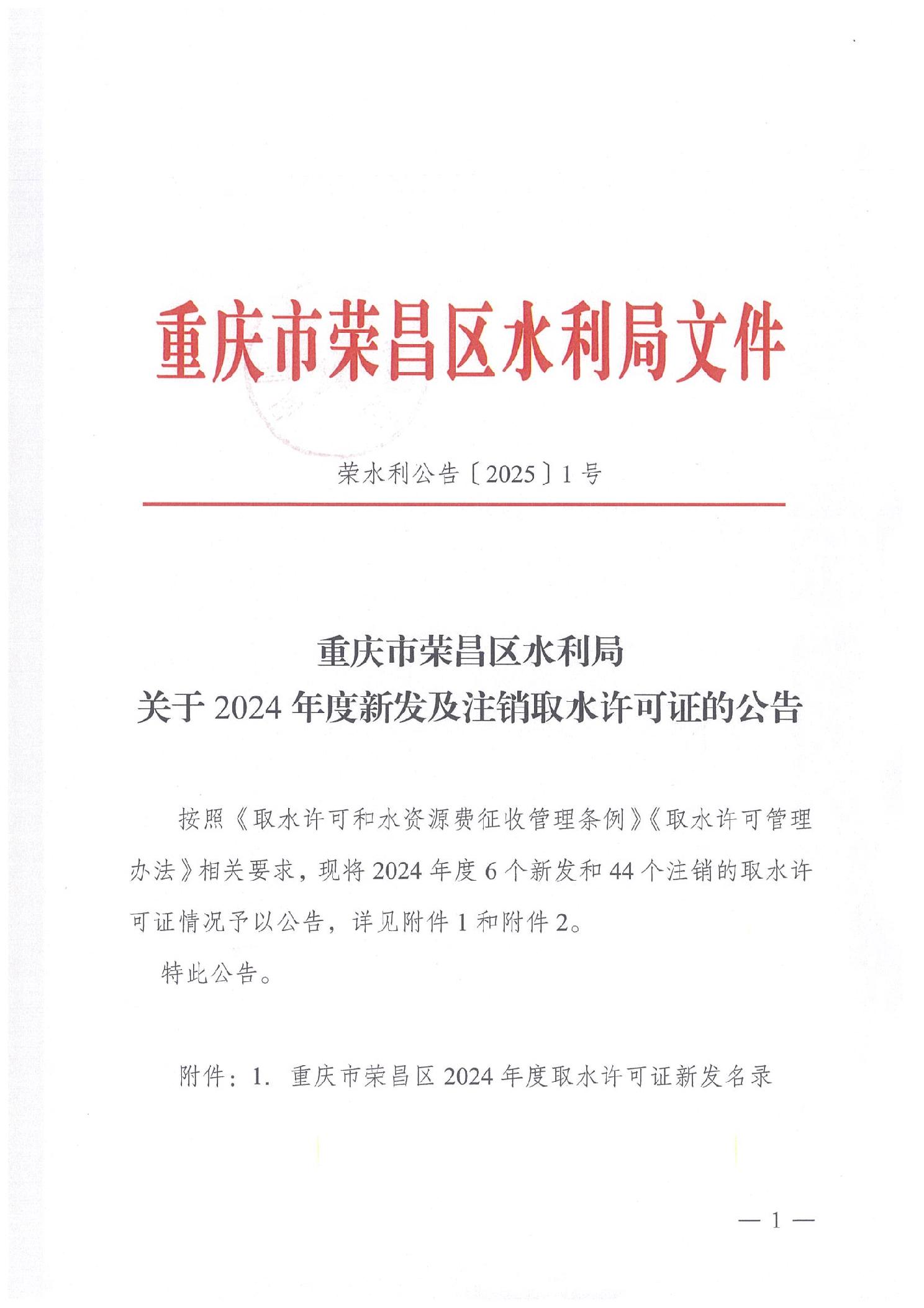 重庆市荣昌区水利局关于2024年度新发及注销取水许可证的公告(荣水利公告〔2025〕1号).pdf
