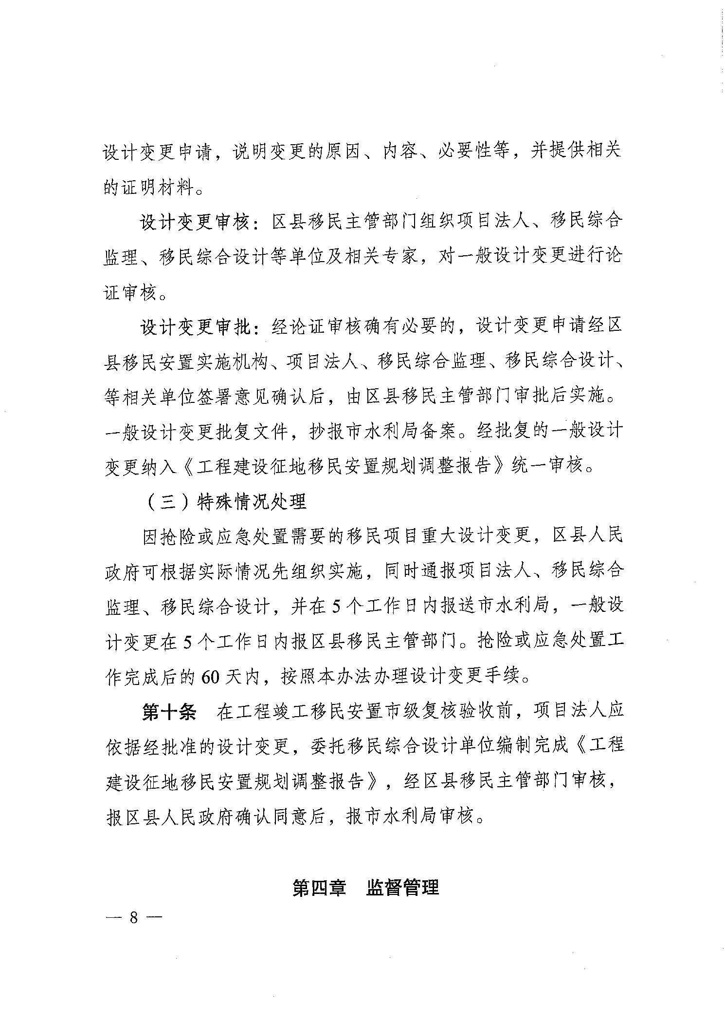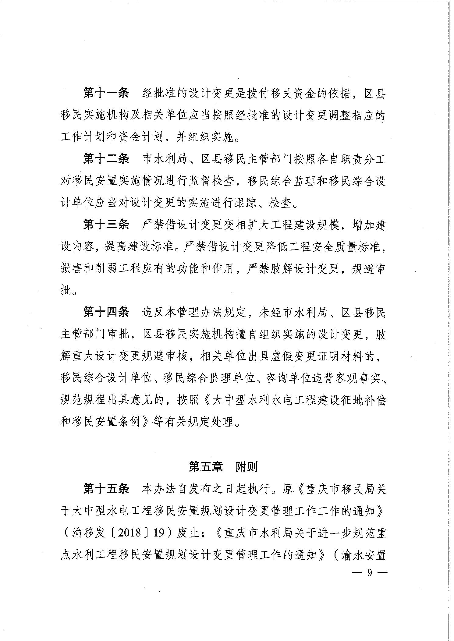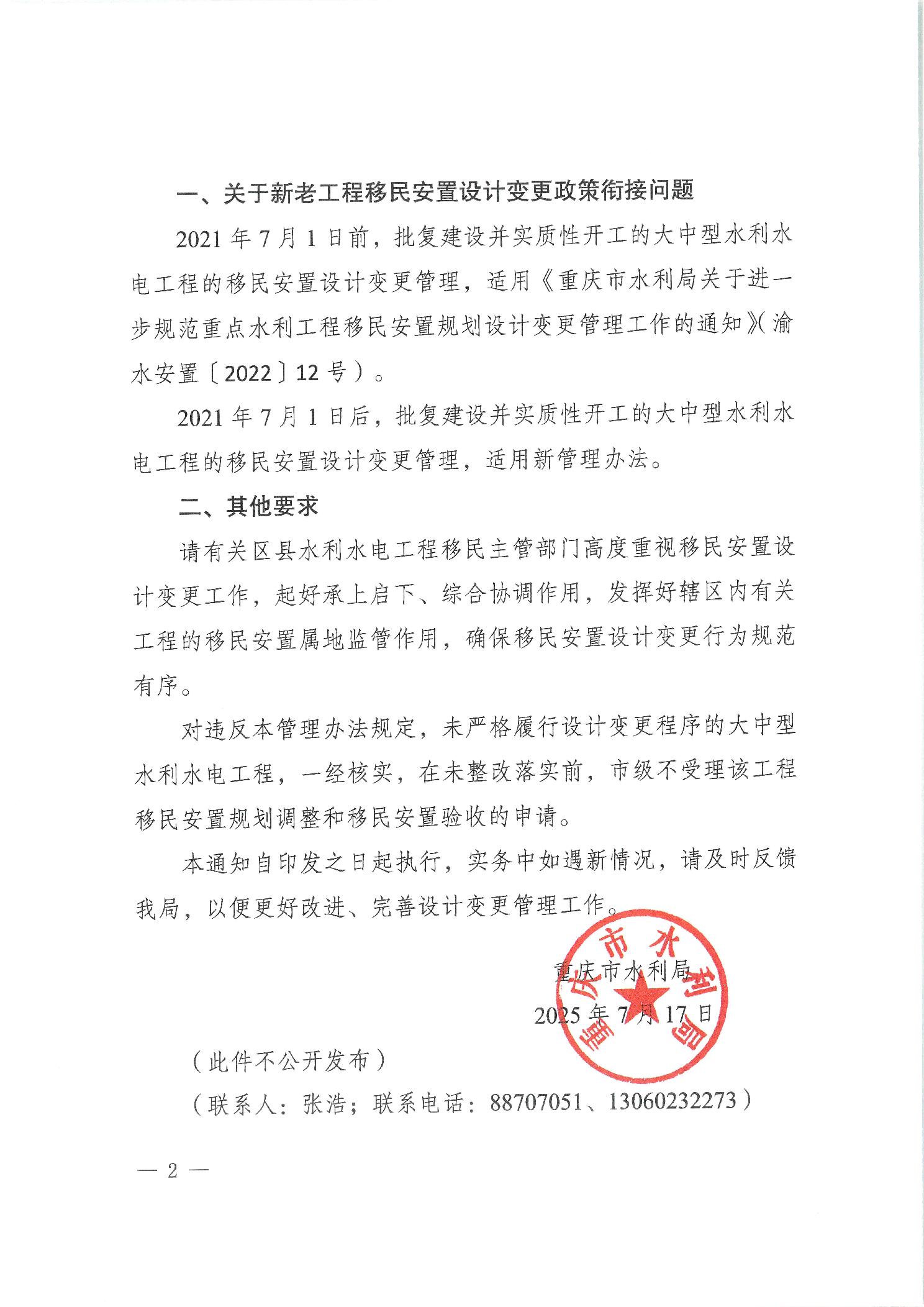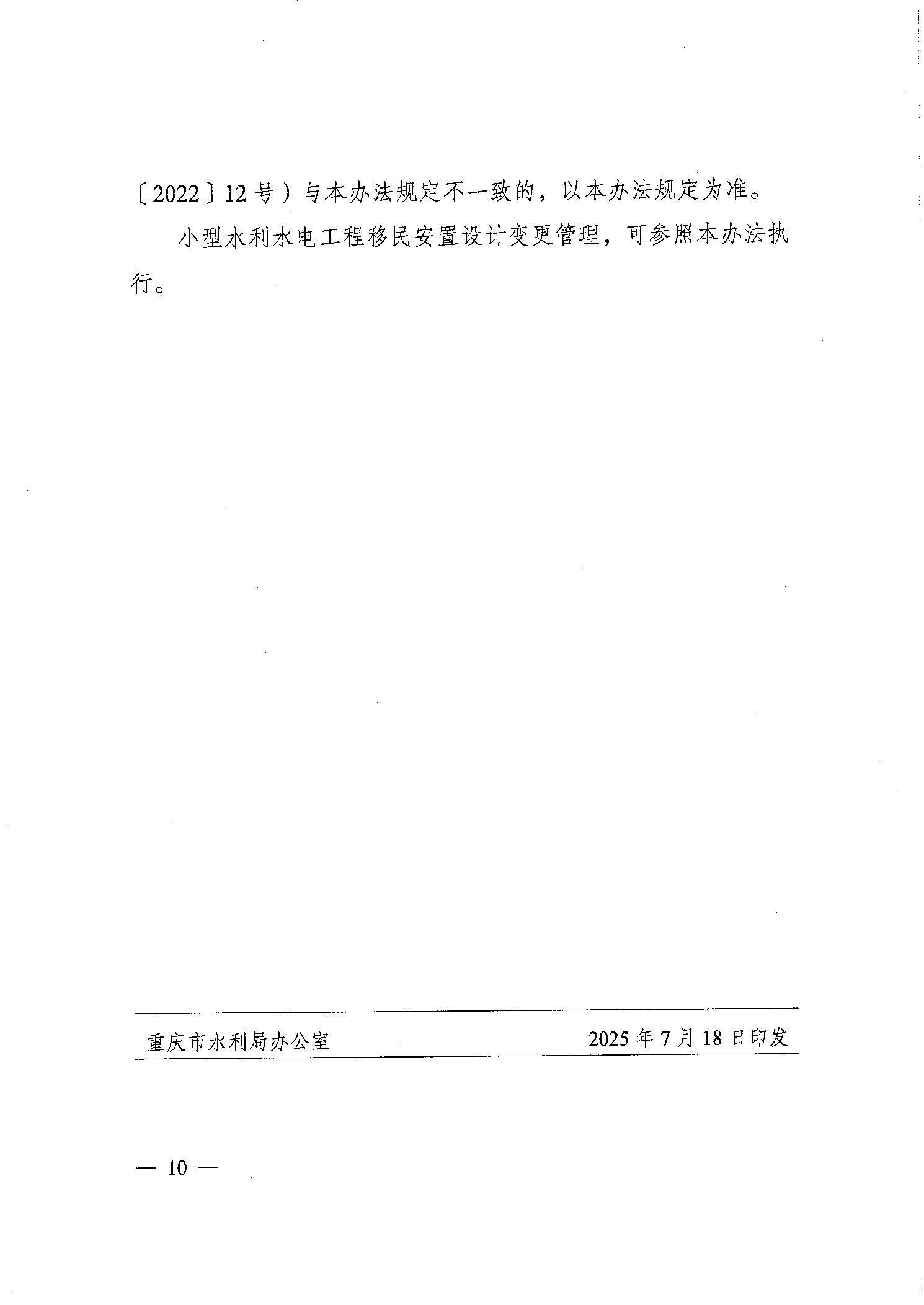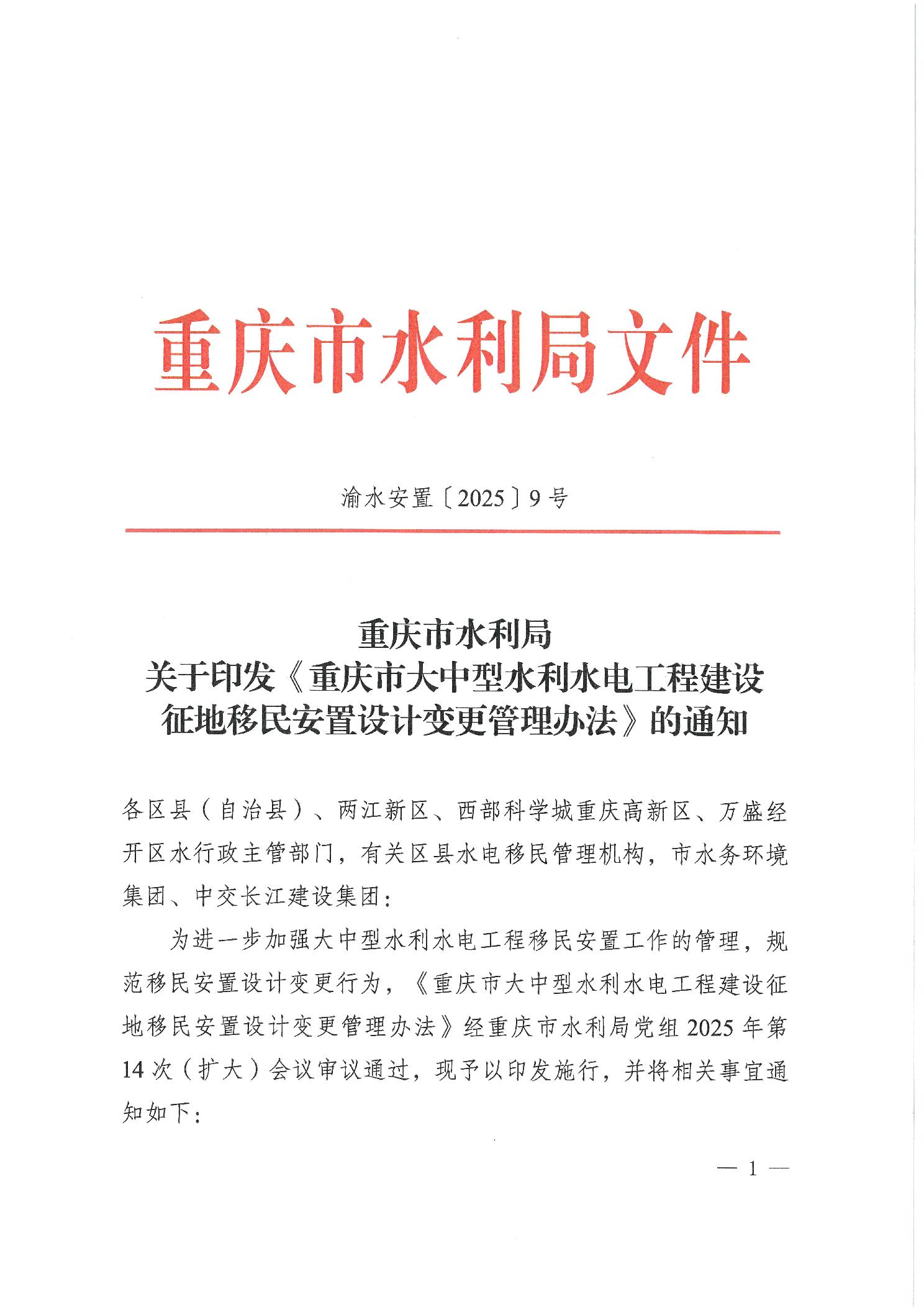 重庆市水利局关于印发《重庆市大中型水利水电工程建设征地移民安置设计变更管理办法》的通知(渝水安置〔2025〕9号).pdf