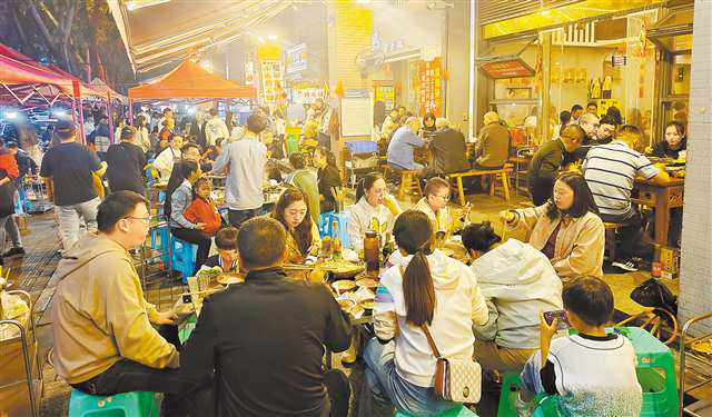 10月6日,渝北区北环,“北环美食街”上坐满了前来吃火锅的游客和市民。记者 崔力 实习生 巨文俊 摄\视觉重庆