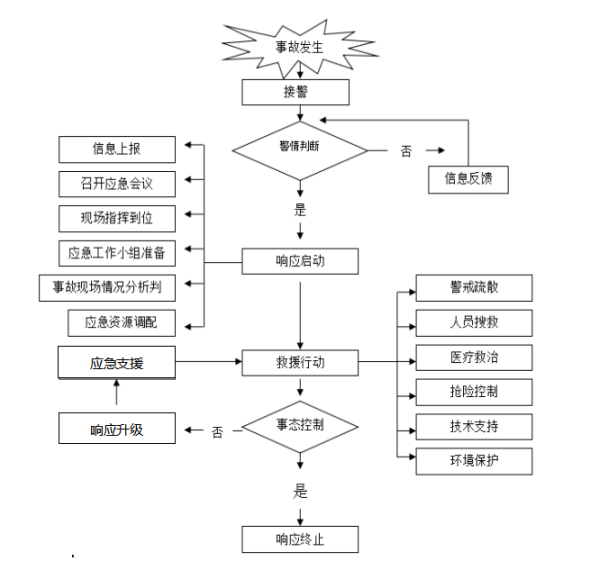 (8)事发单位:及时报告,及时处置,按照预案要求全力配合做好各项救援工作。