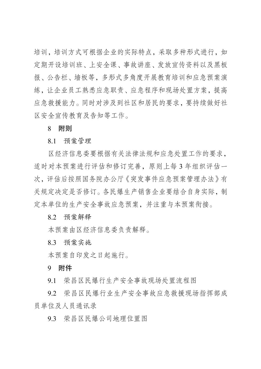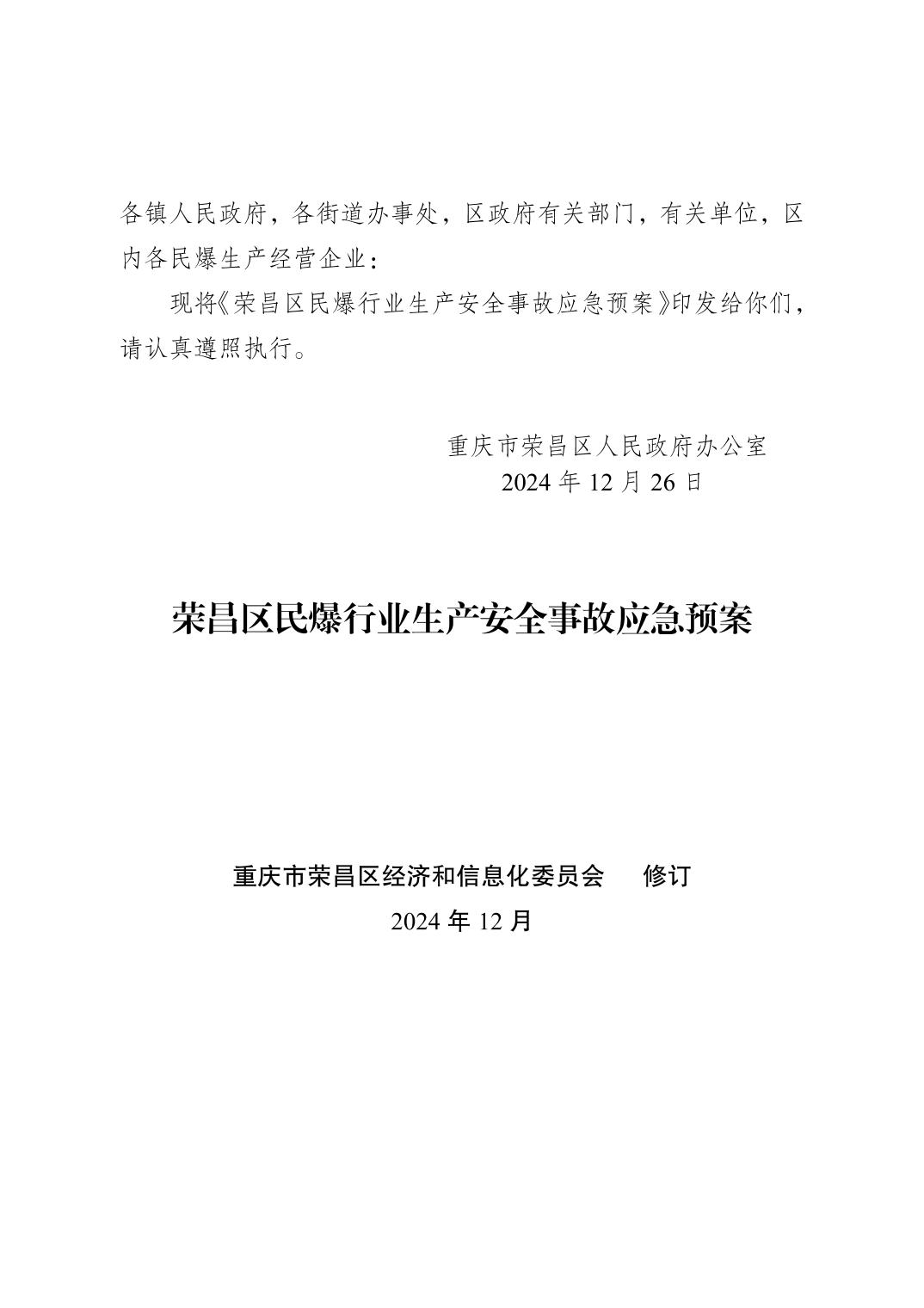 重庆市荣昌区人民政府办公室关于印发《荣昌区民爆行业生产安全事故应急预案》的通知
