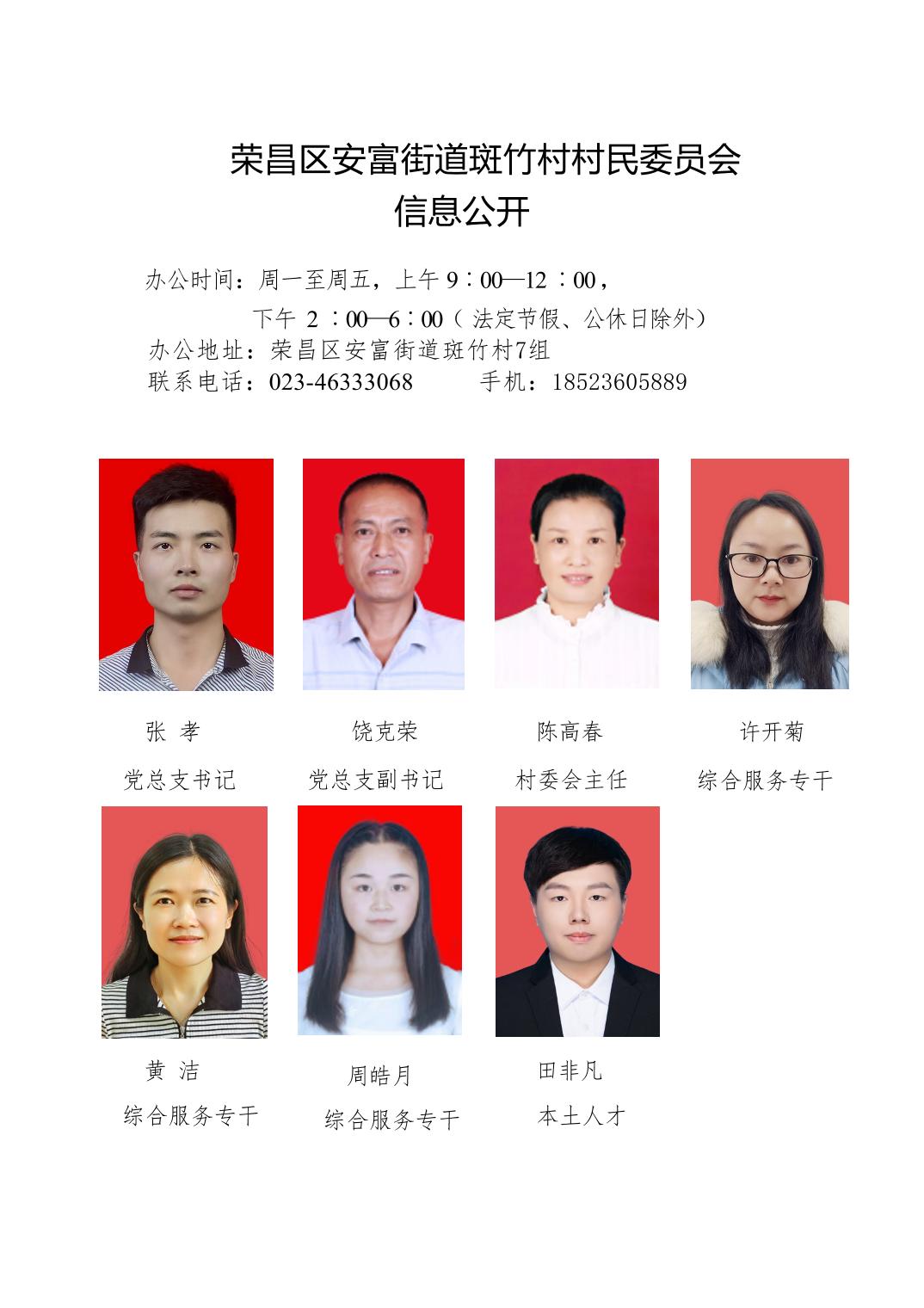 荣昌区安富街道斑竹村村民委员会信息公开