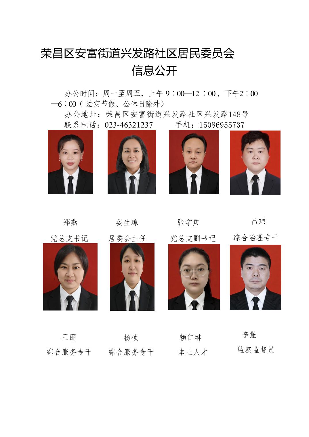 荣昌区安富街道兴发路社区居民委员会信息公开