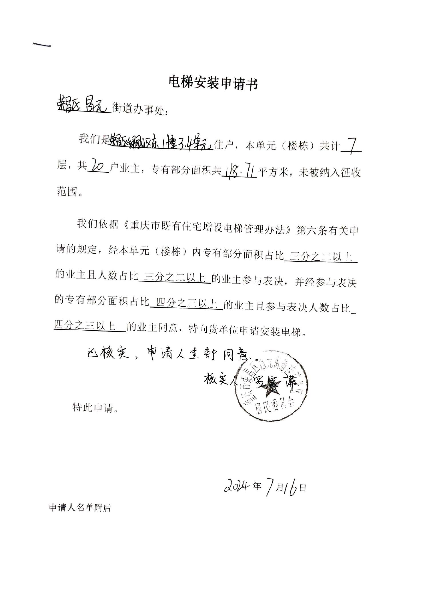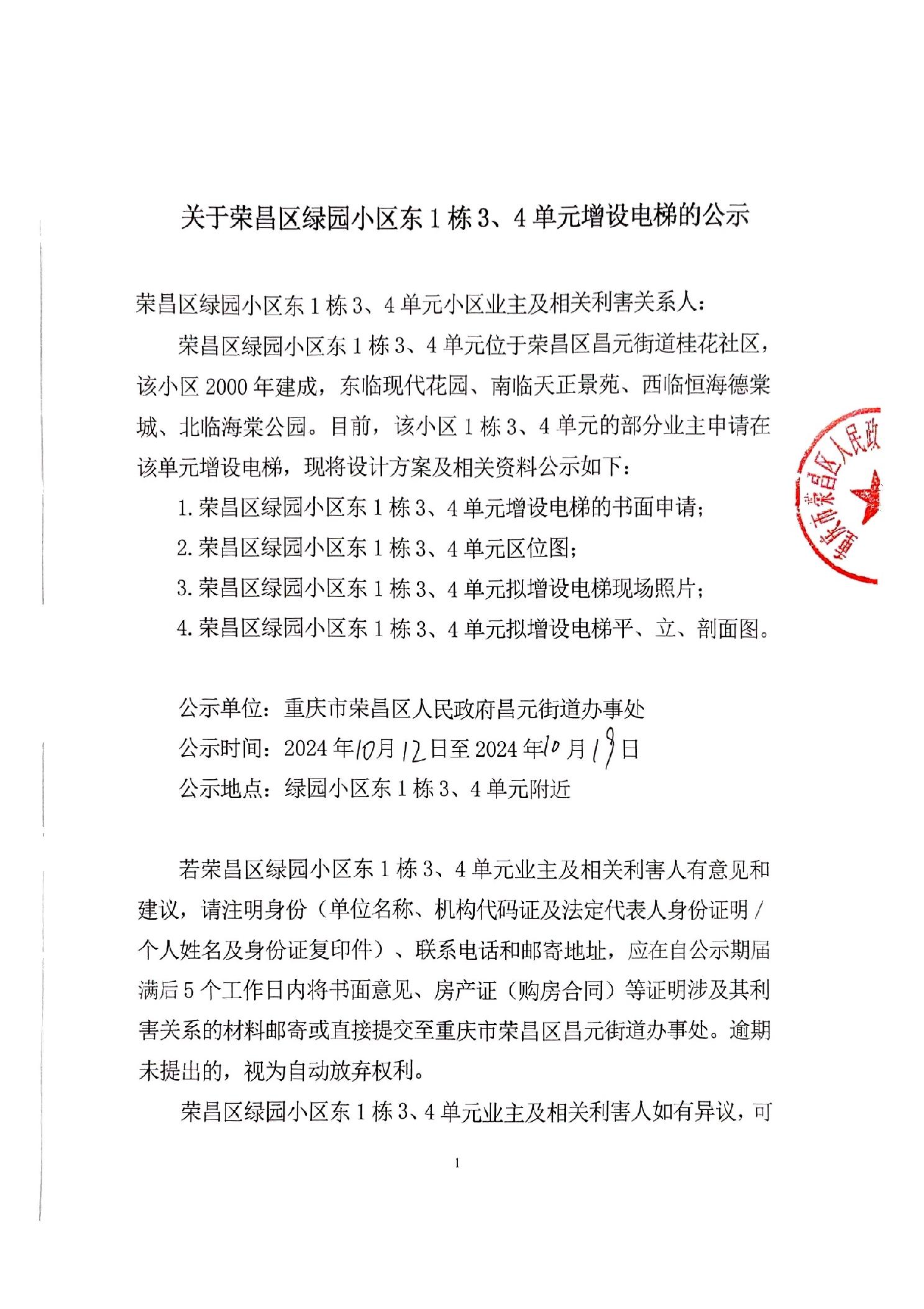 关于荣昌区绿园小区东1栋3、4单元增设电梯的公示