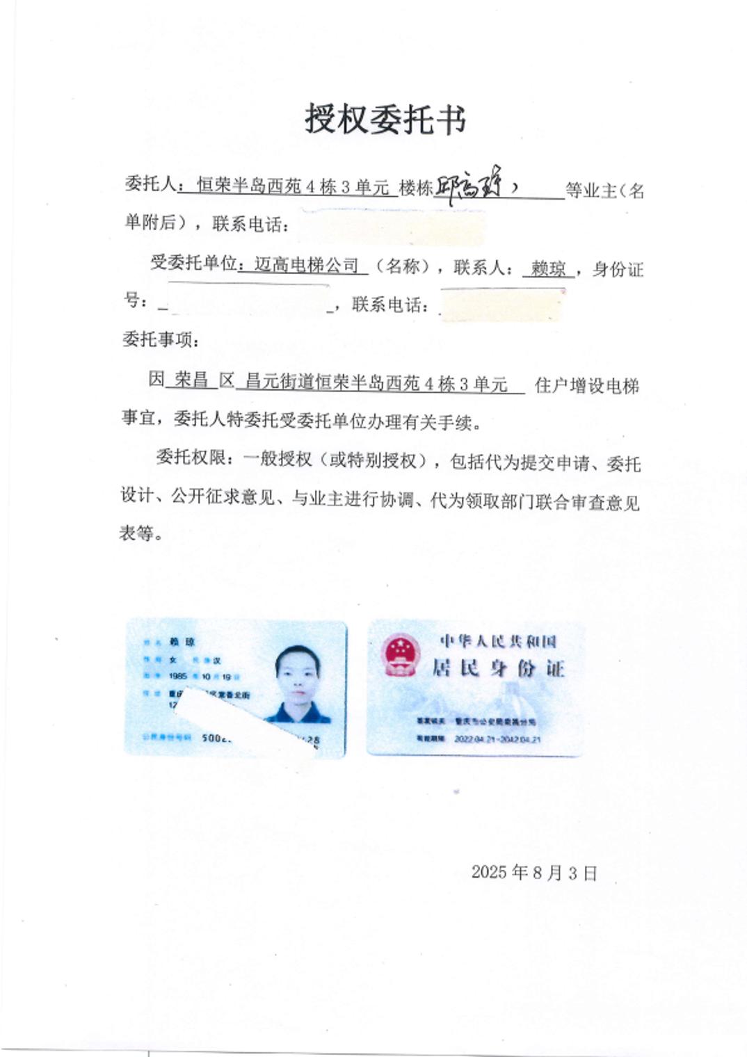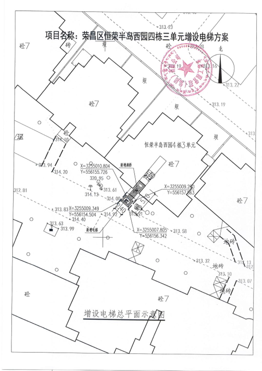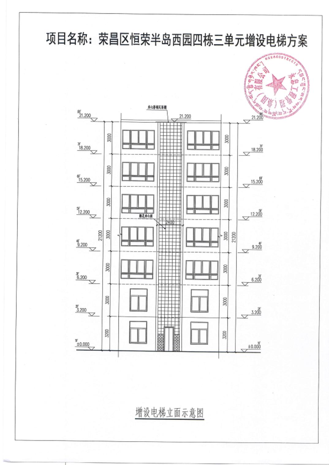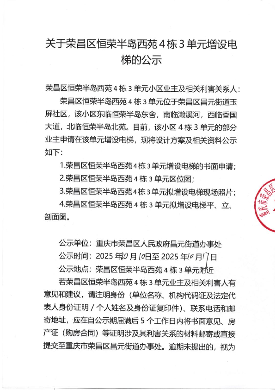 关于荣昌区恒荣半岛西苑4栋3单元增设电梯的公示