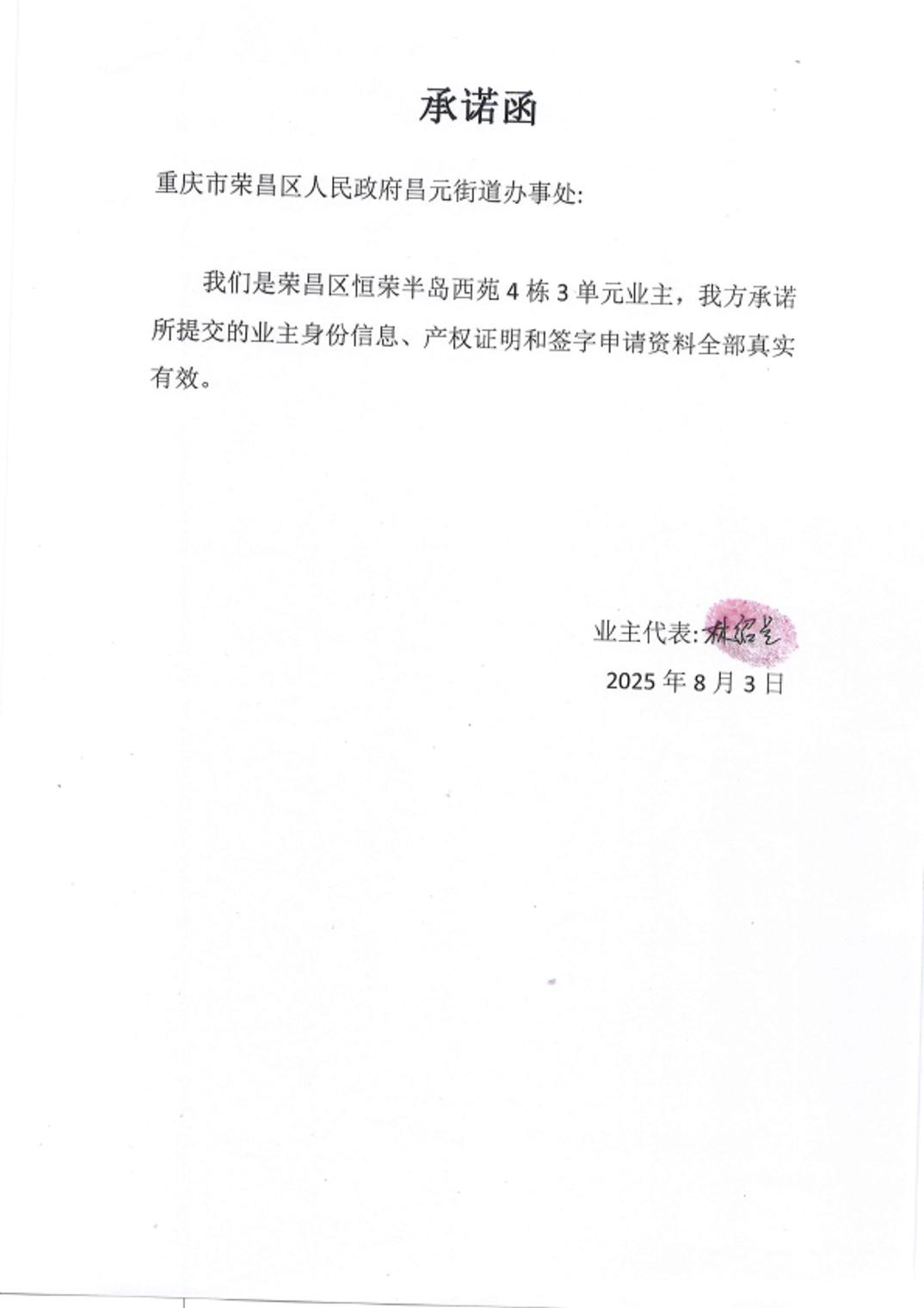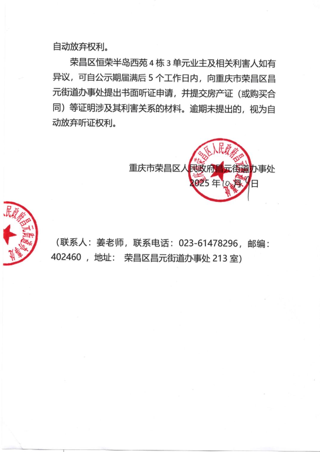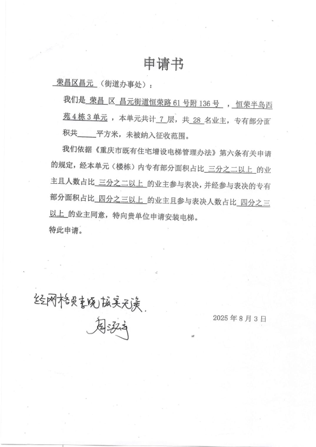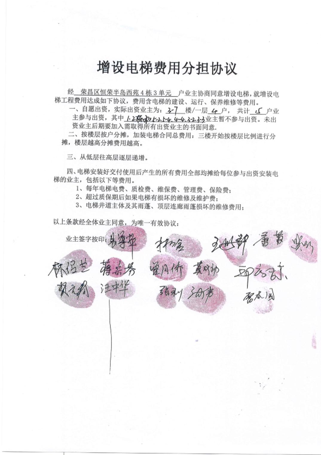 关于荣昌区恒荣半岛西苑4栋3单元增设电梯的公示