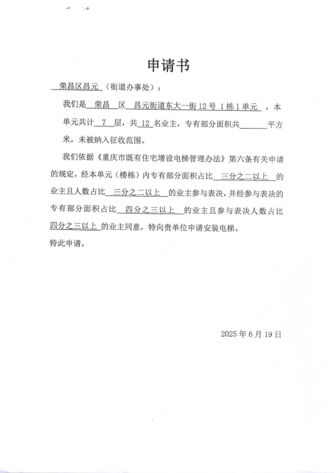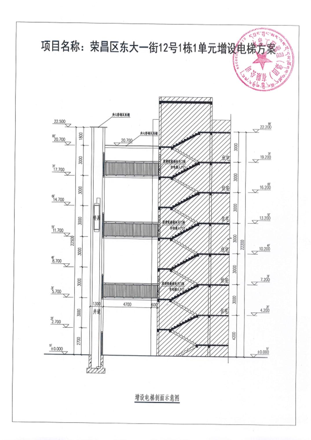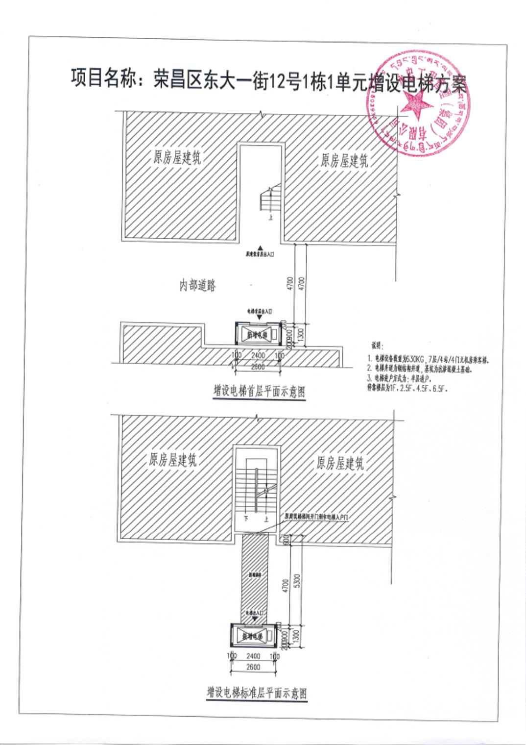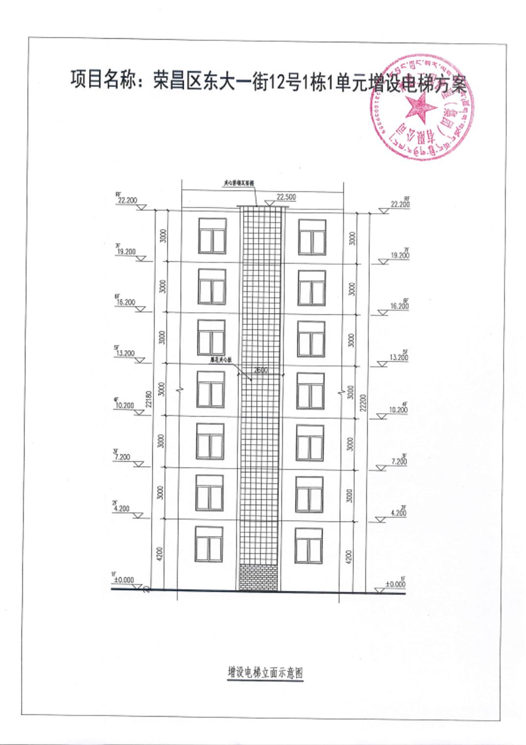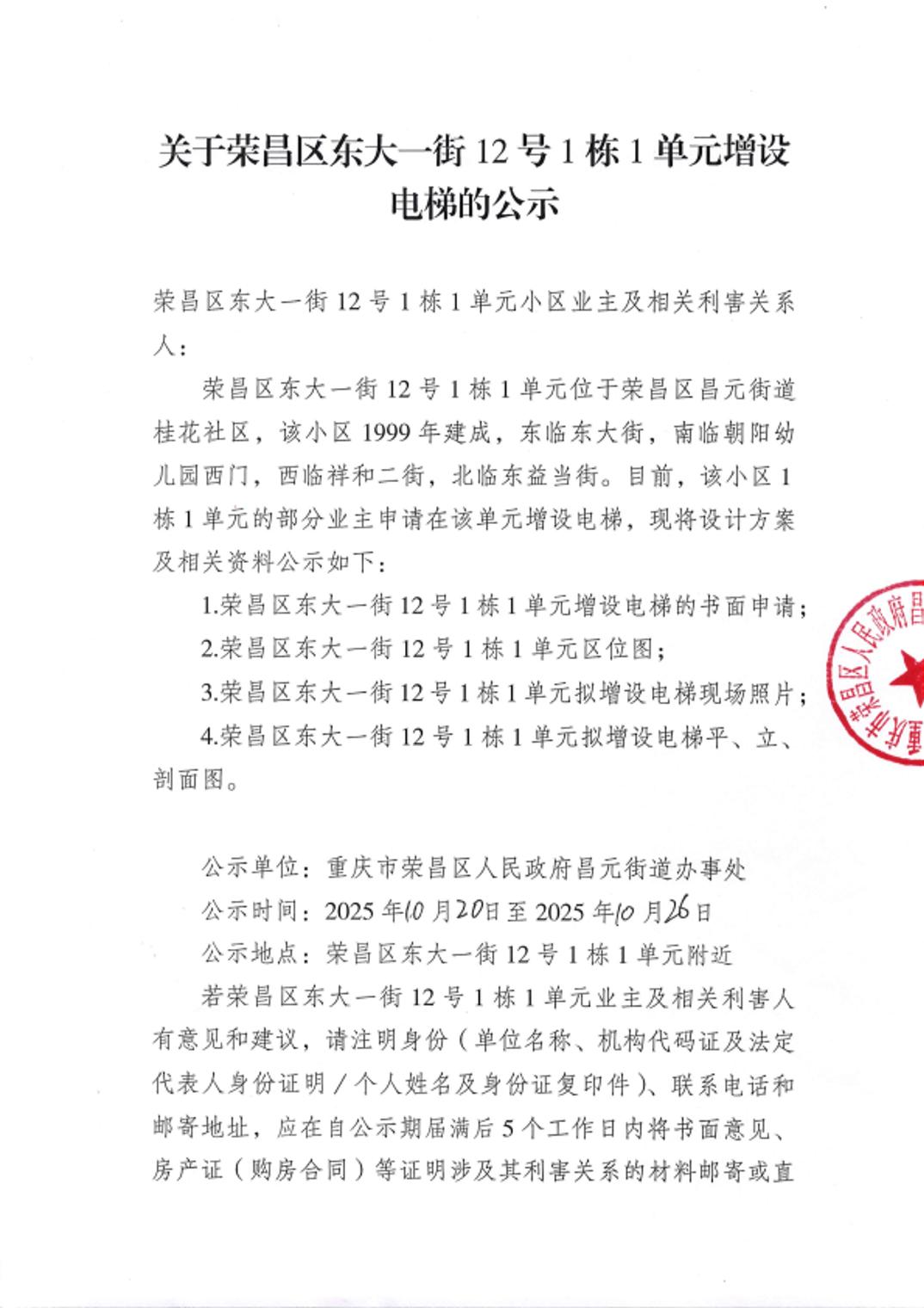 关于荣昌区东大一街12号1栋1单元增设电梯的公示