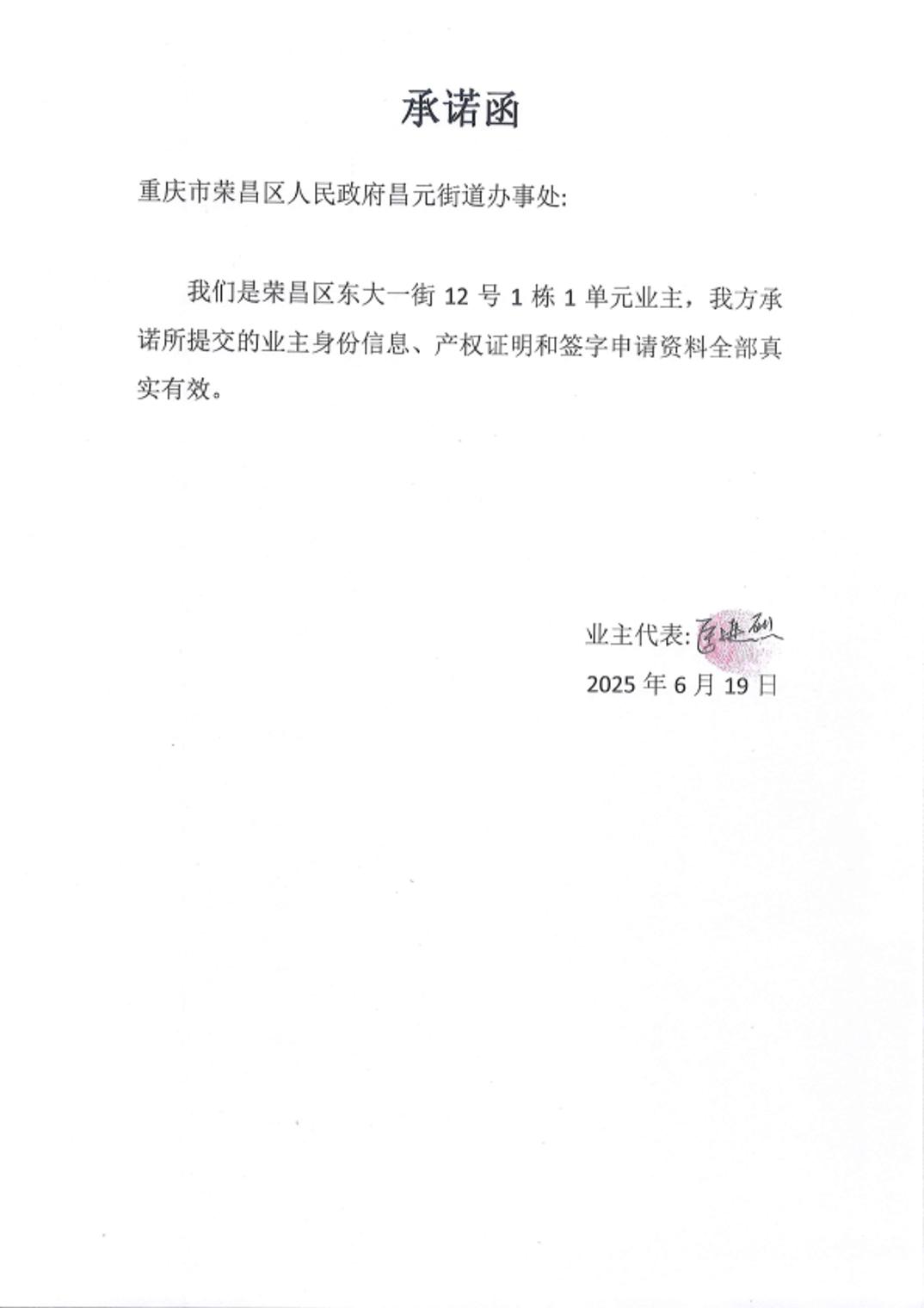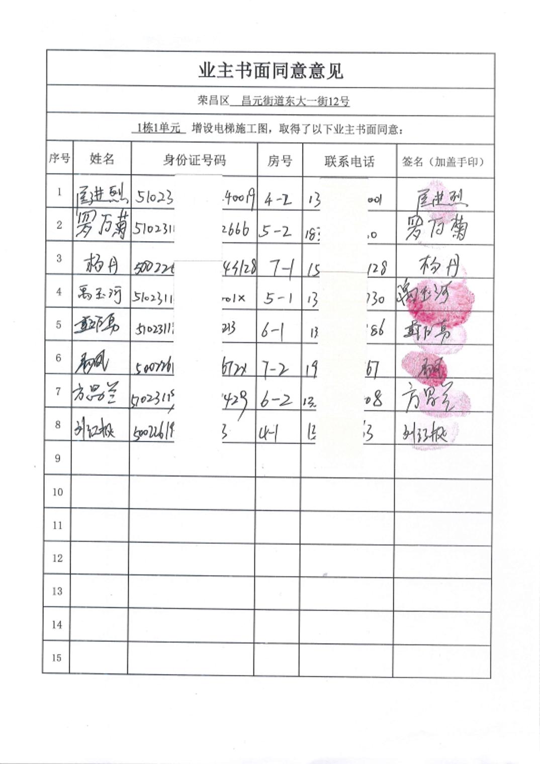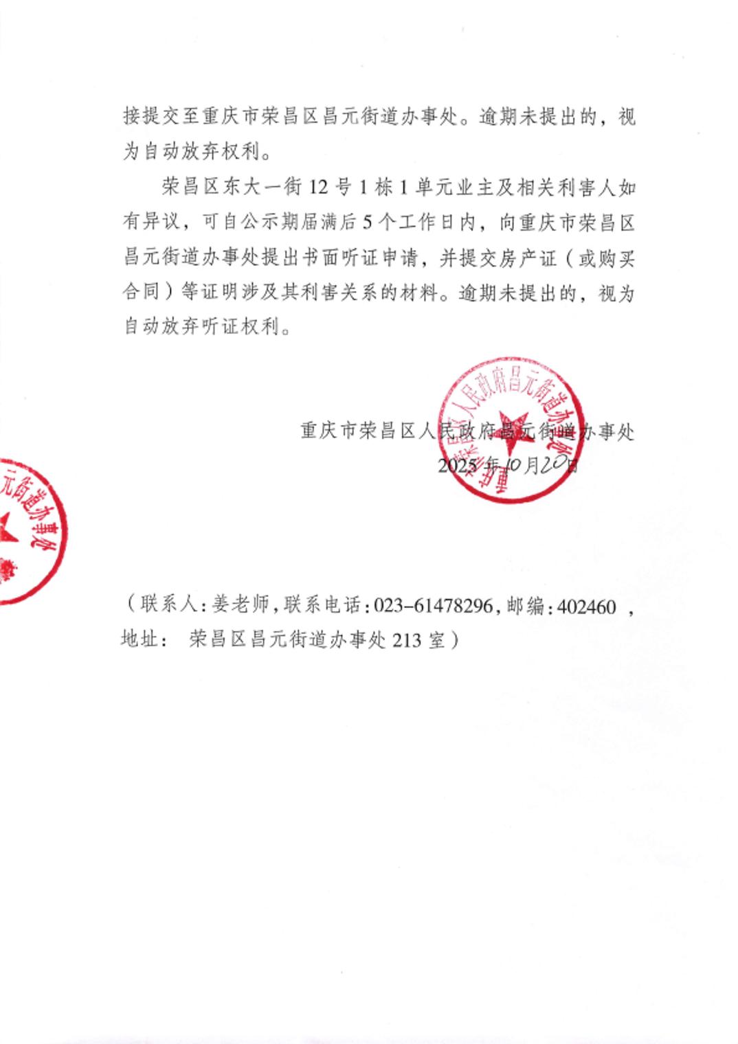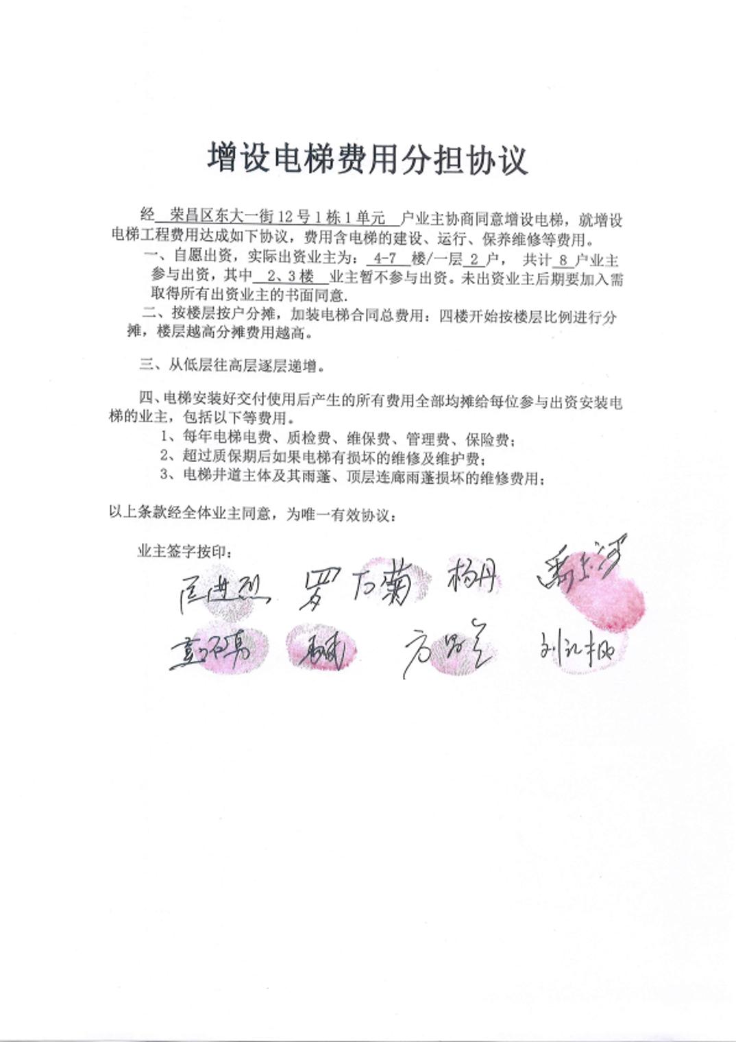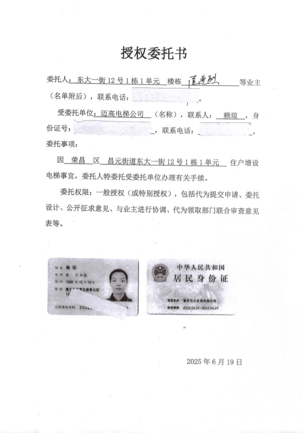 关于荣昌区东大一街12号1栋1单元增设电梯的公示