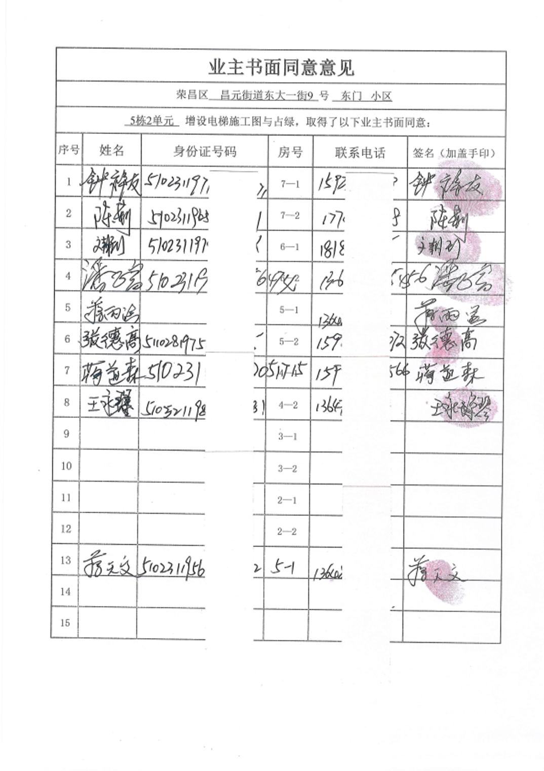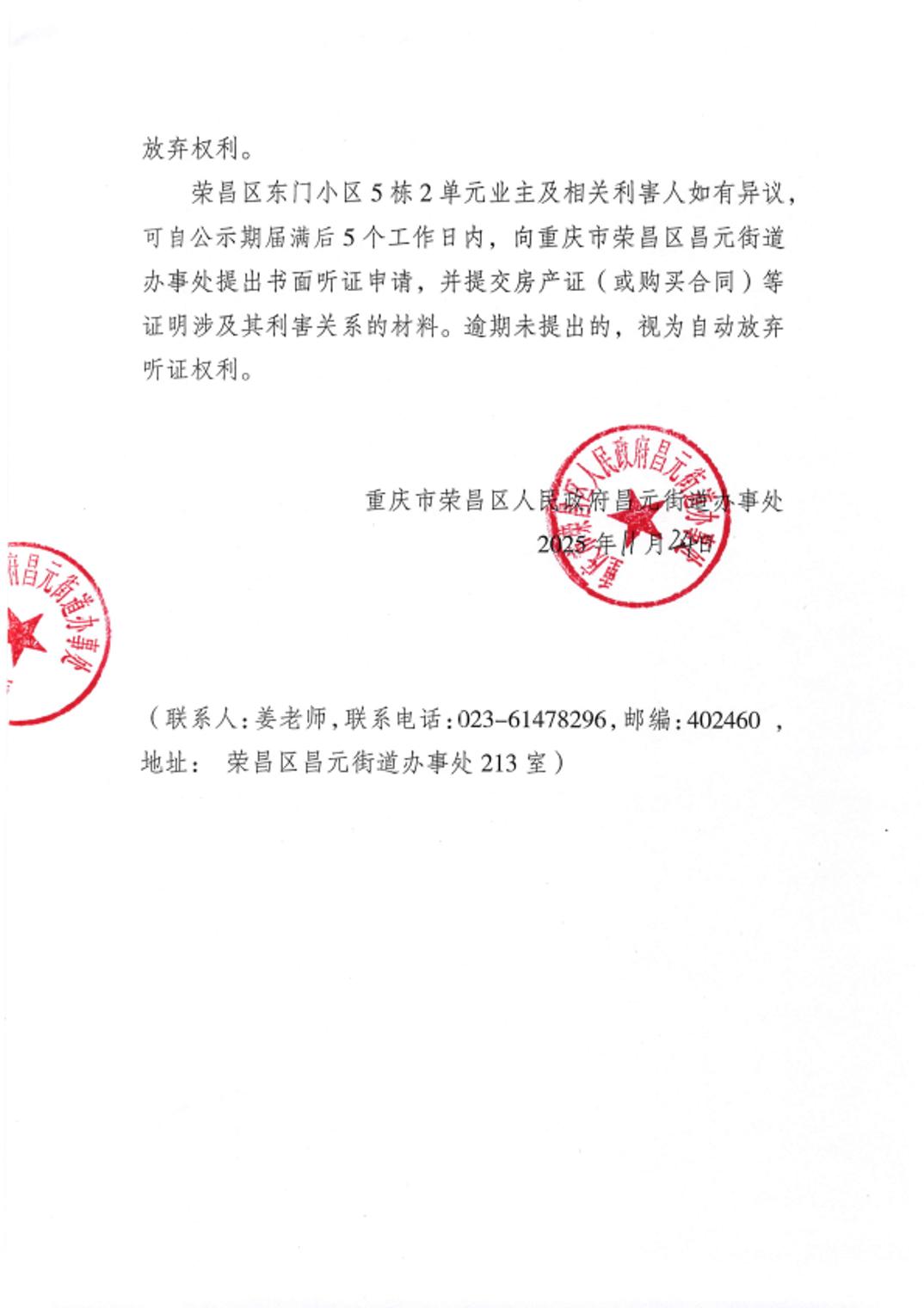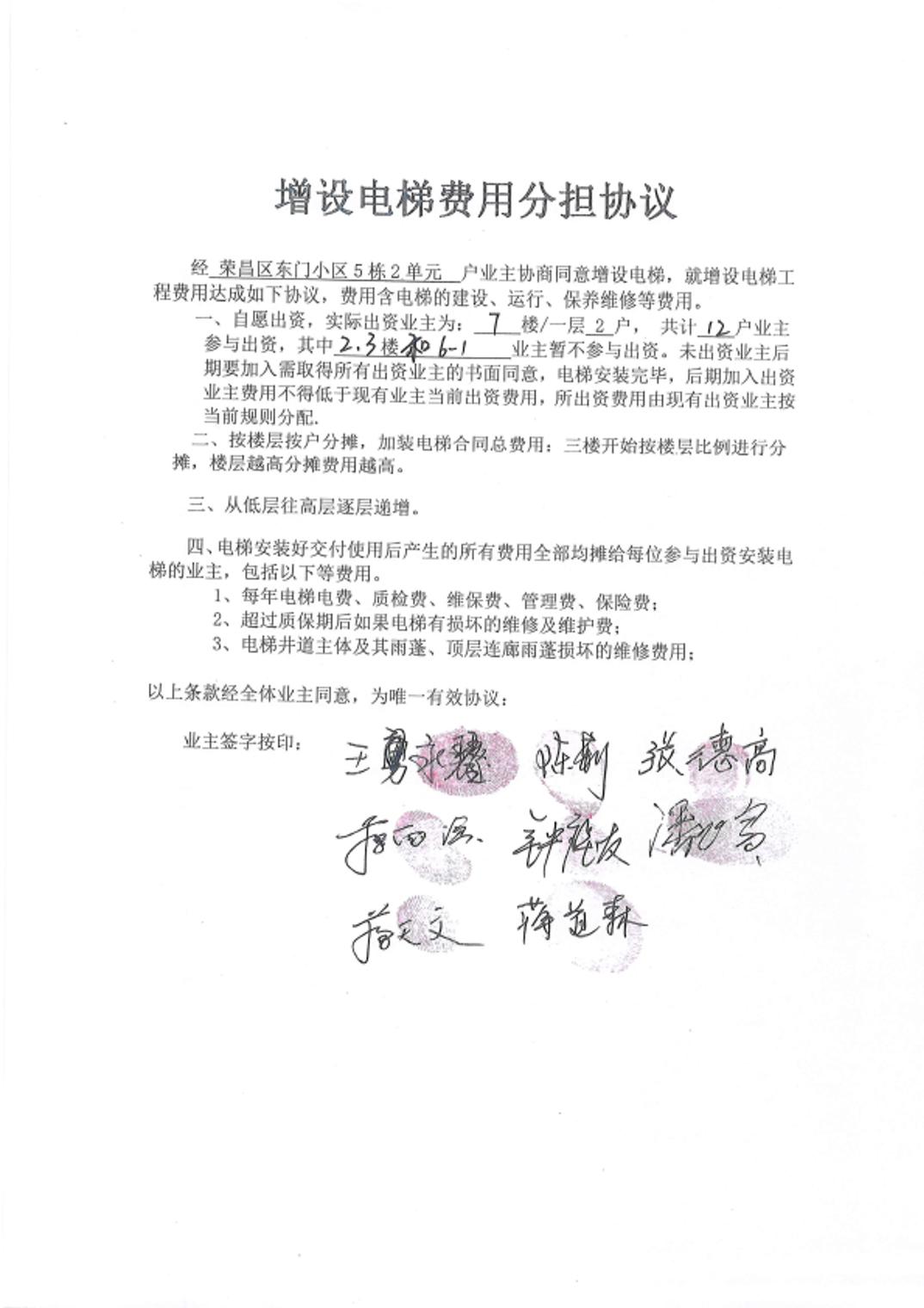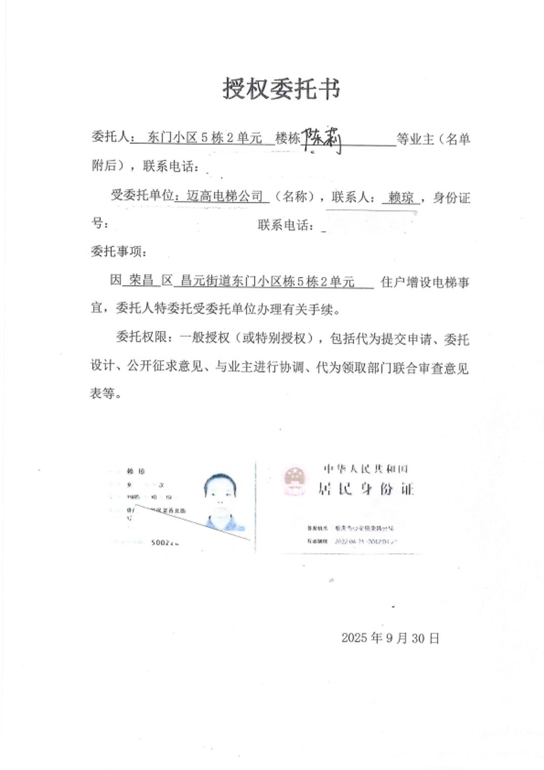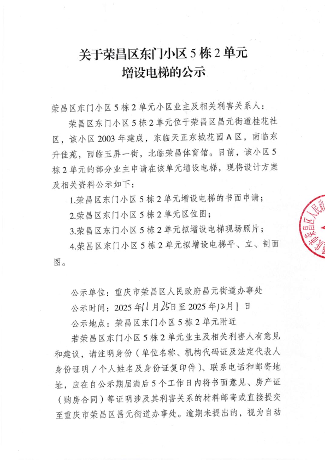 关于荣昌区东门小区5栋2单元增设电梯的公示