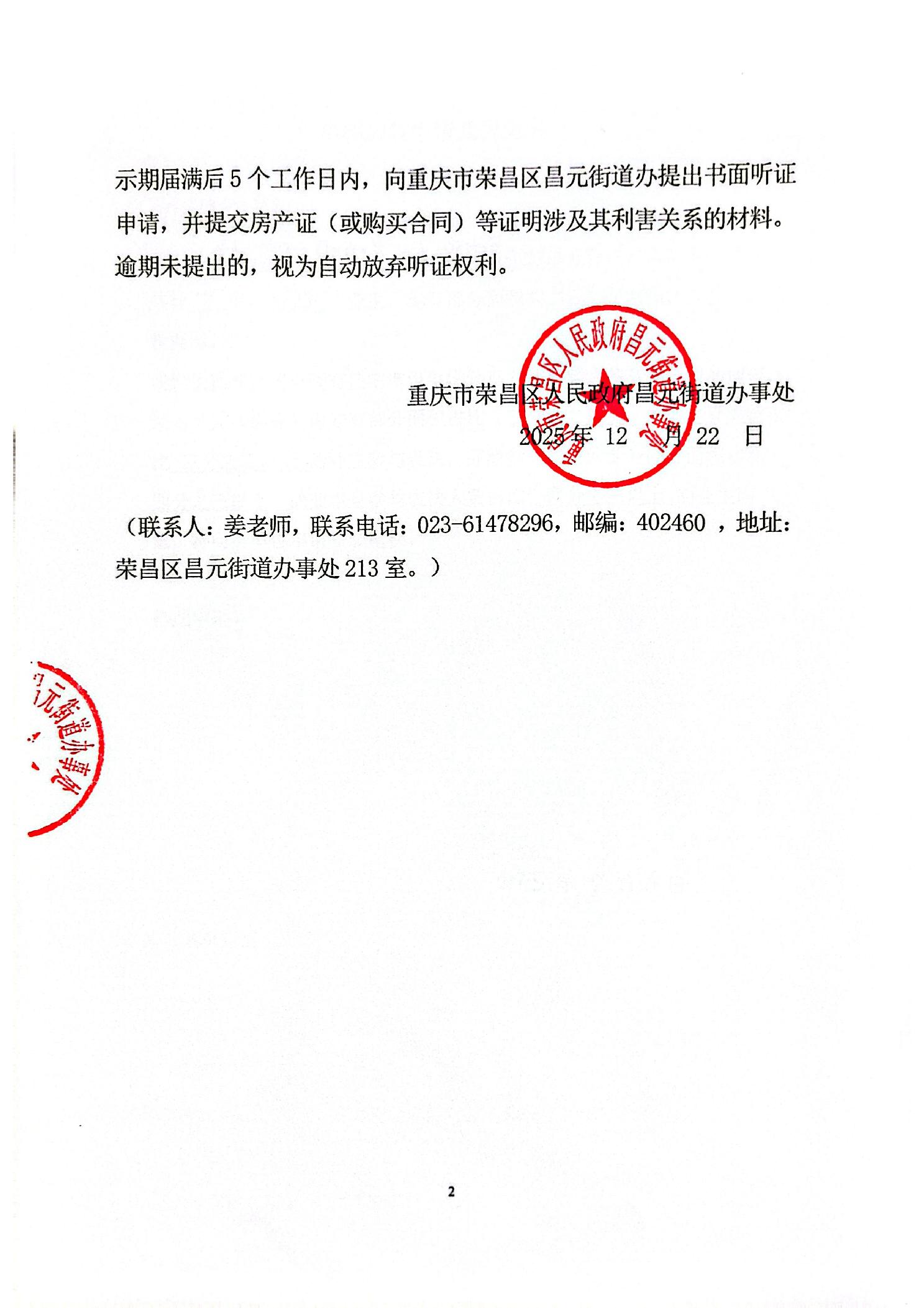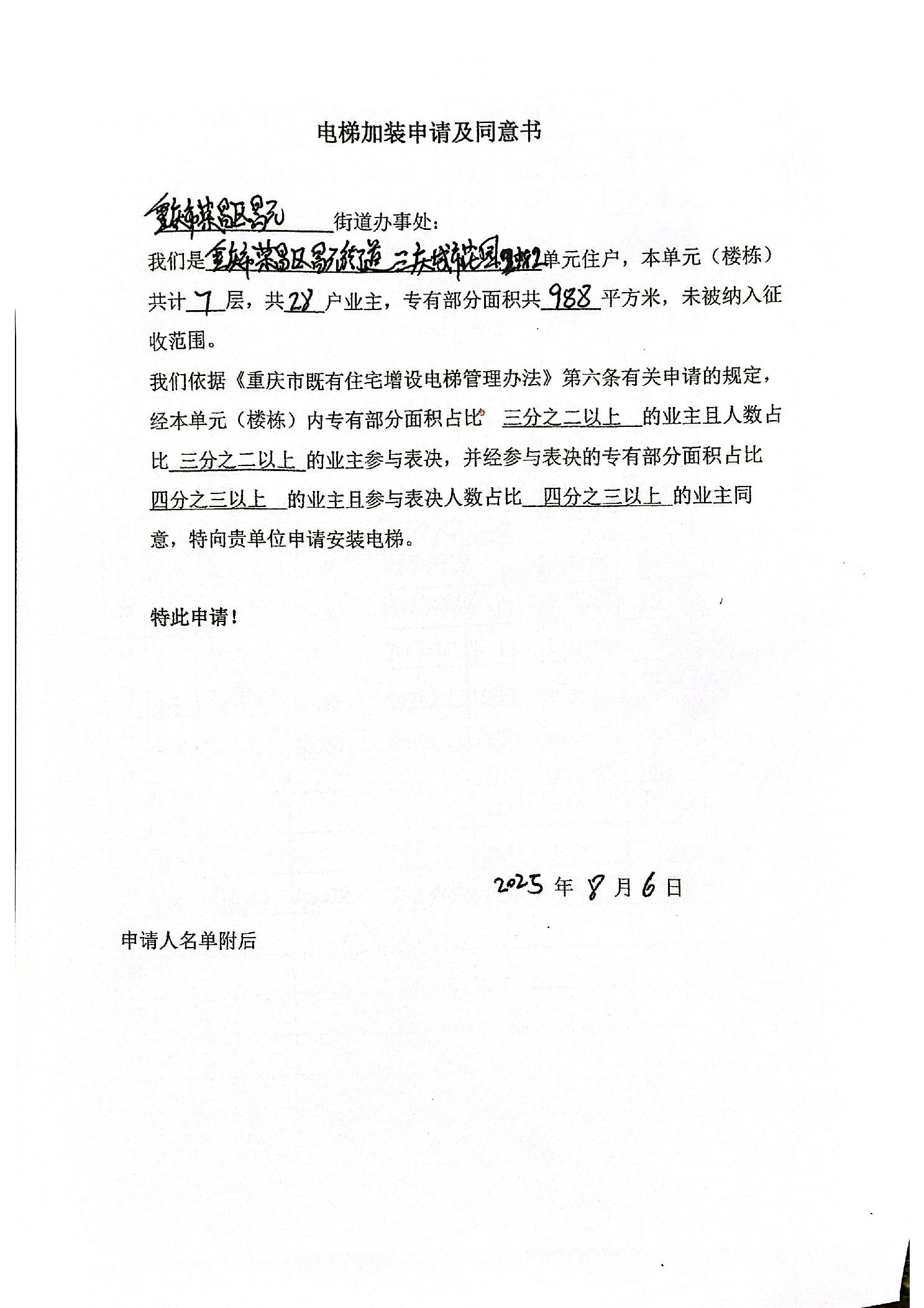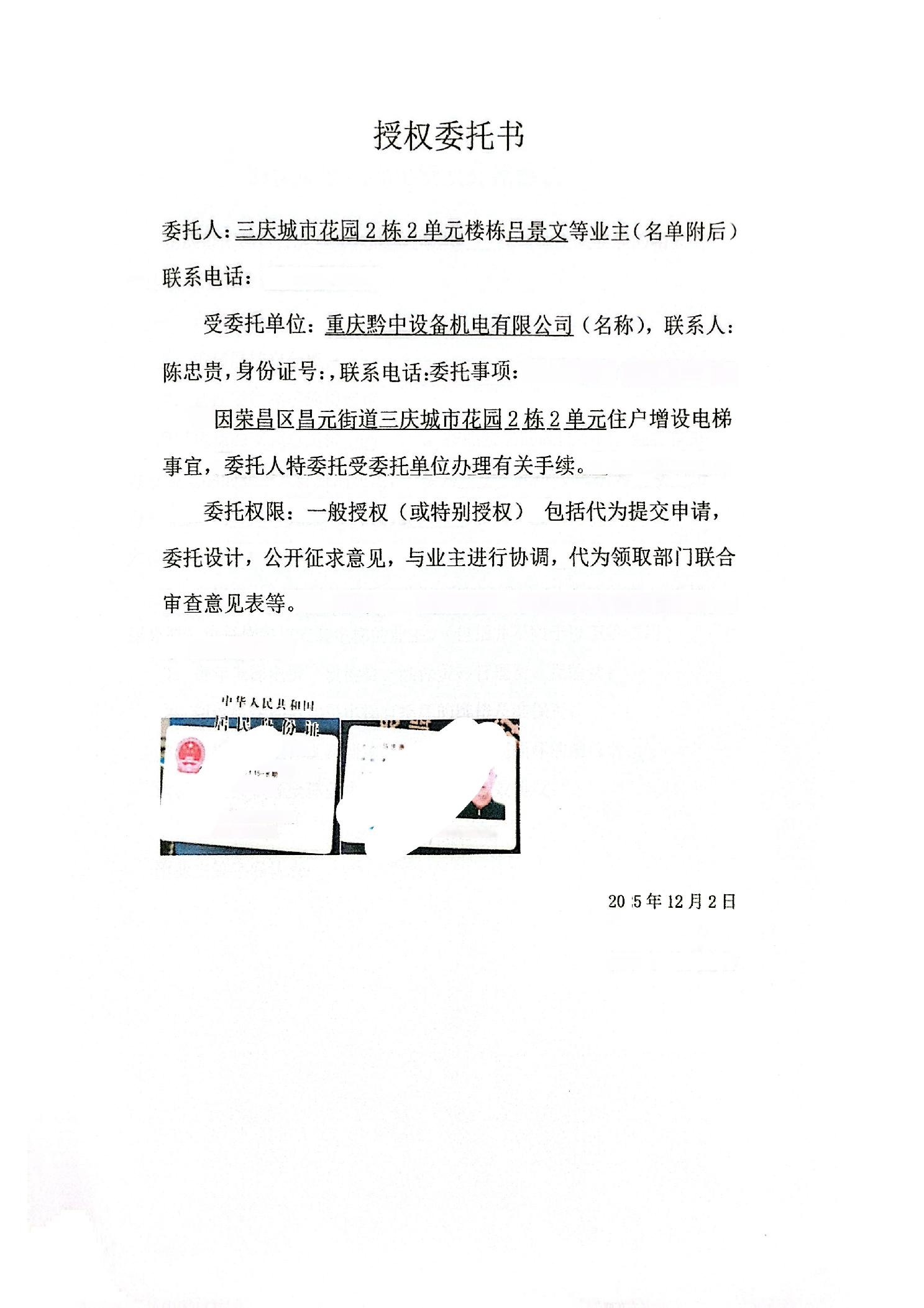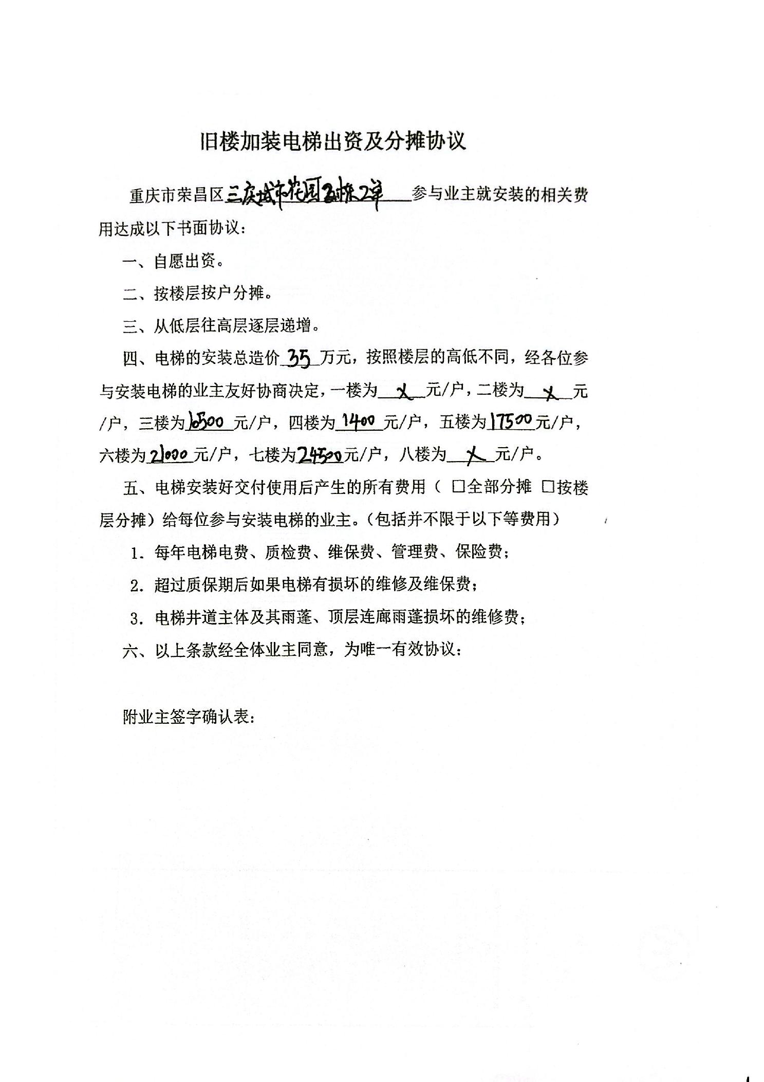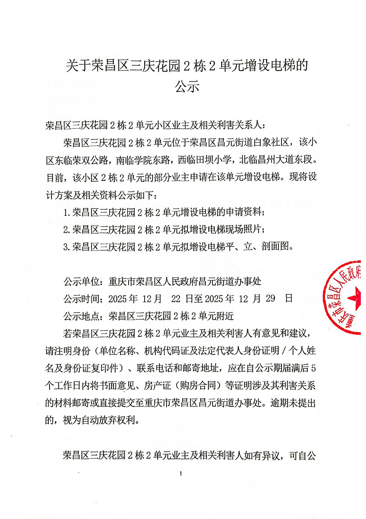 关于荣昌区三庆花园2栋2单元增设电梯的公示