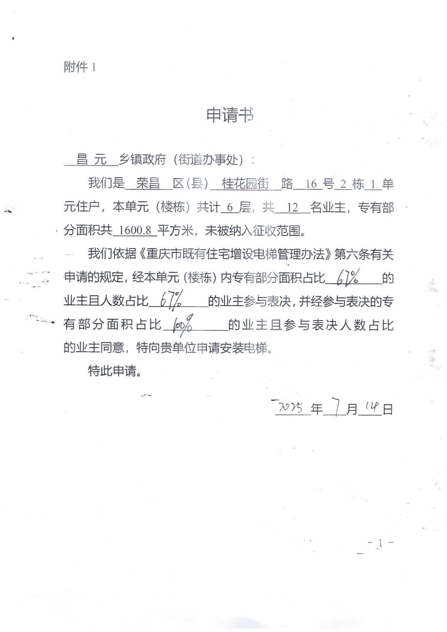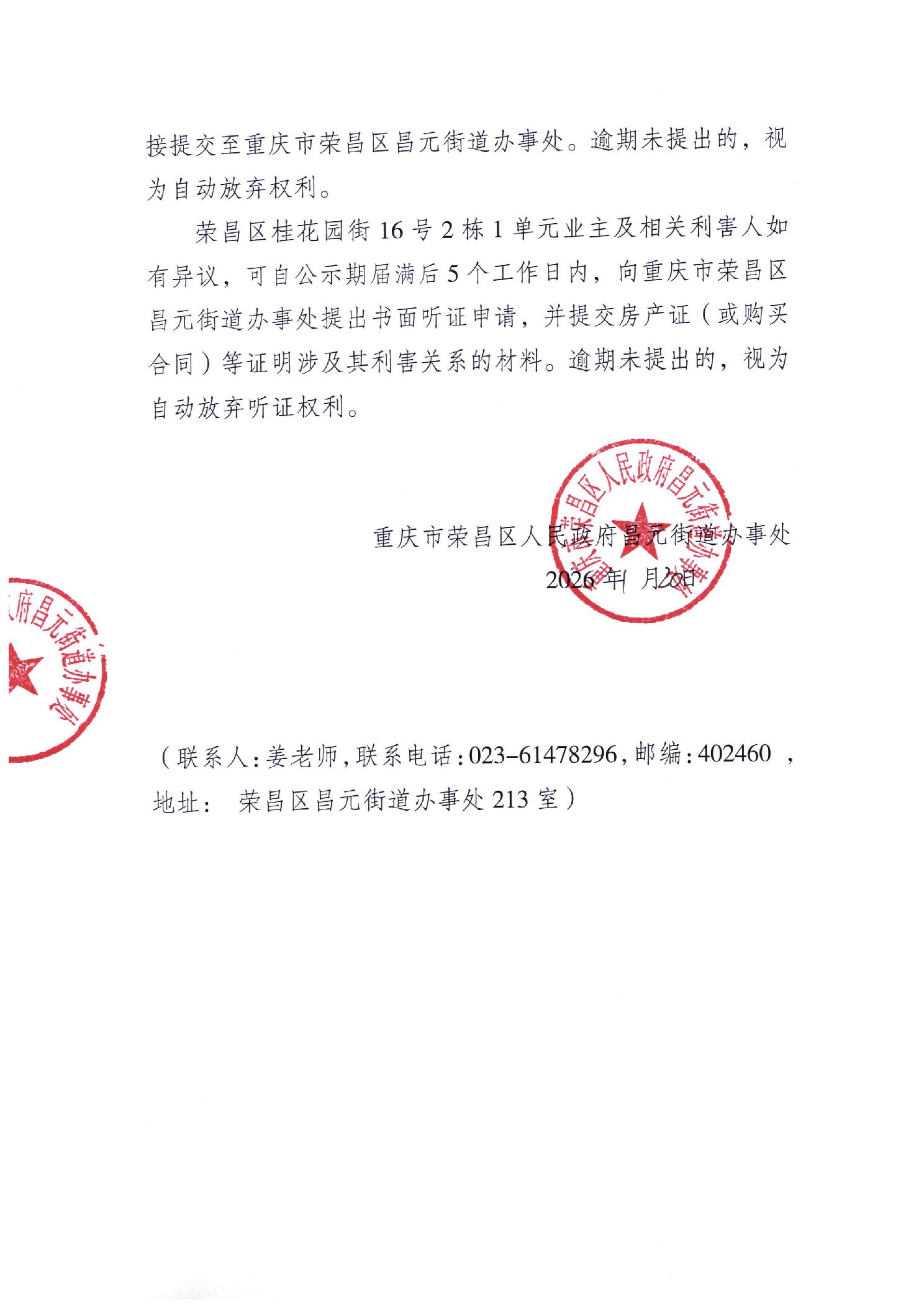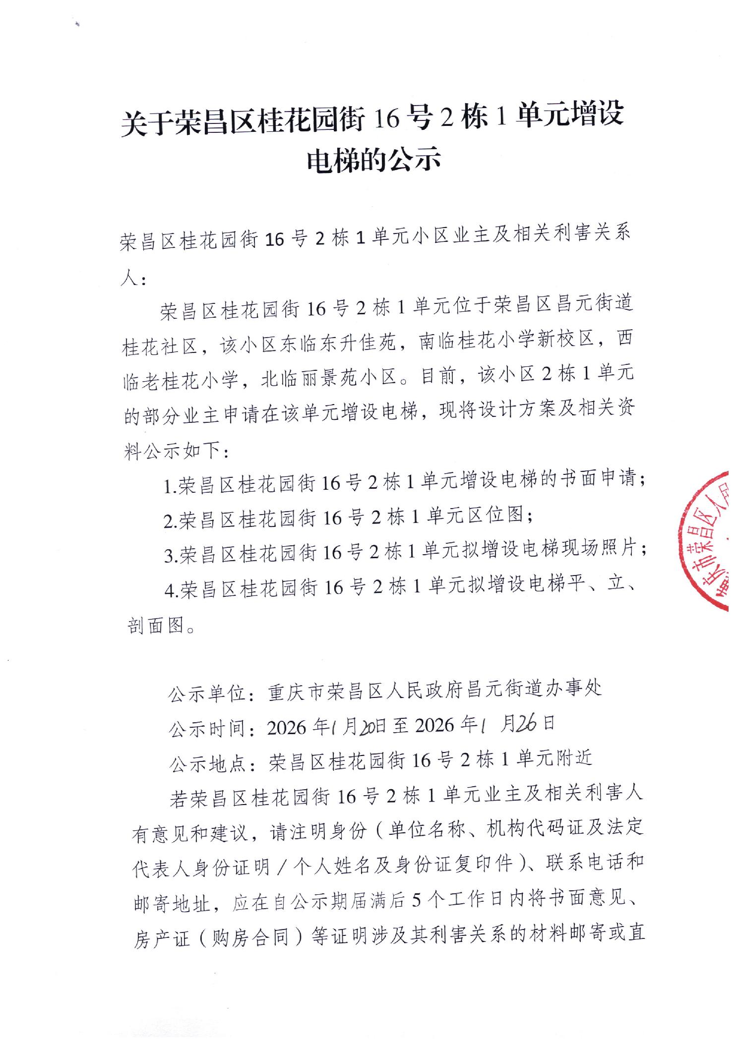 关于荣昌区桂花园街16号2栋1单元增设电梯的公示