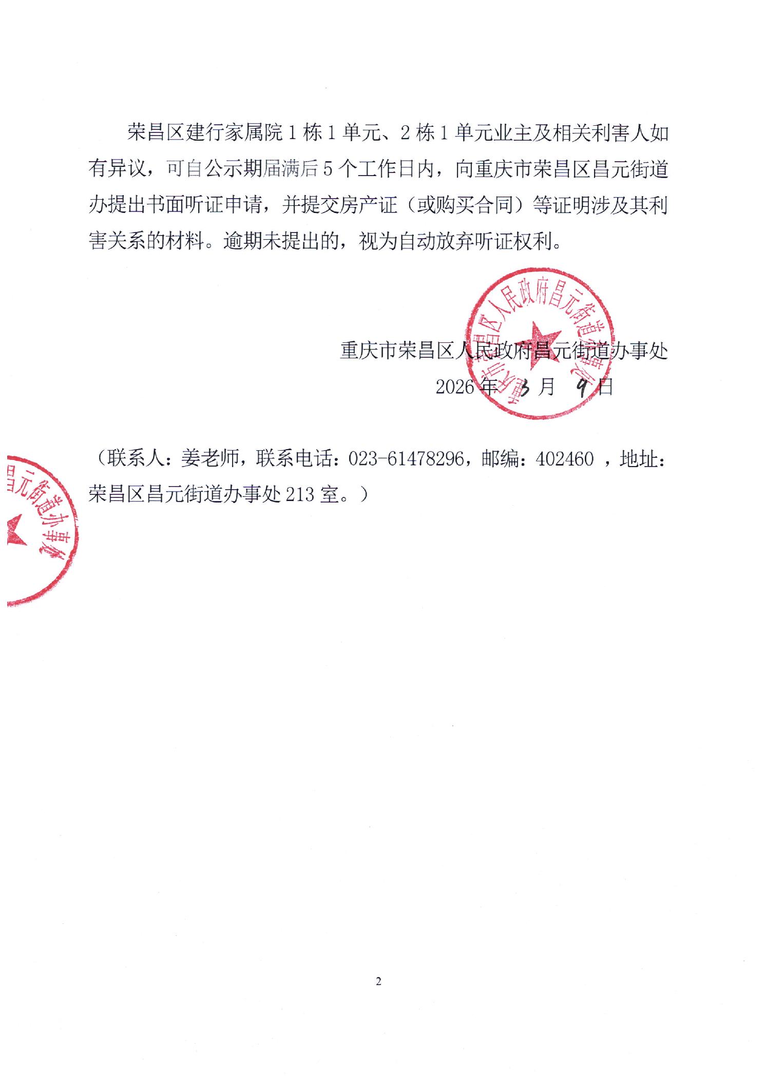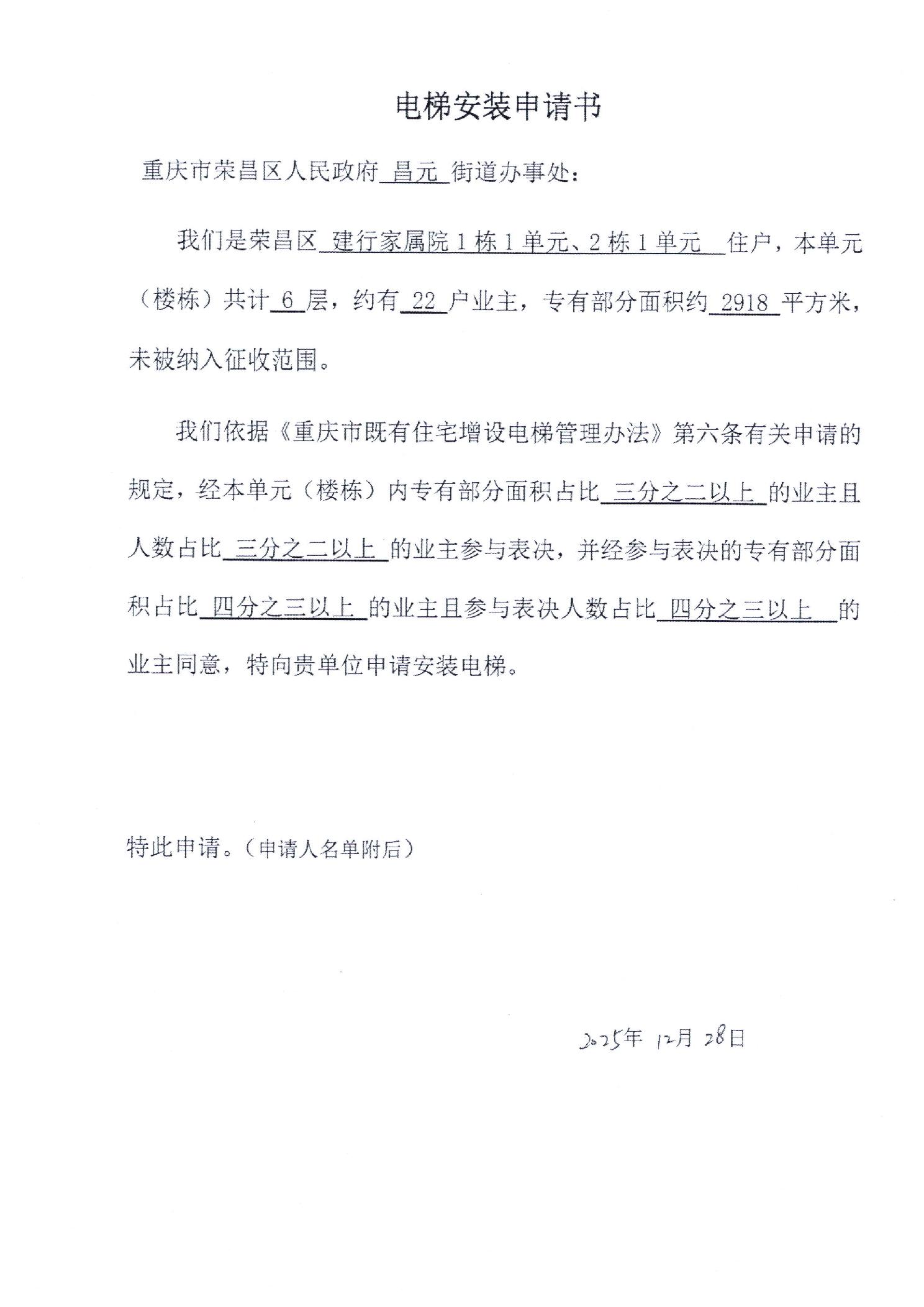 关于荣昌区建行家属院1栋1单元、2栋1单元增设电梯的公示