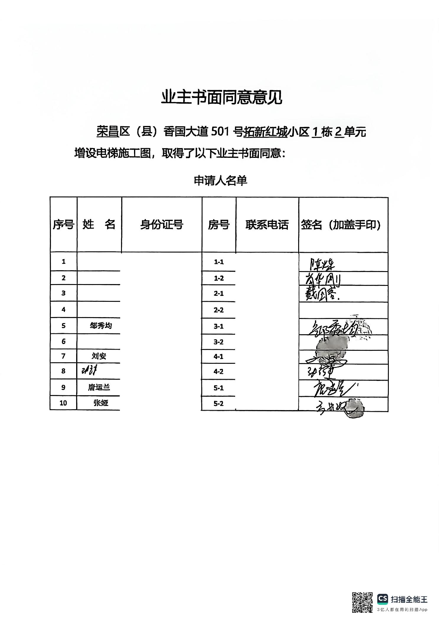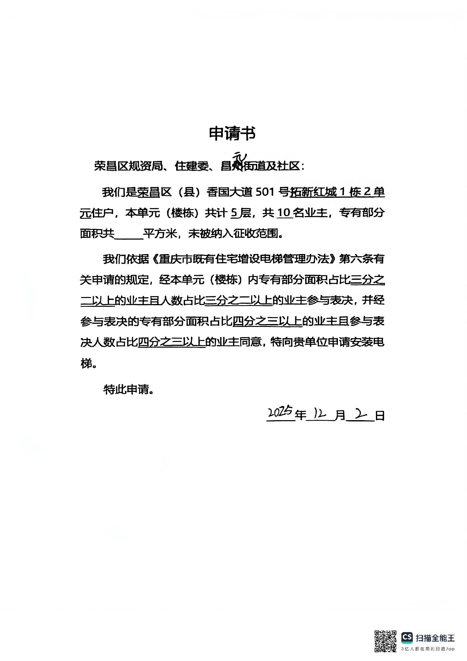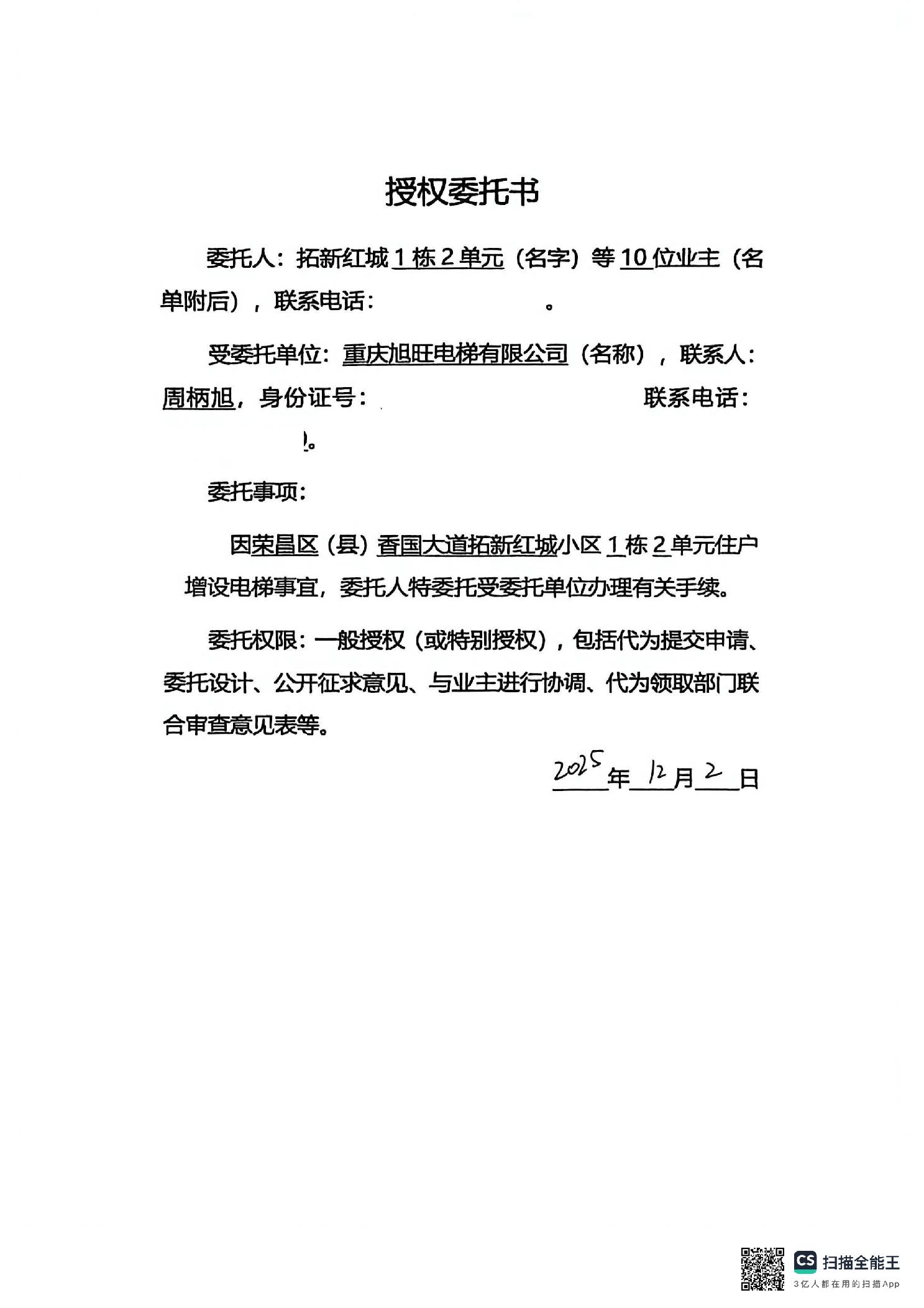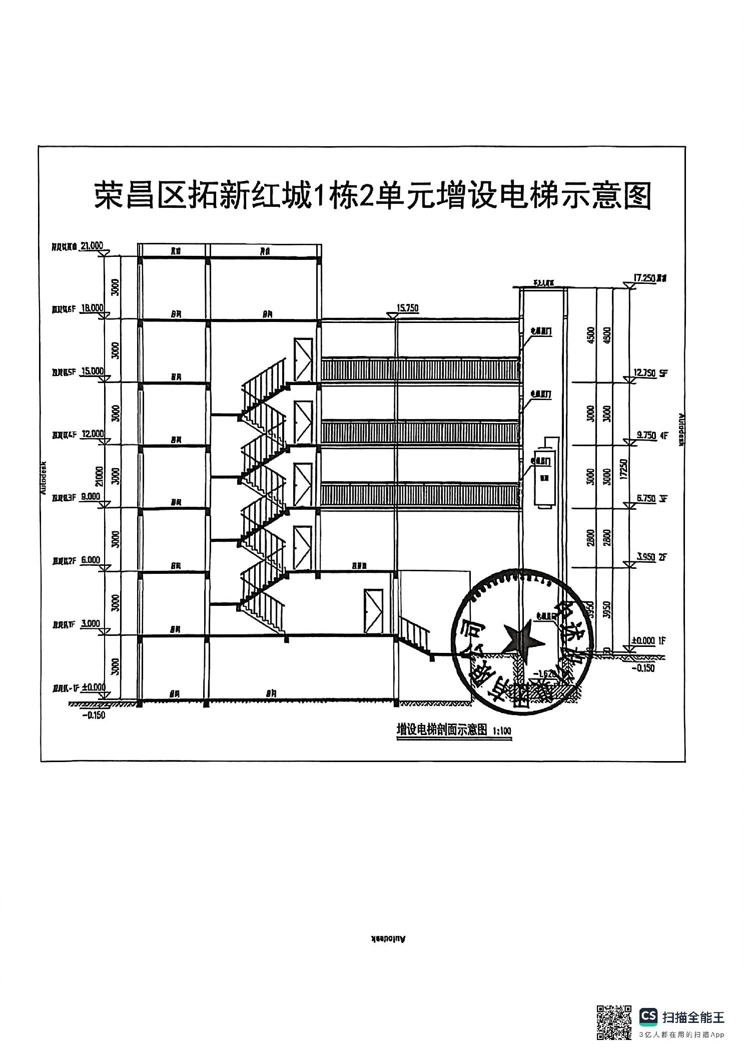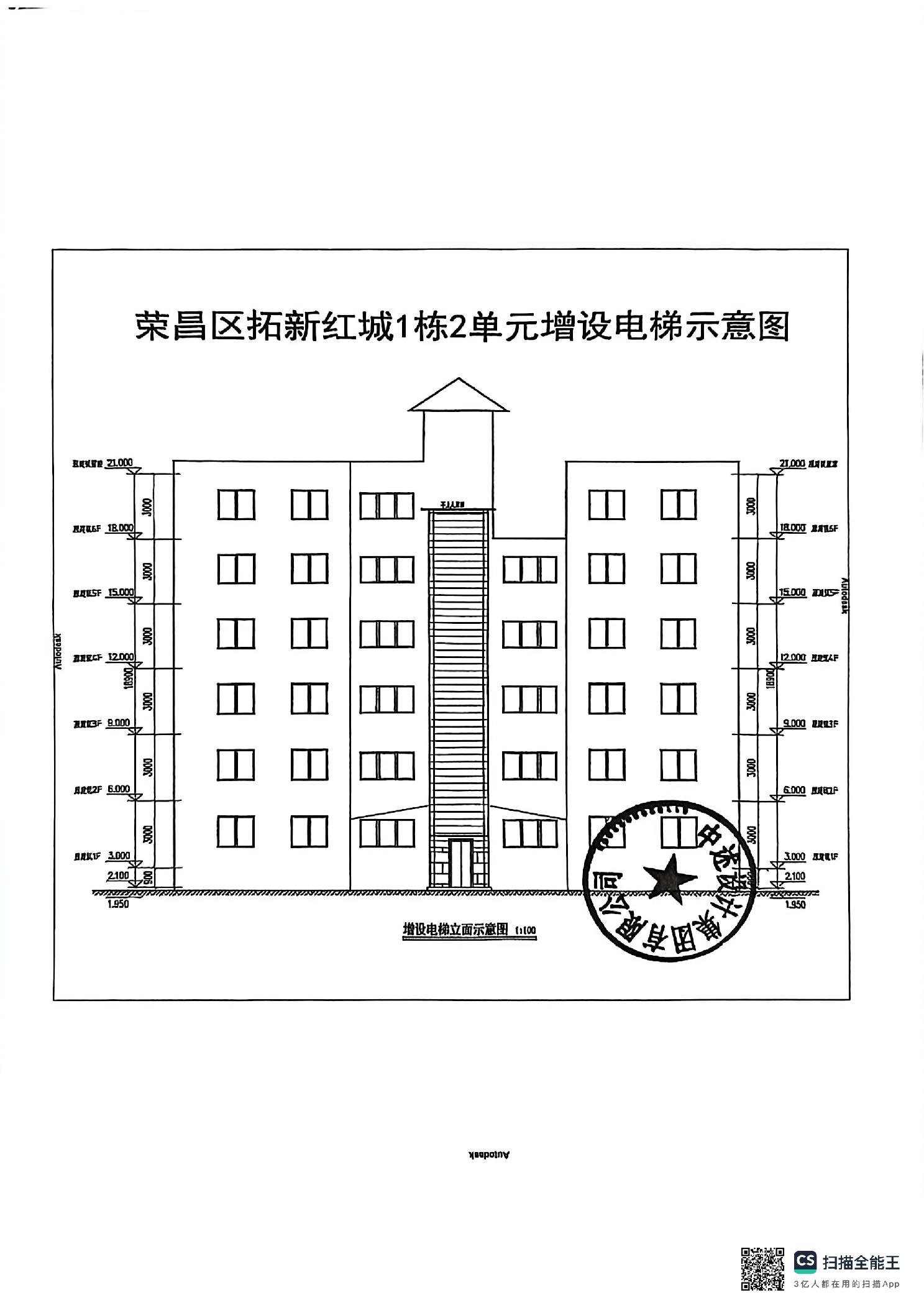 关于荣昌区拓新红城1栋2单元增设电梯的公示