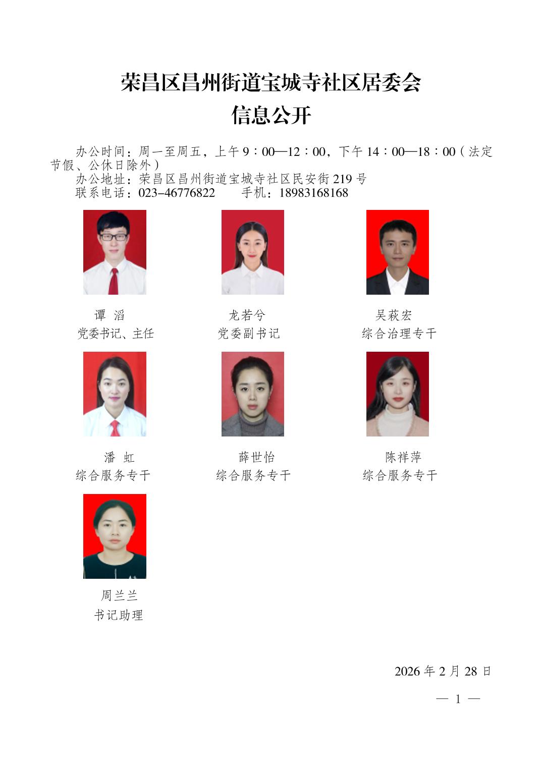 荣昌区昌州街道宝城寺社区居委会 信息公开