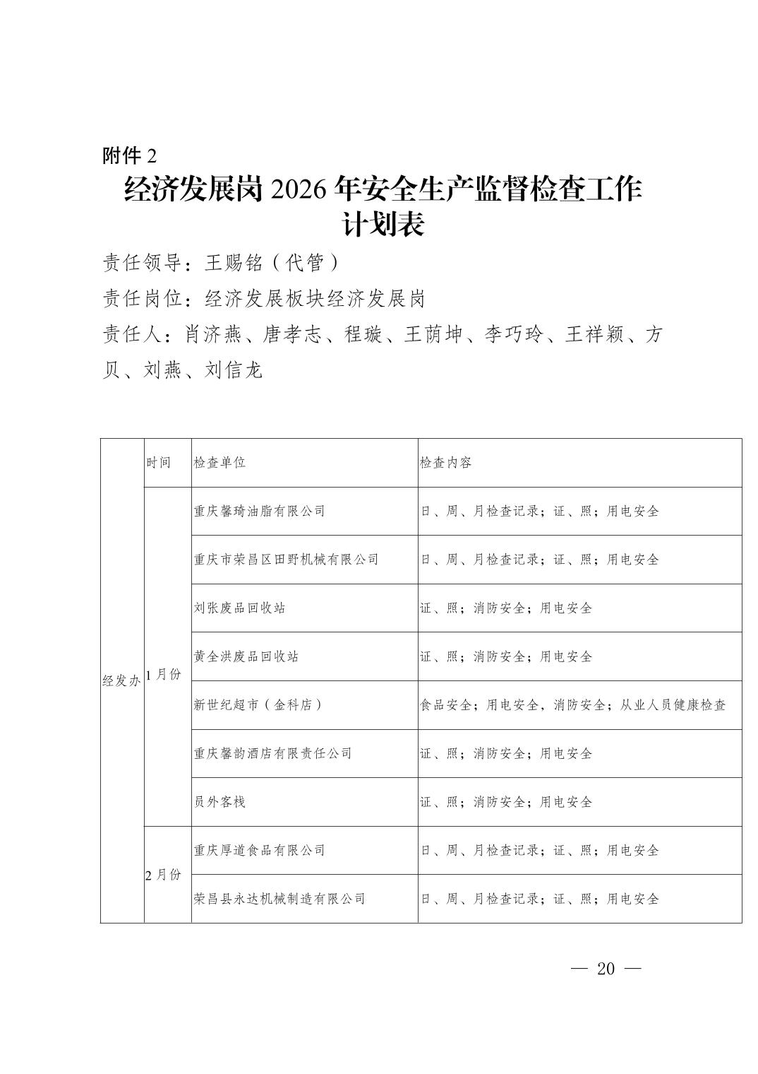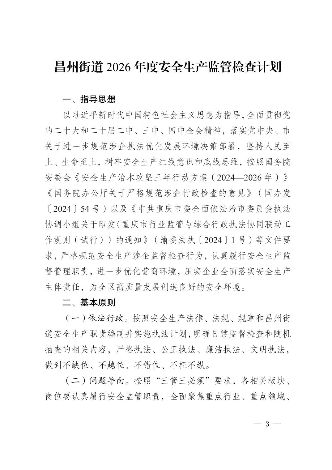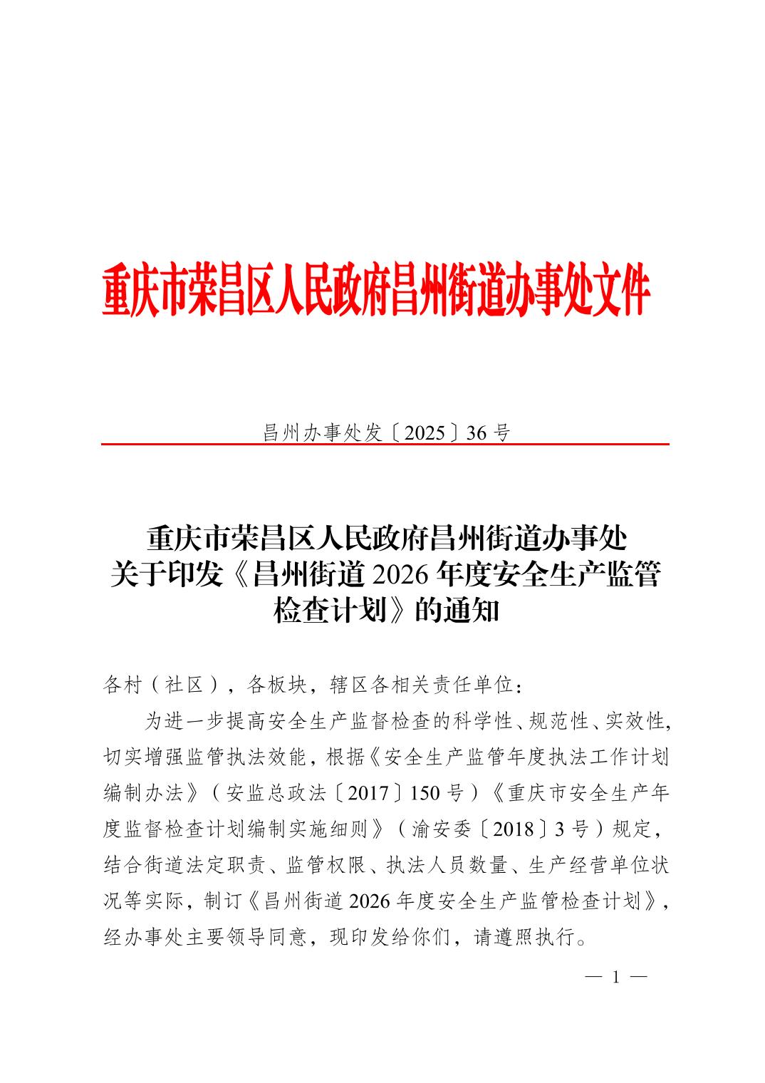 昌州办事处发〔2025〕36号---关于印发《昌州街道2026年度安全生产监管检查计划》的通知