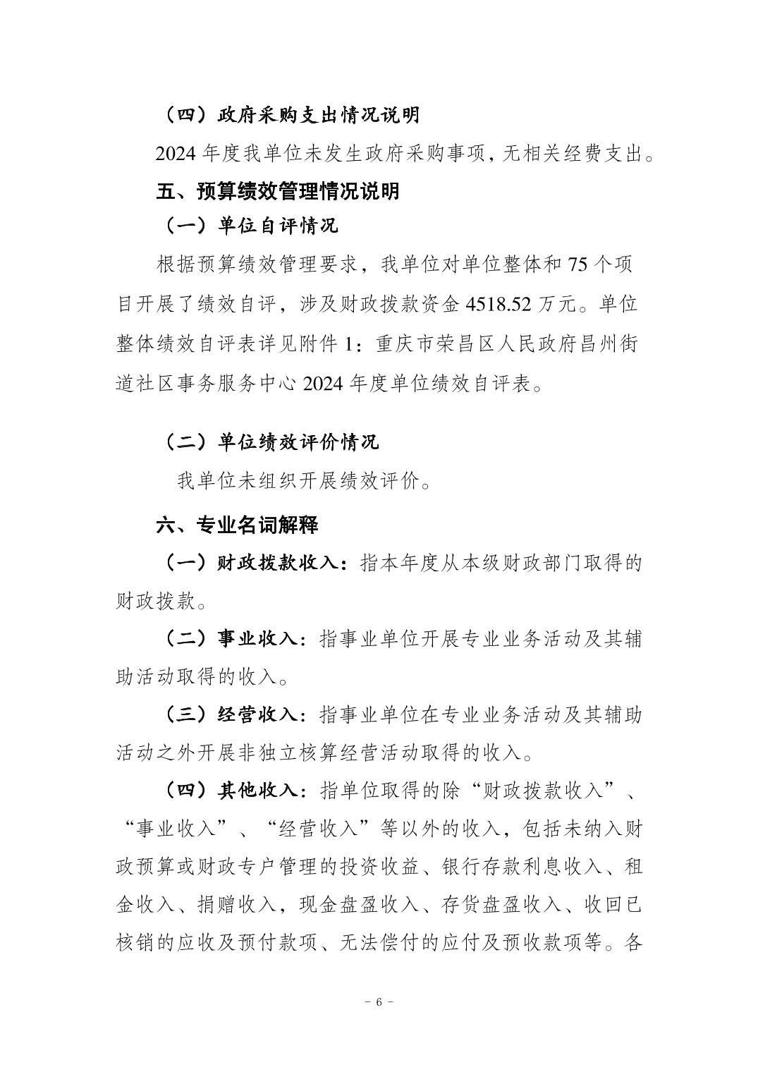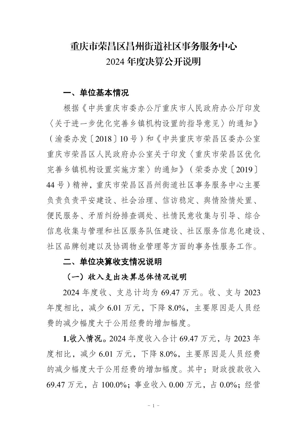 重庆市荣昌区昌州街道社区事务服务中心2024年度决算公开说明