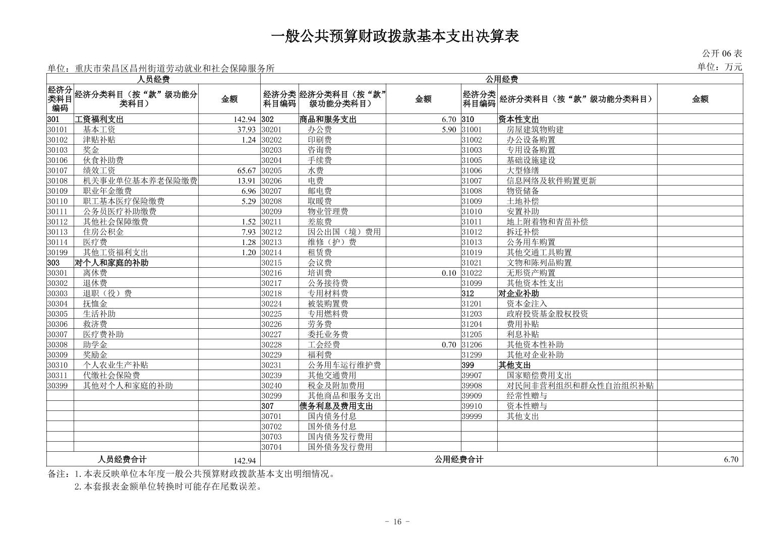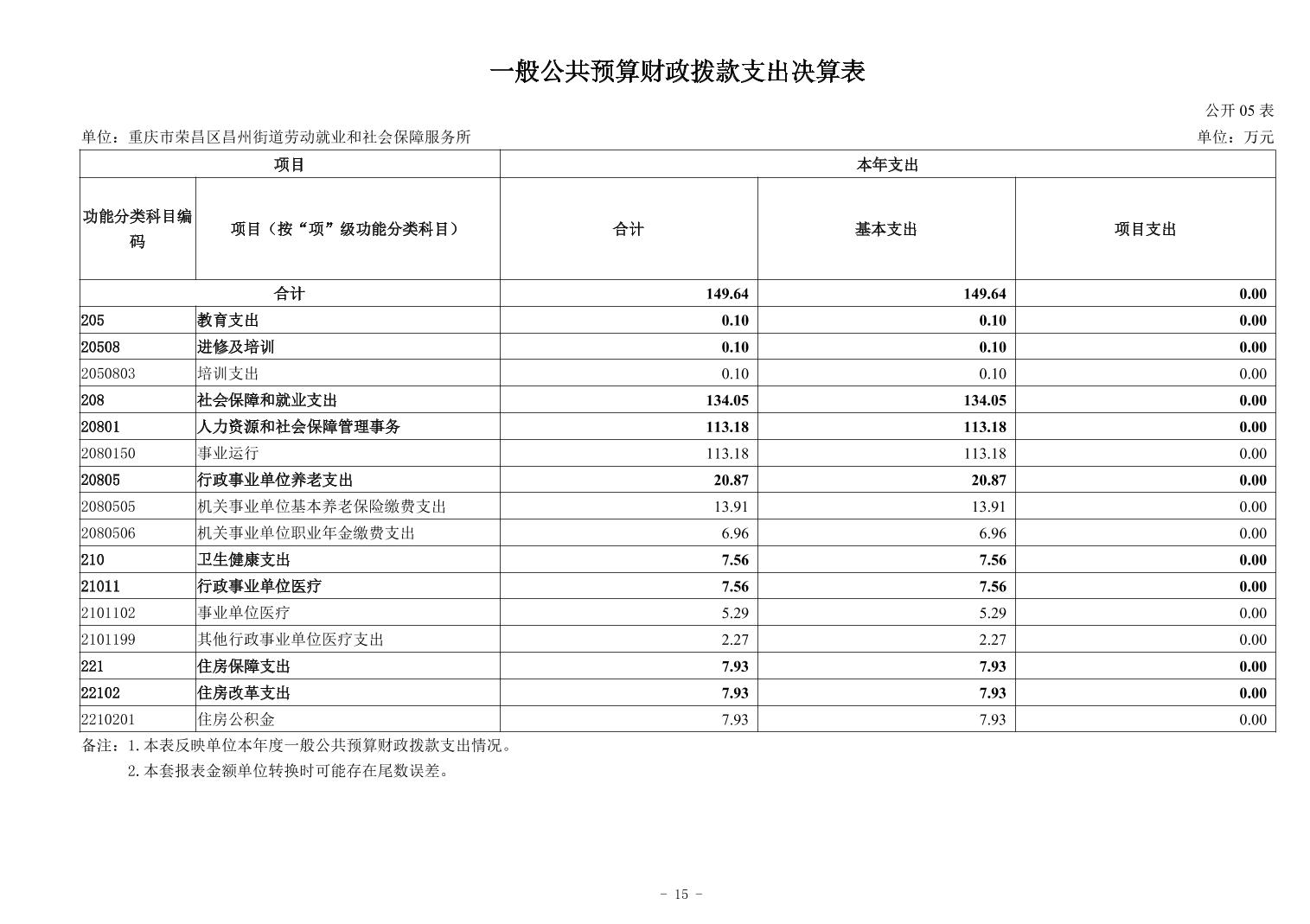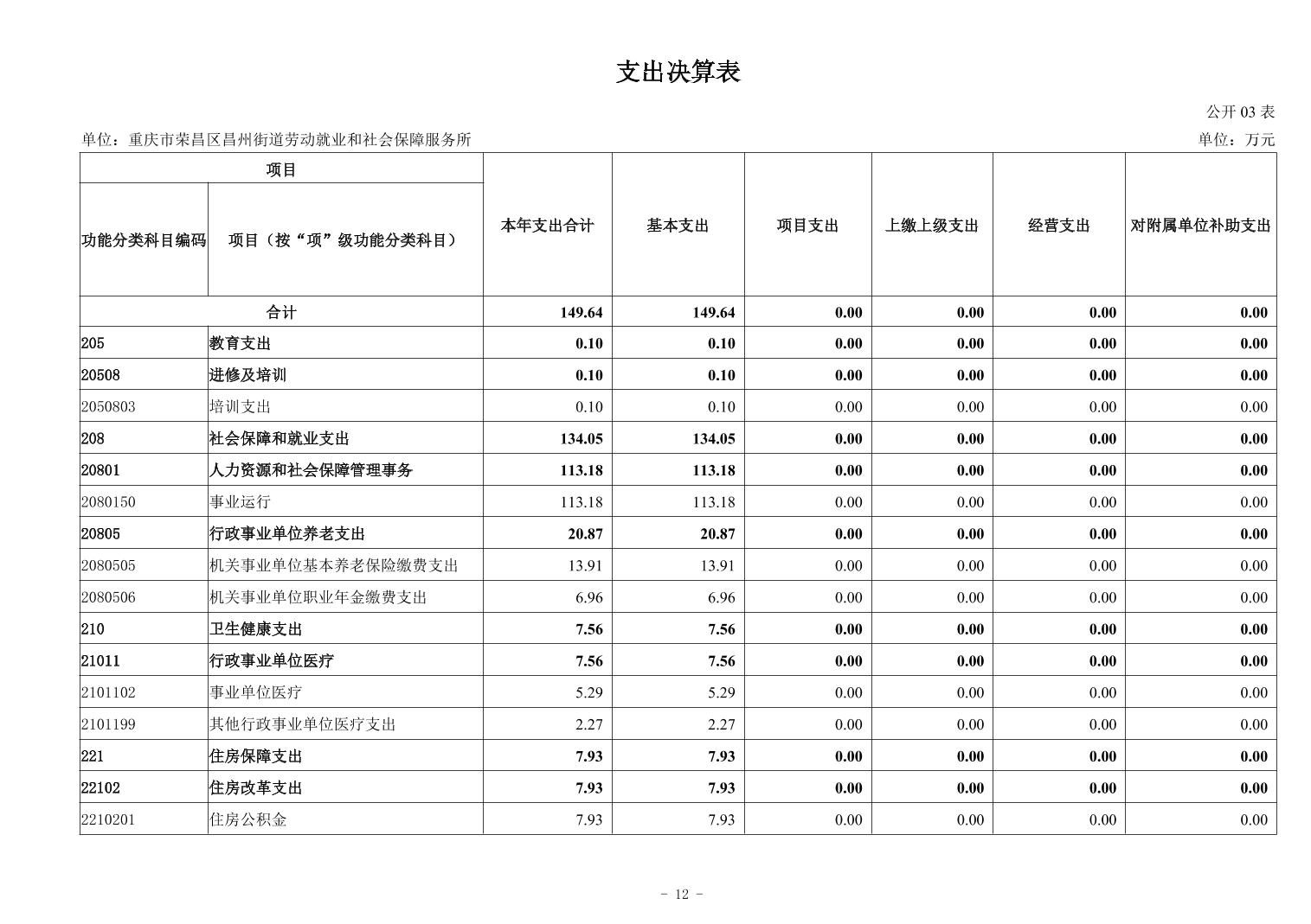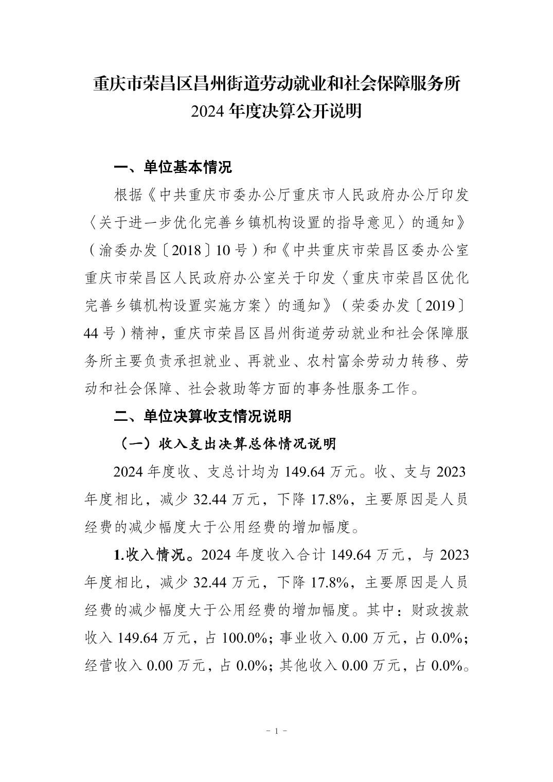 重庆市荣昌区昌州街道劳动就业和社会保障服务所2024年度决算公开说明