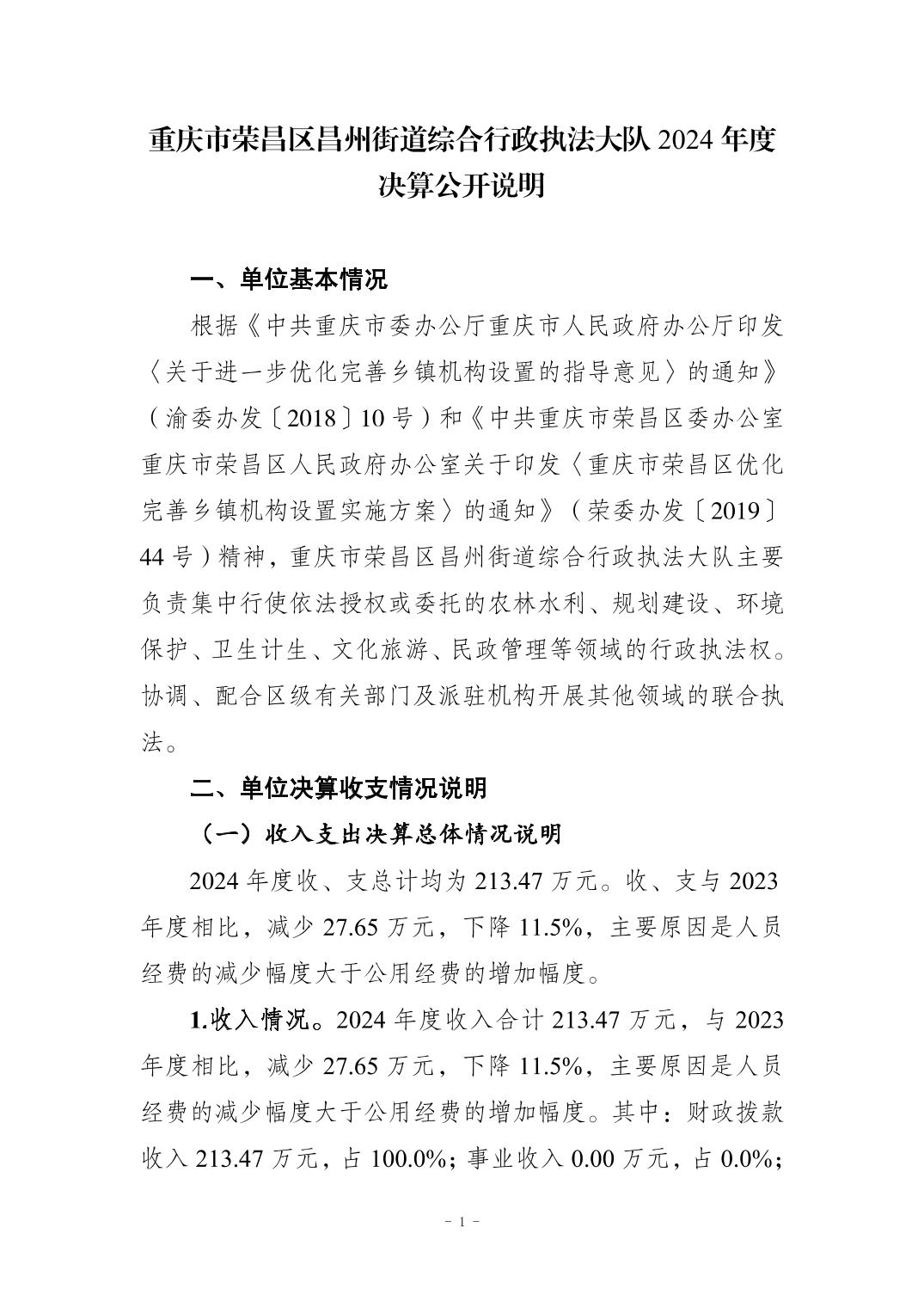 重庆市荣昌区昌州街道综合行政执法大队2024年度决算公开说明