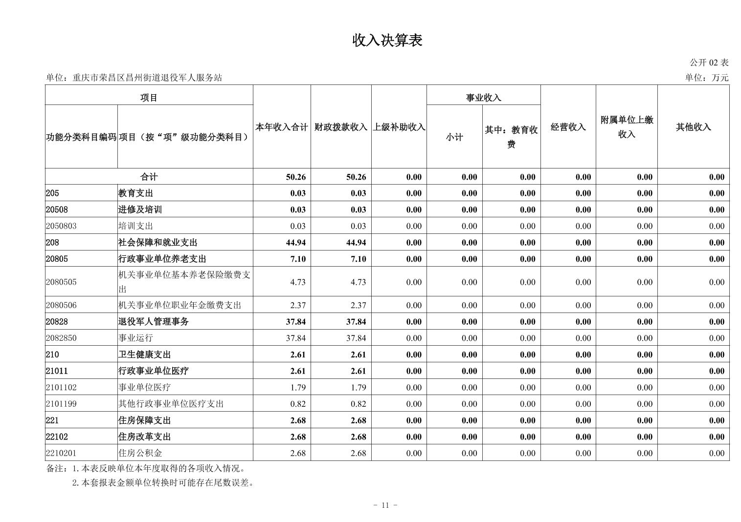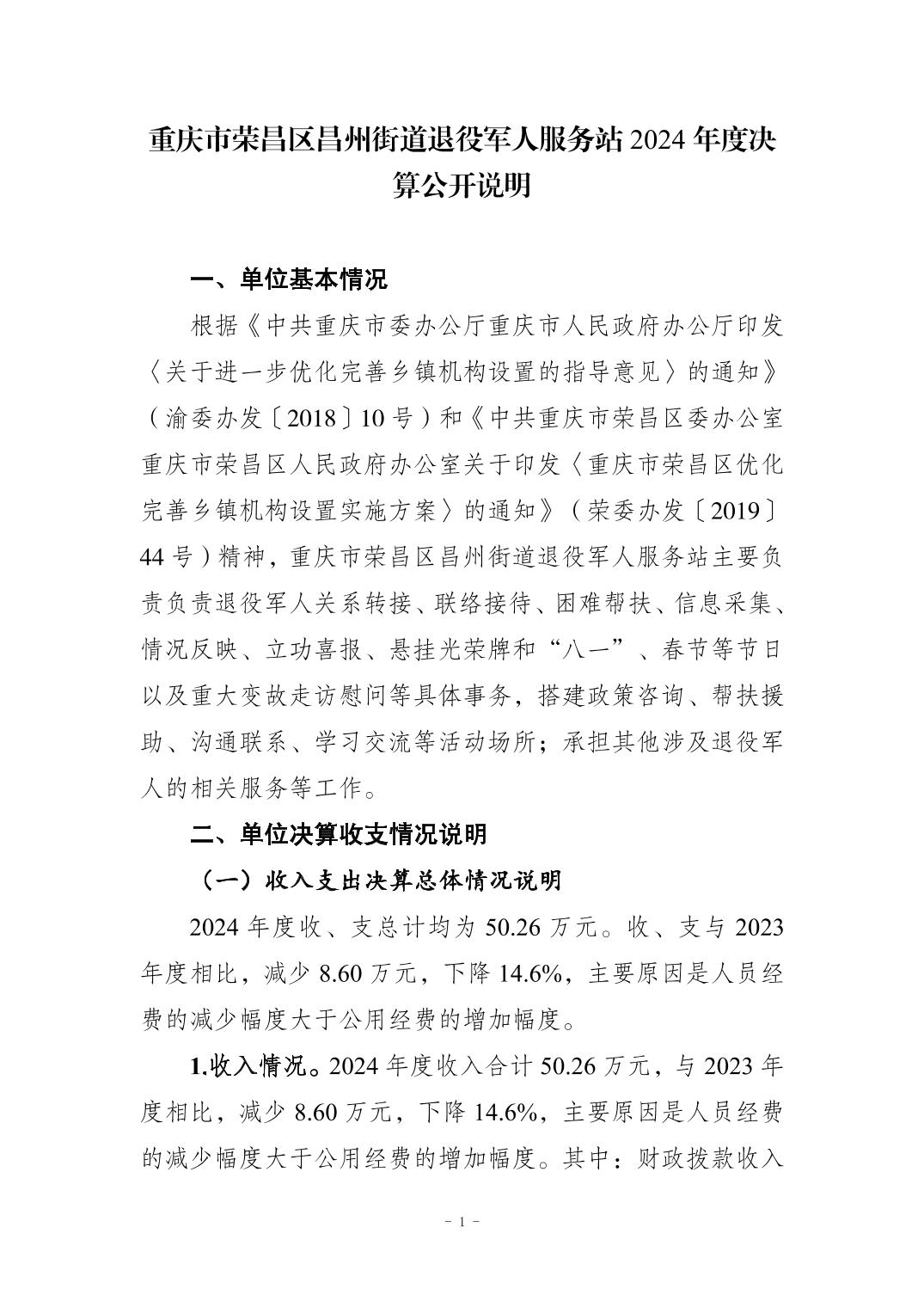 重庆市荣昌区昌州街道退役军人服务站2024年度决算公开说明