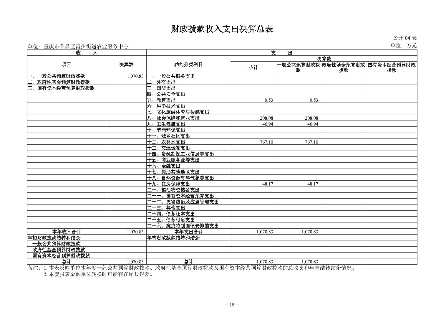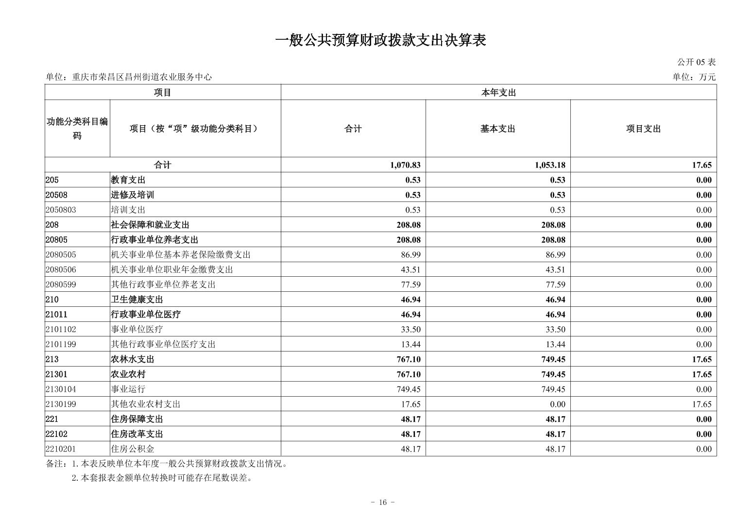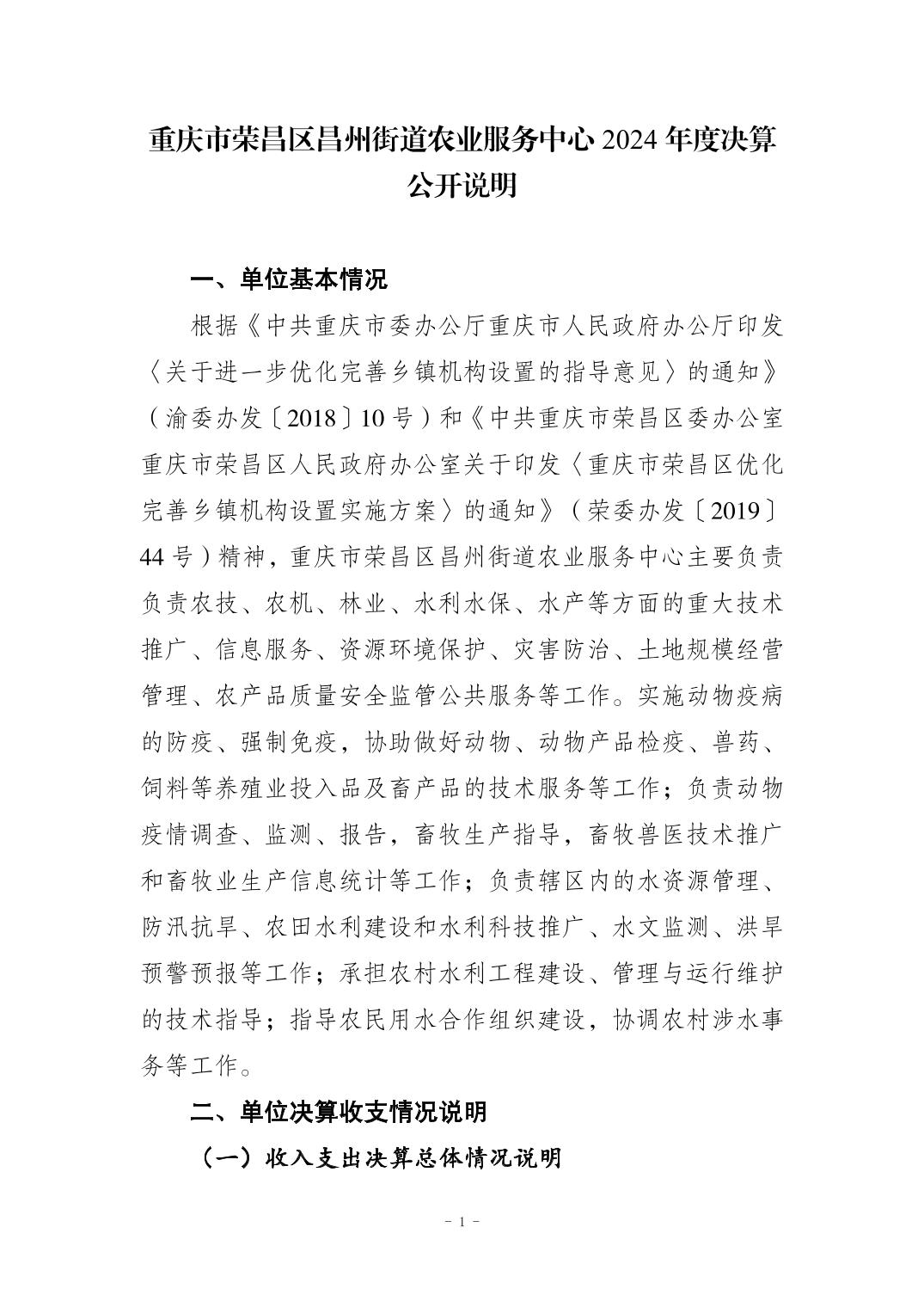 重庆市荣昌区昌州街道农业服务中心2024年度决算公开说明