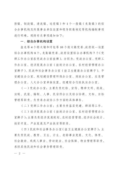 中共重庆市荣昌区机构编制委员会关于明确盘龙等15个镇机构编制事项的通知