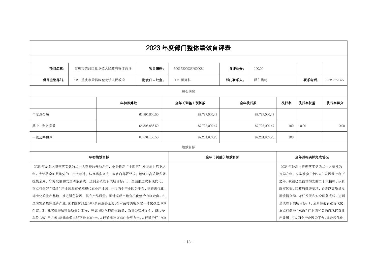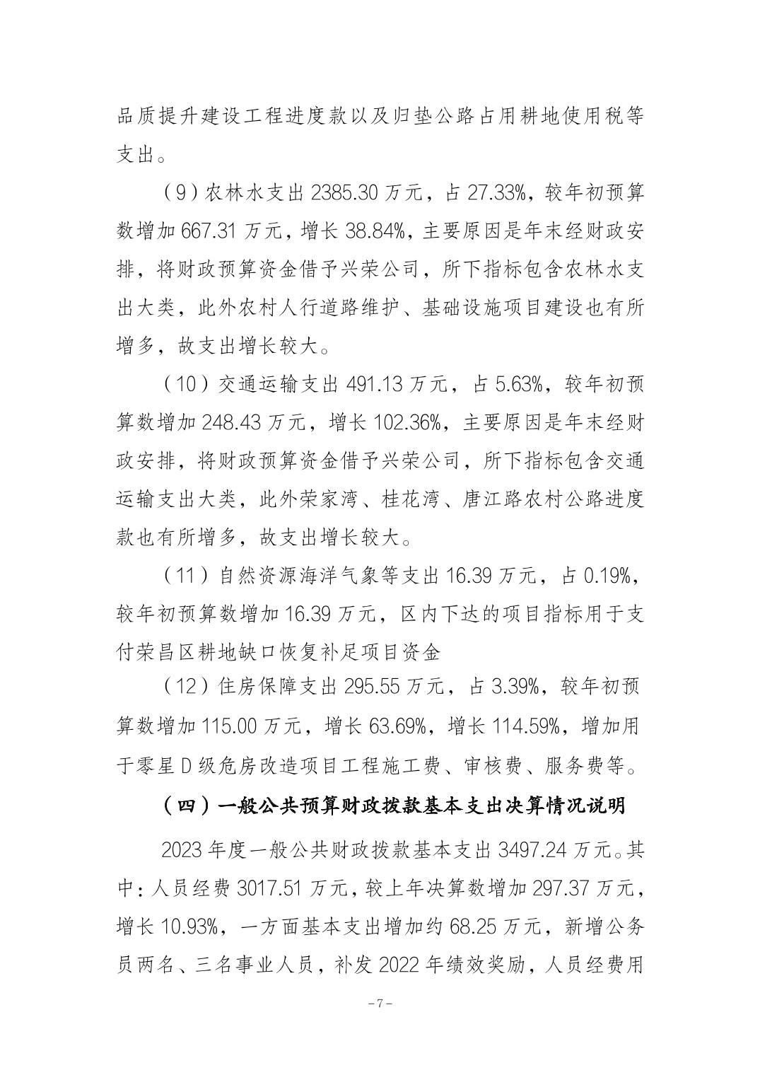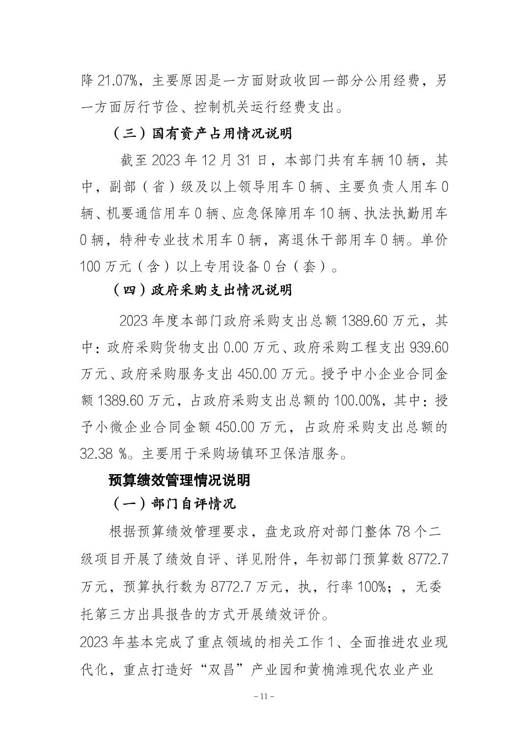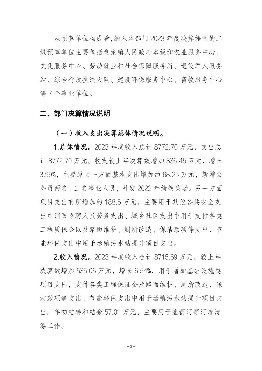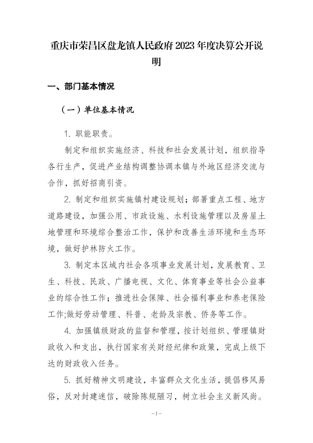 重庆市荣昌区盘龙镇人民政府2023年决算公开说明及公开报表(部门)
