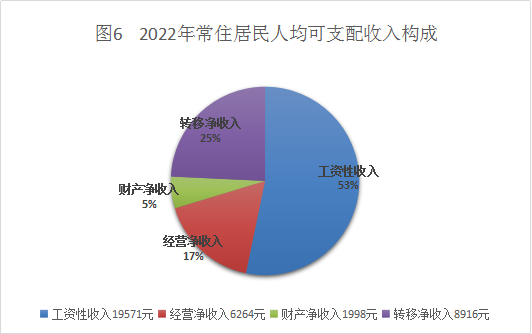 农村常住居民人均可支配收入23267元,增长5.1%。其中,人均工资性收入8023元,增长5.1%;人均经营净收入8175元,增长6.1%;人均财产净收入316元,增长4.7%;人均转移净收入6753元,增长3.9%。农村常住居民人均生活消费支出16153元,增长3.2%;其中,衣着1015元,增长0.8%;居住2690元,增长1.5%;生活用品及服务1408元,增长2.8%;交通通信1809元,增长1.4%;教育文化娱乐1620元,增长6.8%;医疗保健1286元,增长9.0%。农村居民恩格尔系数38.01%,比上年下降0.12个百分点。农村居民人均住房面积45.85平方米,比上年增加1.3%。