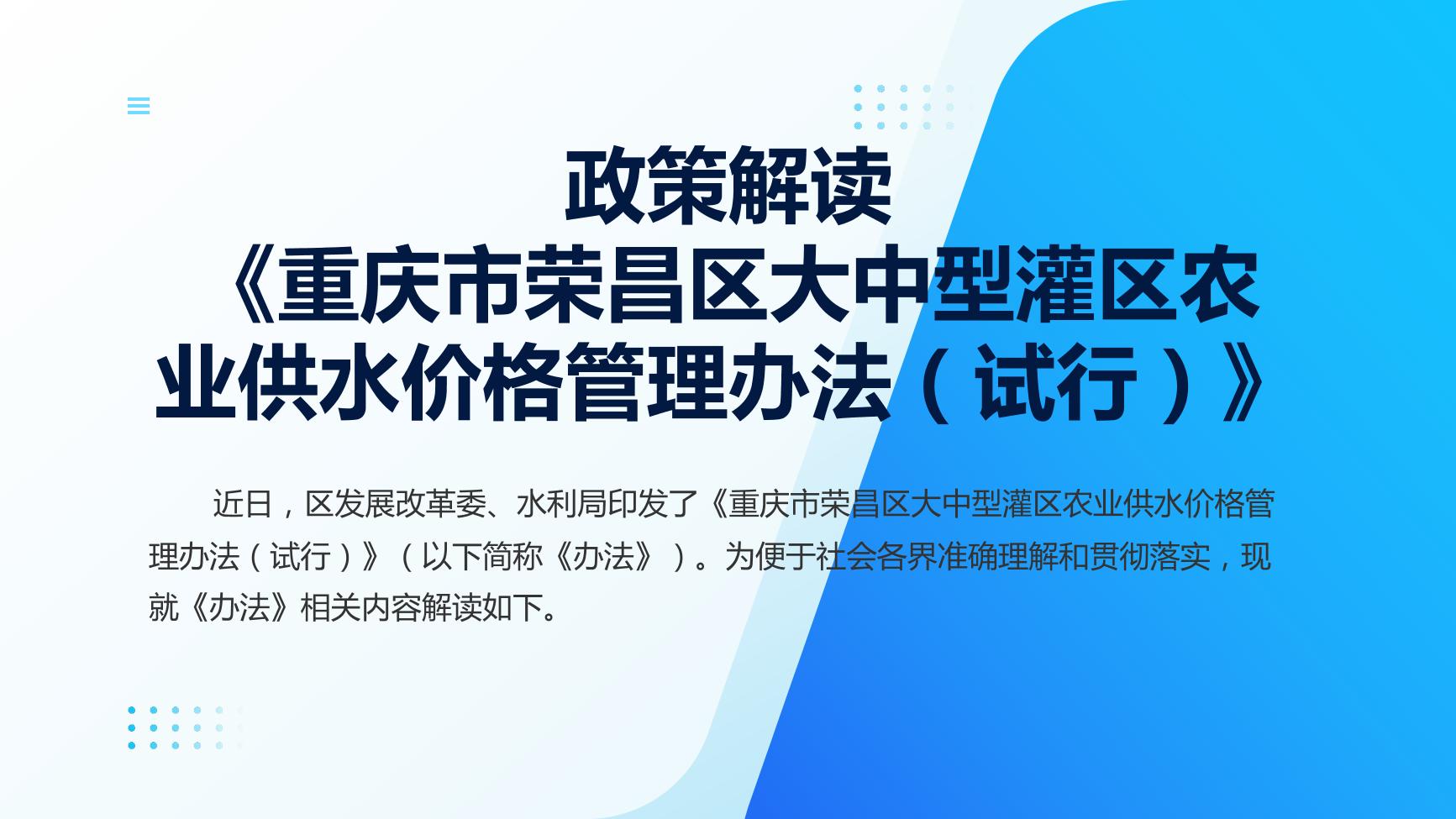 重庆市荣昌区大中型灌区农业供水价格管理办法(试行)图文解读
