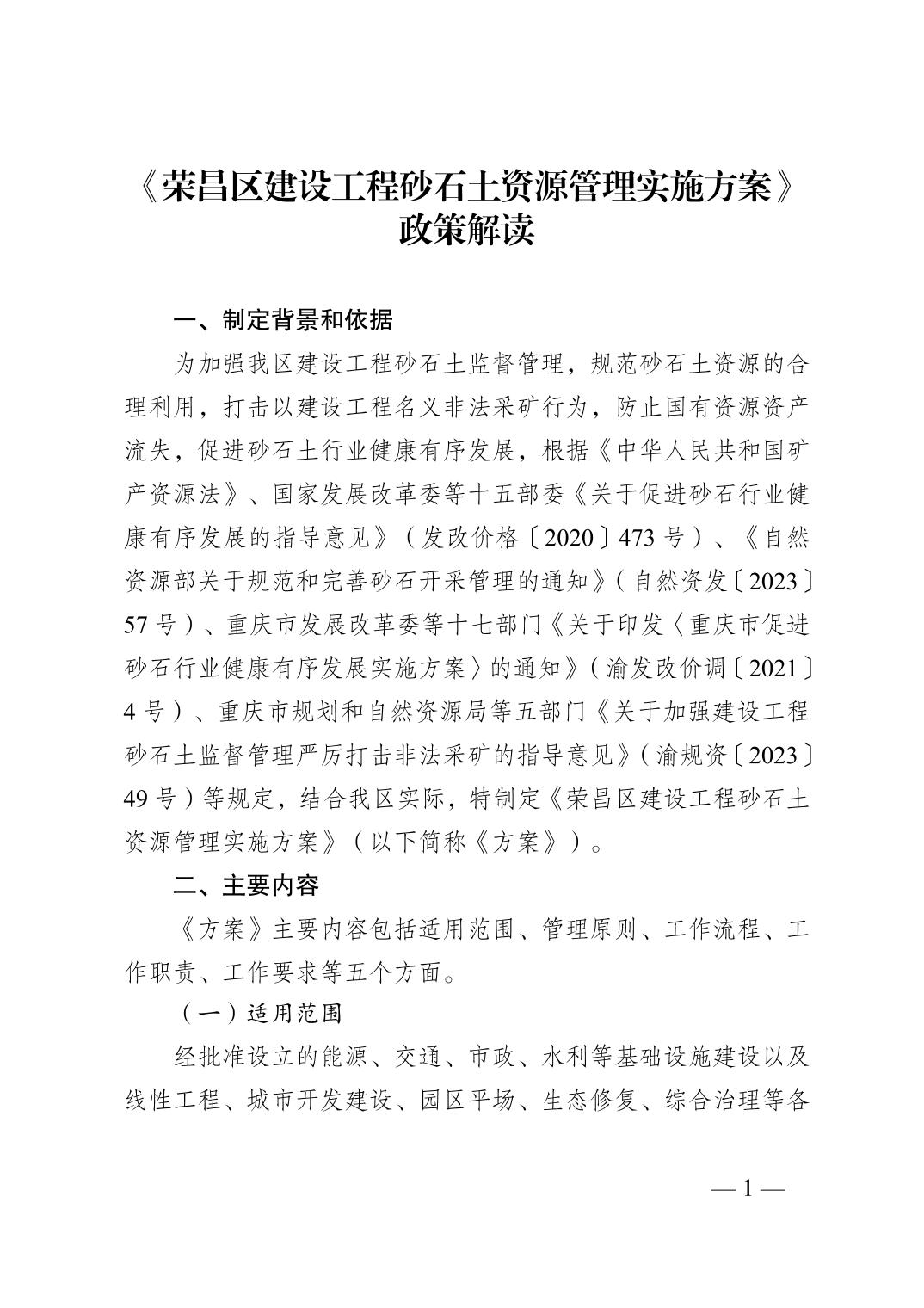 《荣昌区建设工程砂石土资源管理实施方案》政策解读