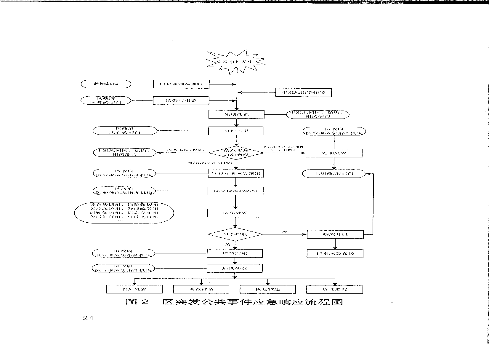 (2)统一领导,综合协同。构建统一指挥、反应灵敏、上下联动的应急管理体制,引导社会和公众有序参与,充分发挥基层一线的作用。加强应急救援队伍建设,建立联动协调制度,充分动员和发挥街道、镇、村(社区)、企事业单位、社会团体和志愿者队伍的作用,依靠公众力量,形成统一指挥、反应灵敏、功能齐全、协调有序、运转高效的应急管理机制。