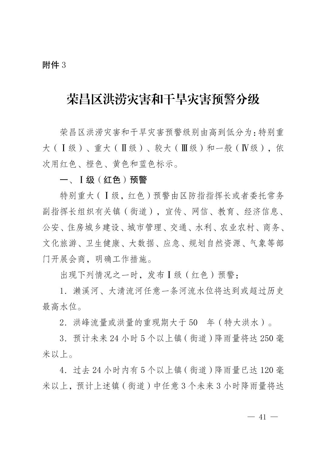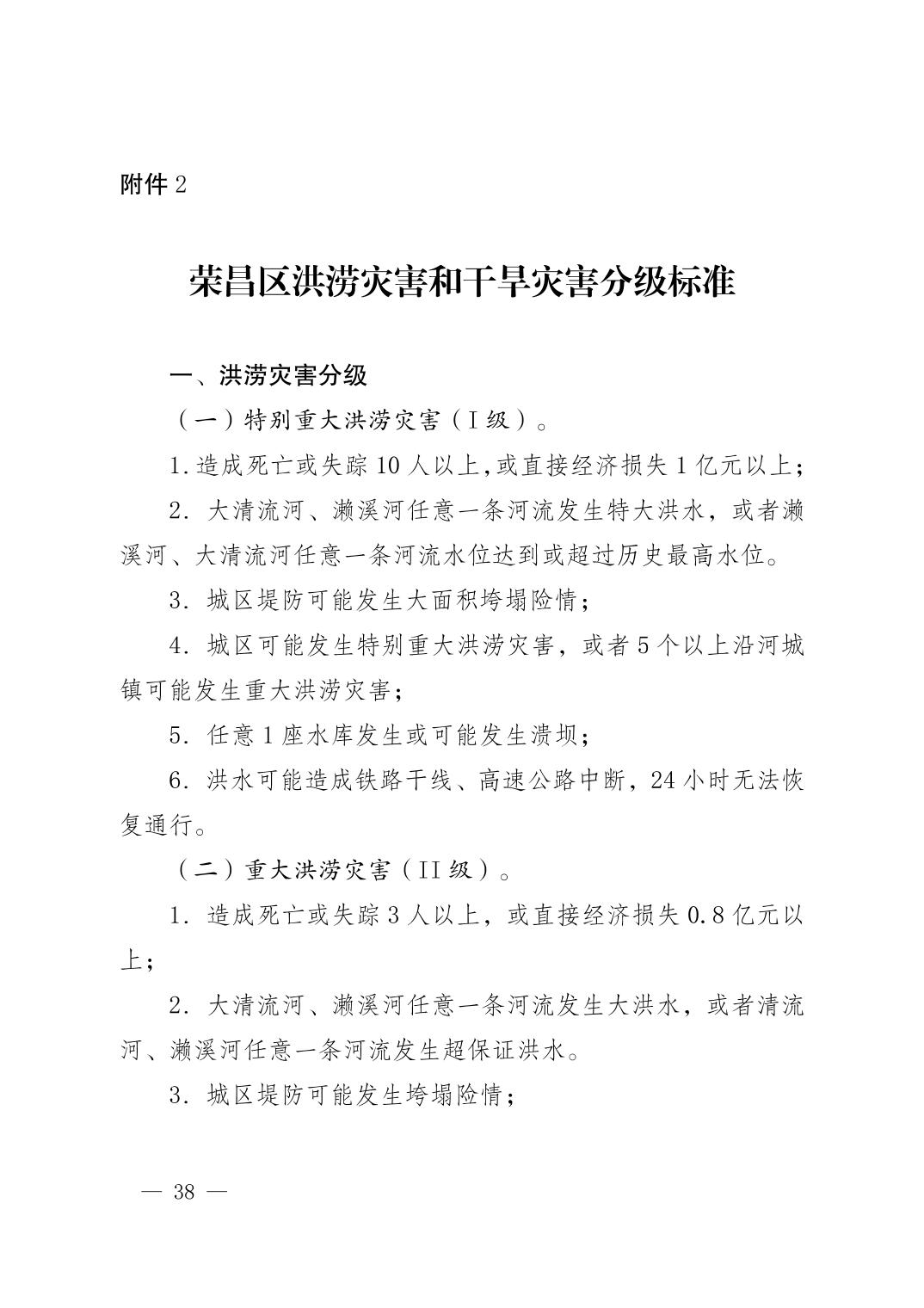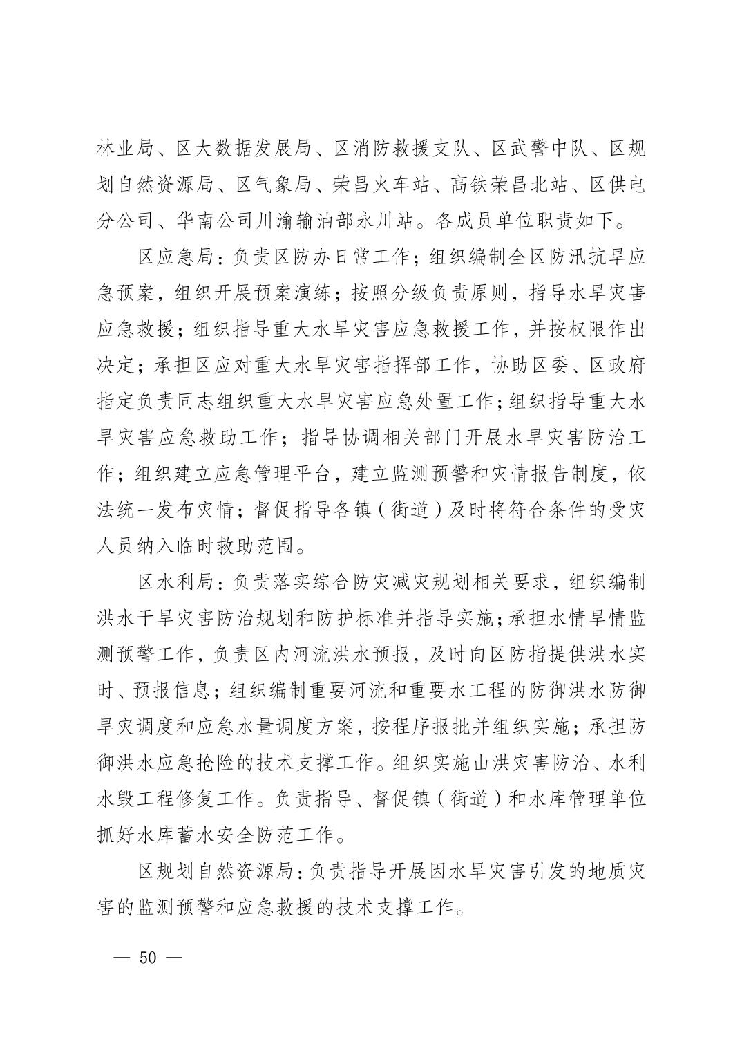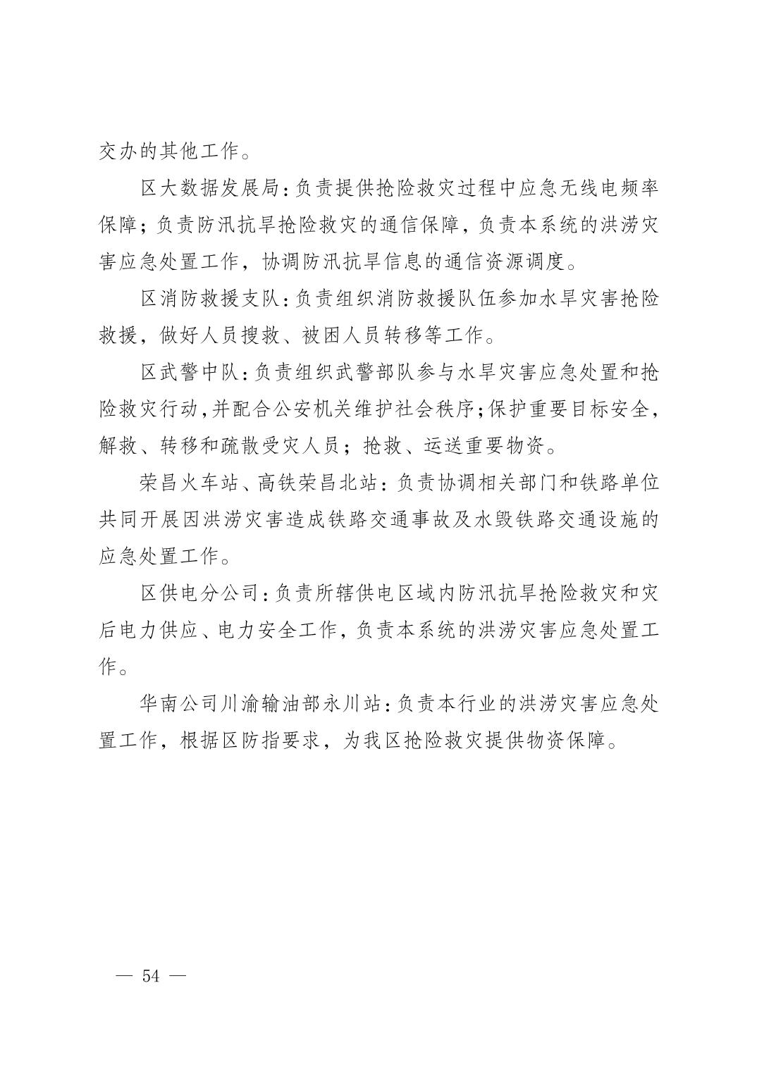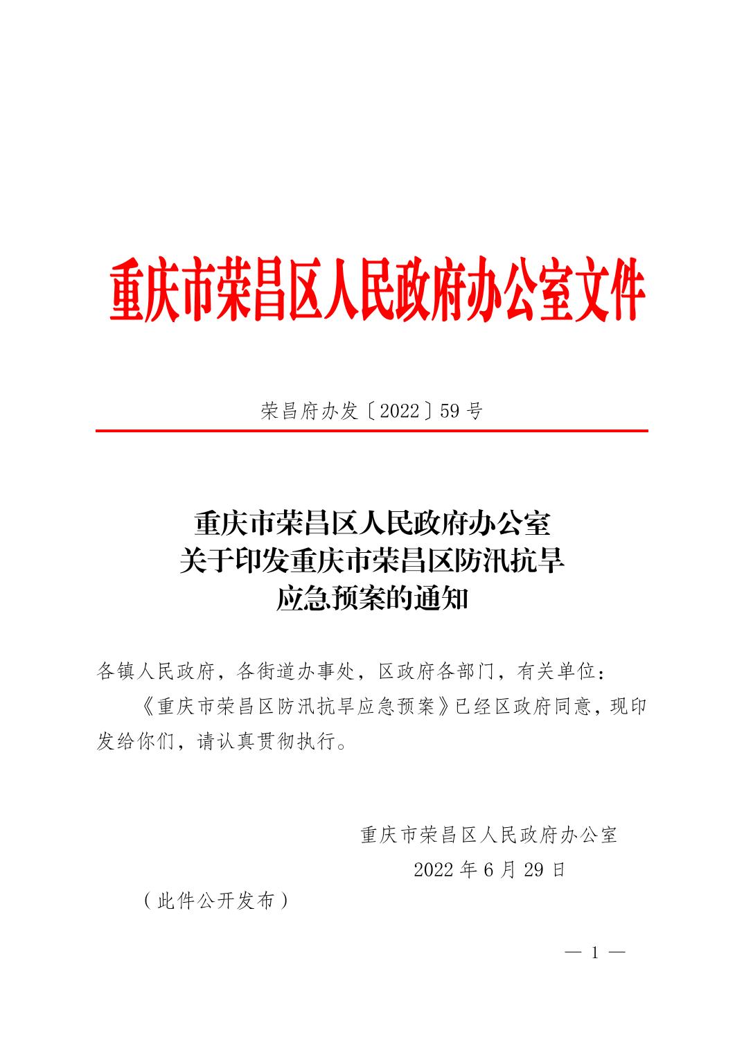 重庆市荣昌区人民政府办公室关于印发重庆市荣昌区防汛抗旱应急预案的通知