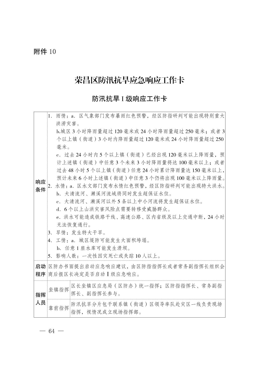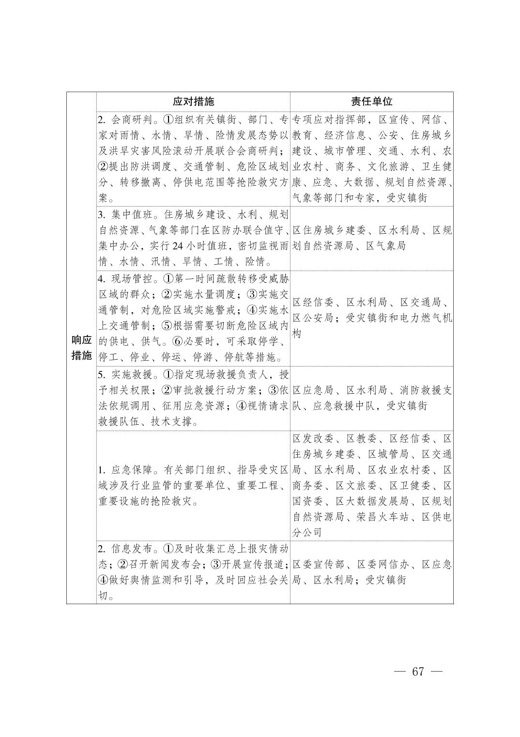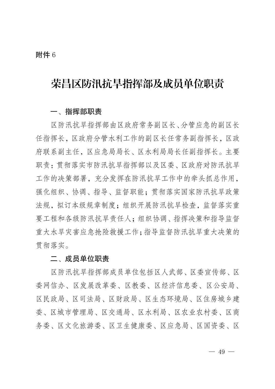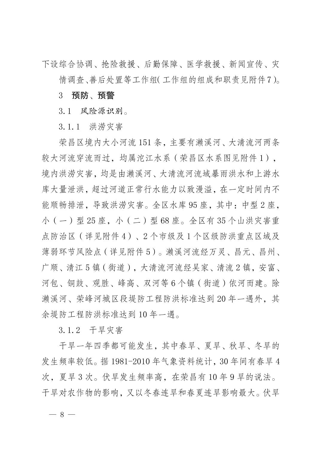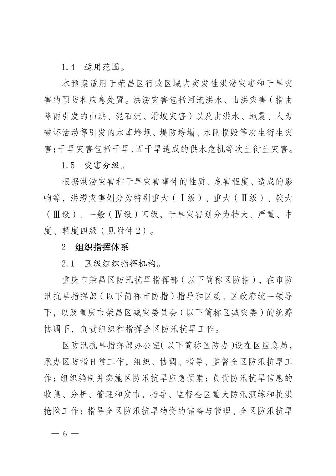 重庆市荣昌区人民政府办公室关于印发重庆市荣昌区防汛抗旱应急预案的通知