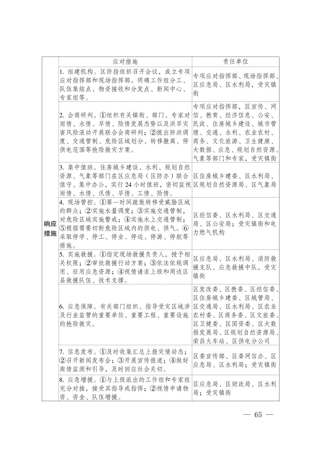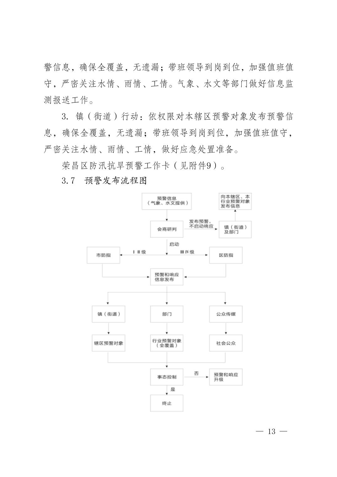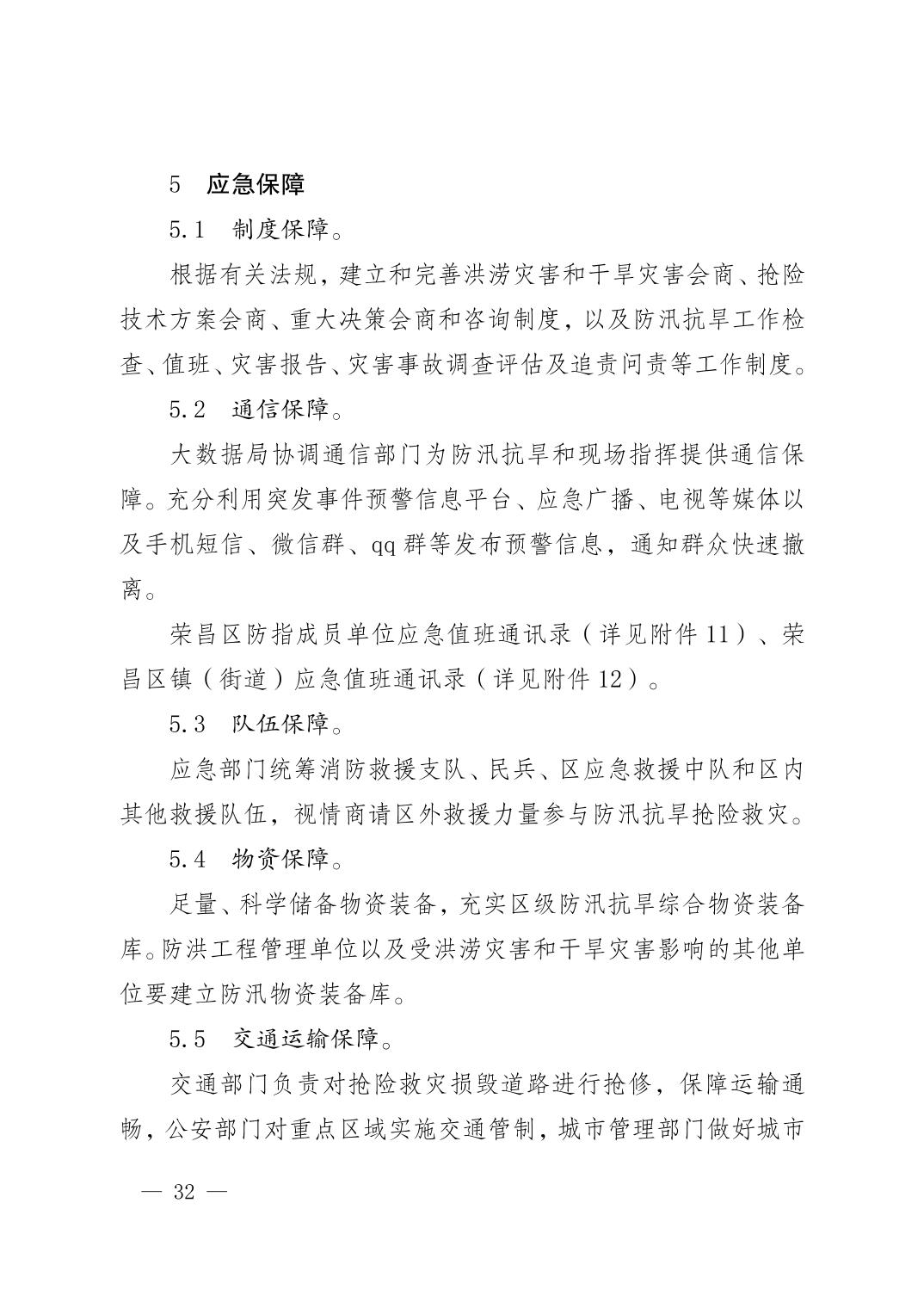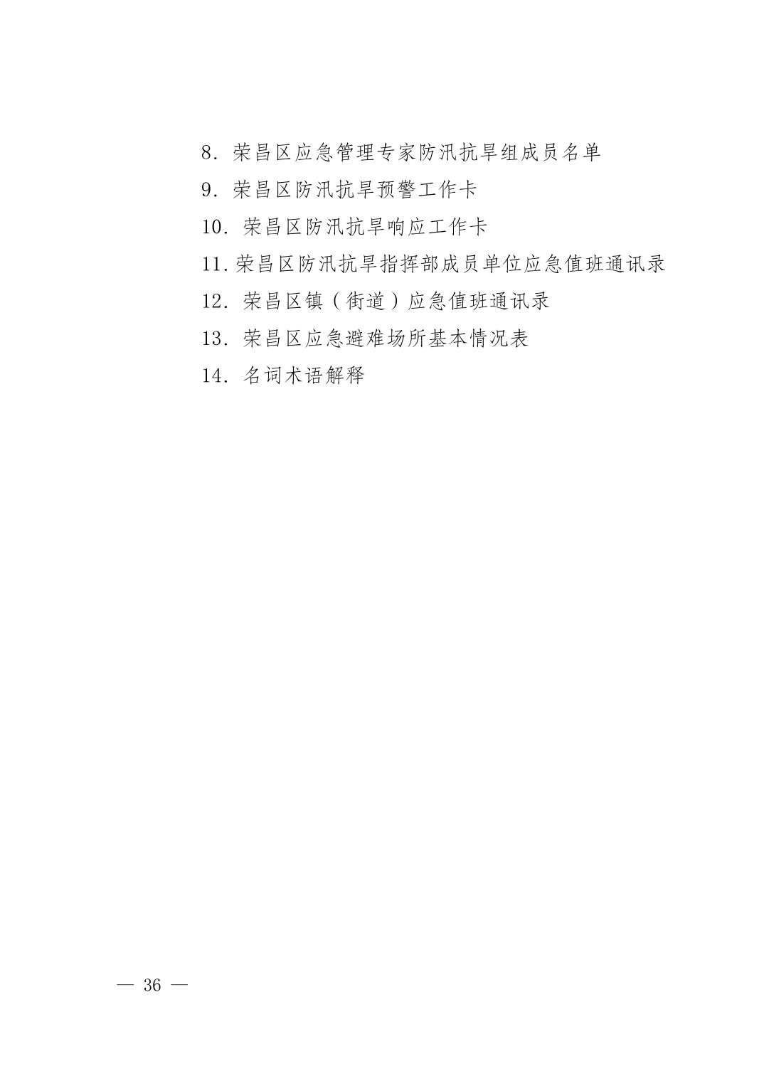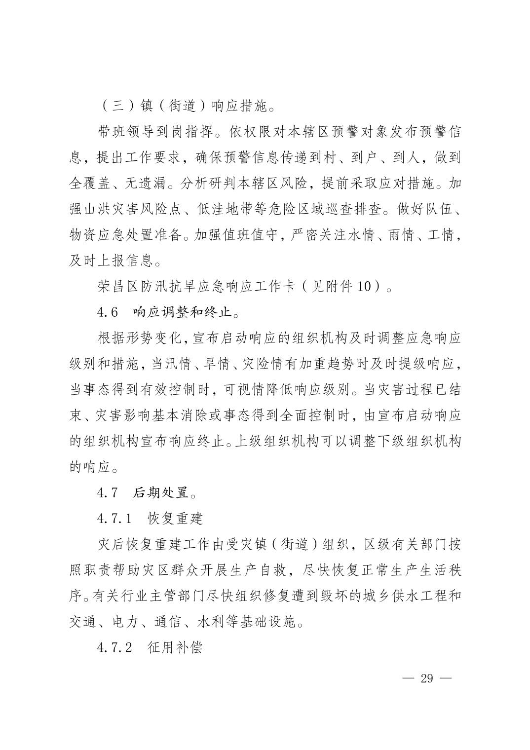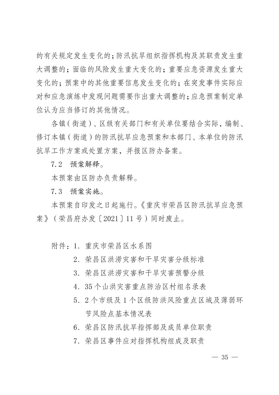 重庆市荣昌区人民政府办公室关于印发重庆市荣昌区防汛抗旱应急预案的通知