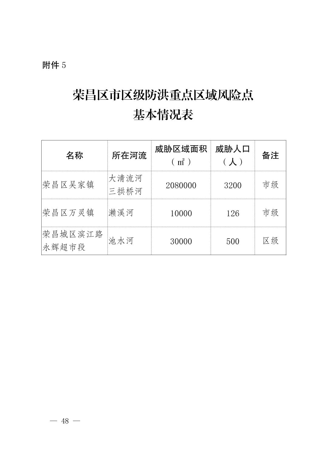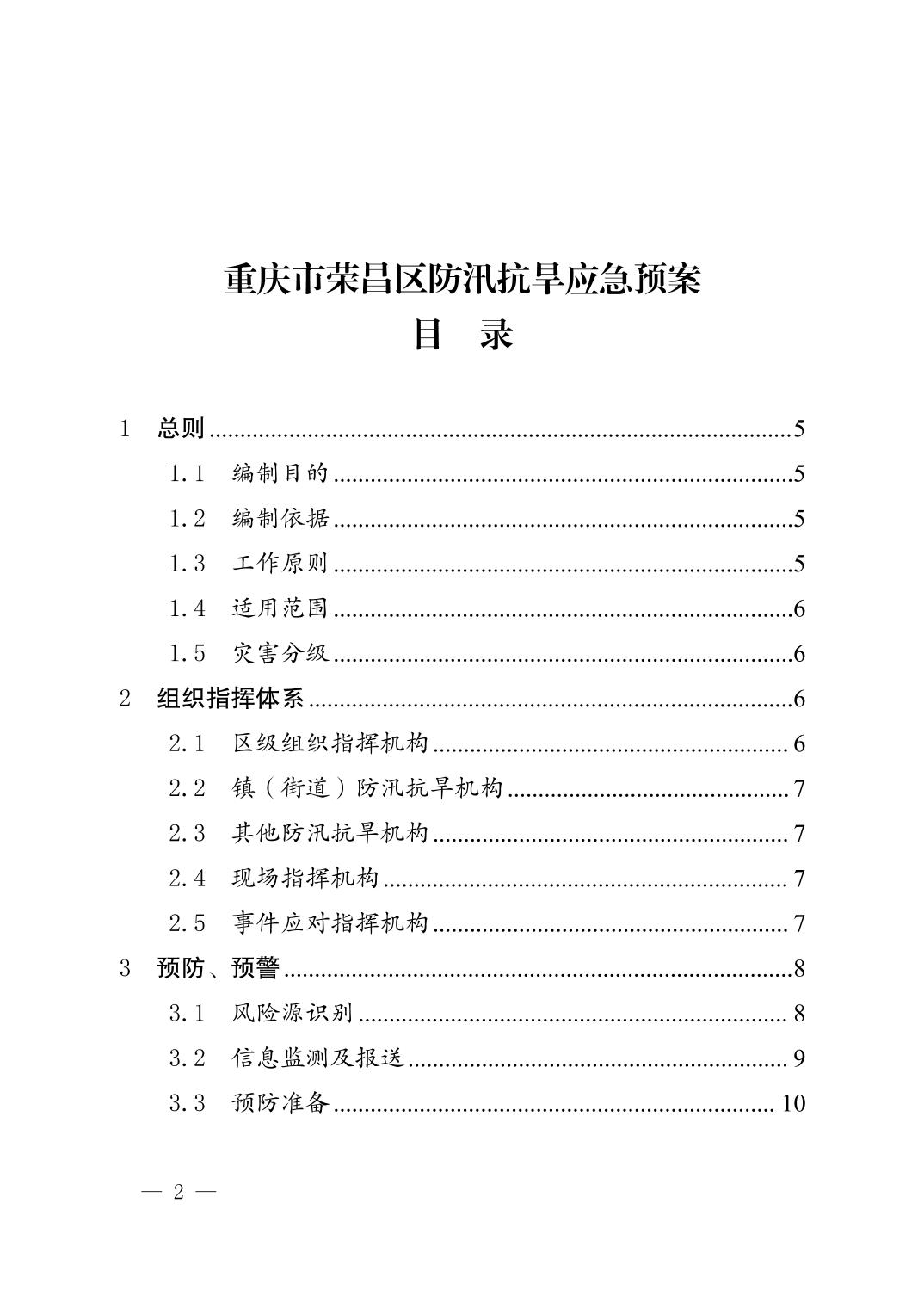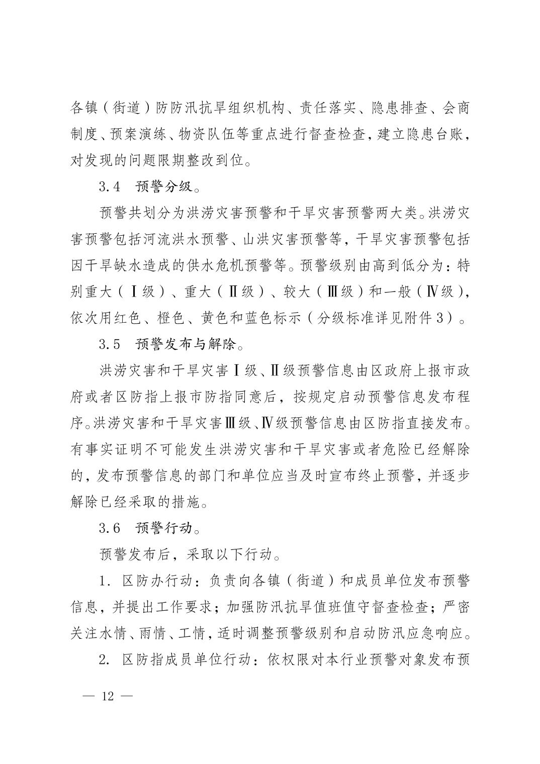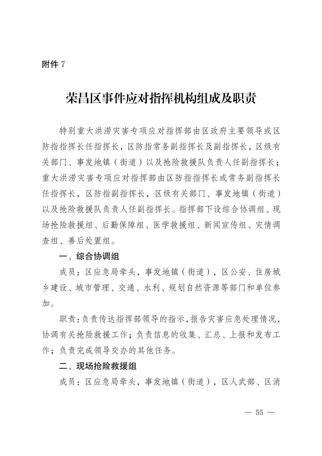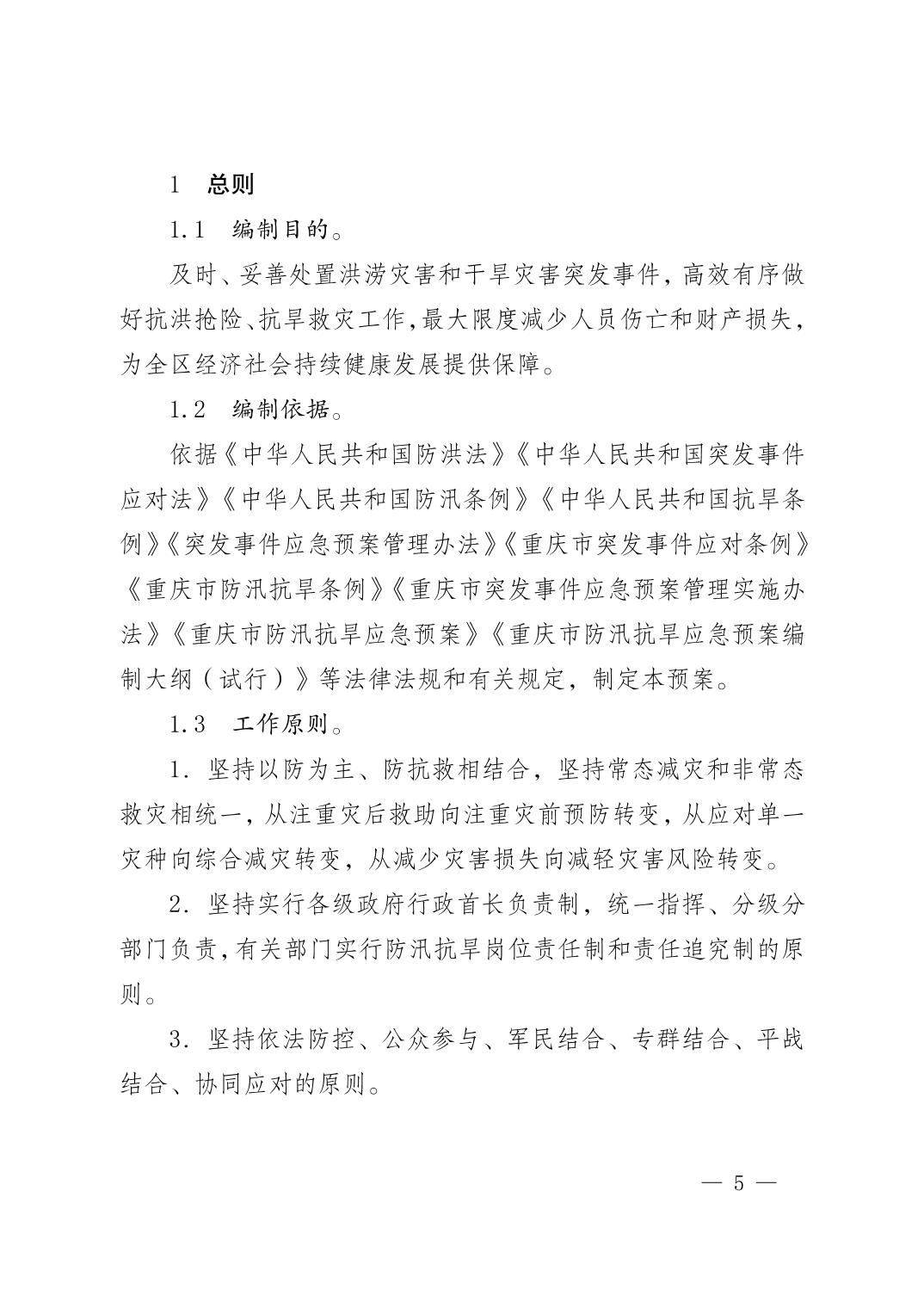 重庆市荣昌区人民政府办公室关于印发重庆市荣昌区防汛抗旱应急预案的通知